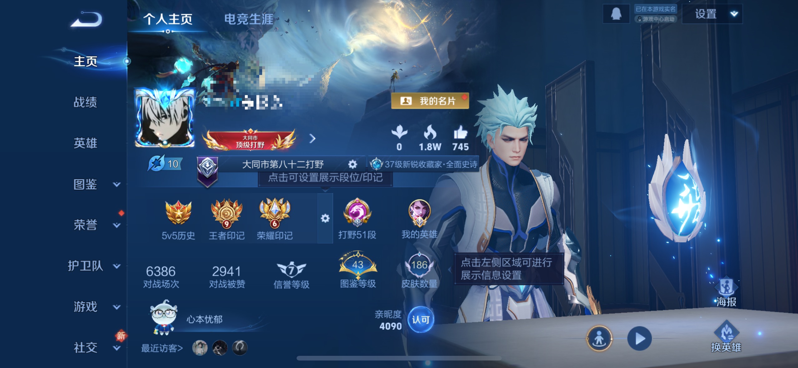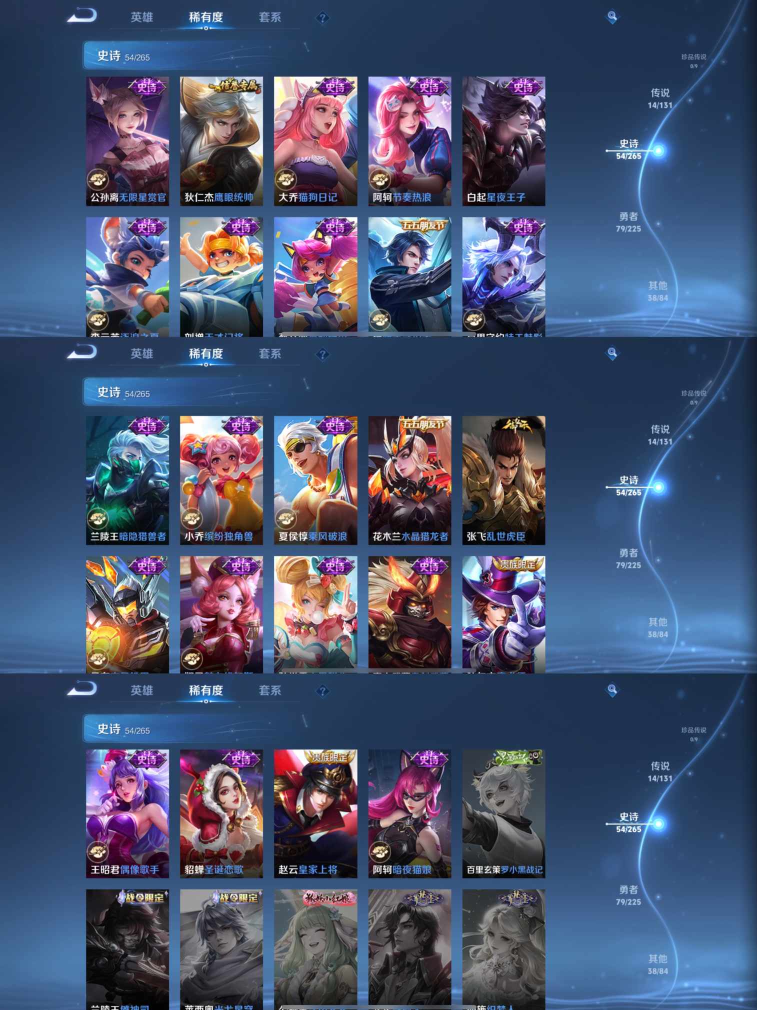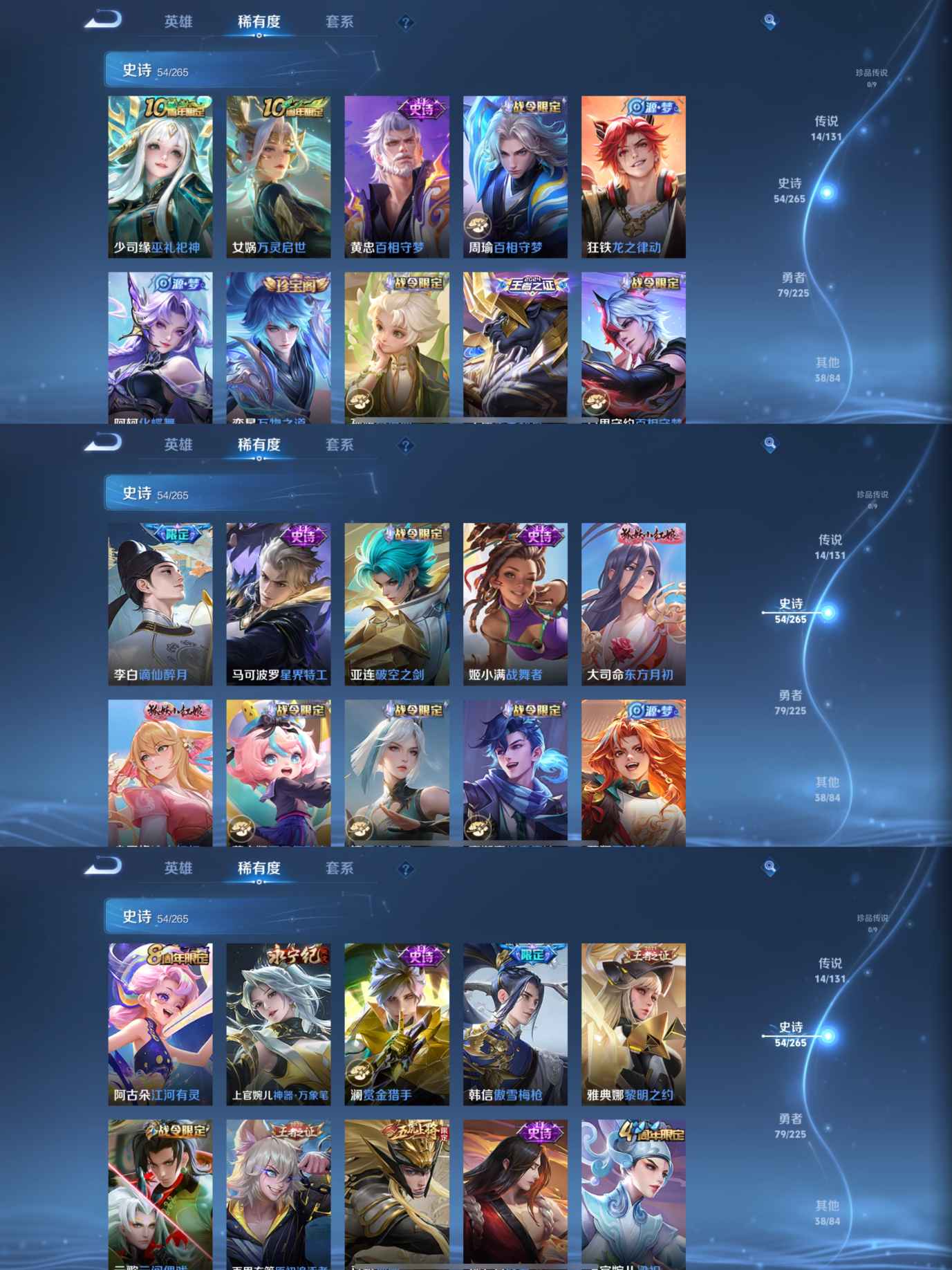贵族等级:v7皮肤数:186传说品质14 生肖限定1 荣耀典藏1 英雄数:126