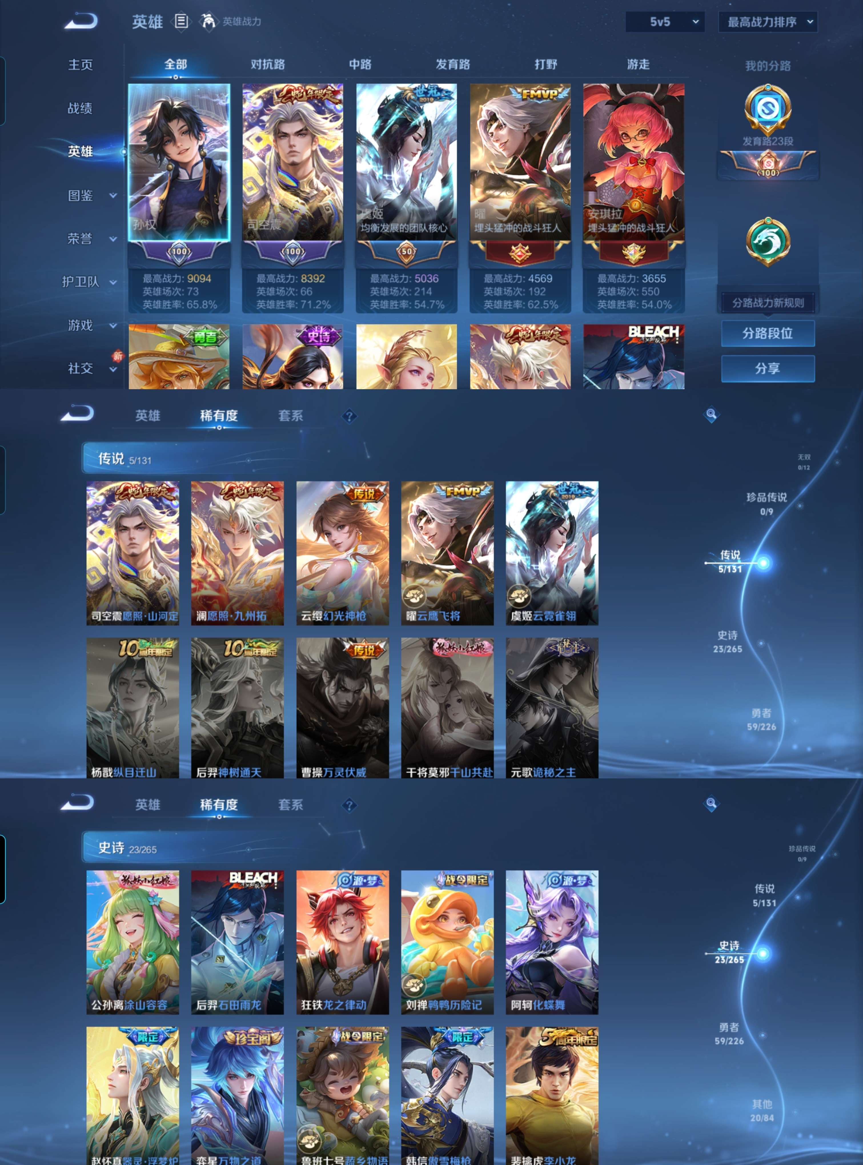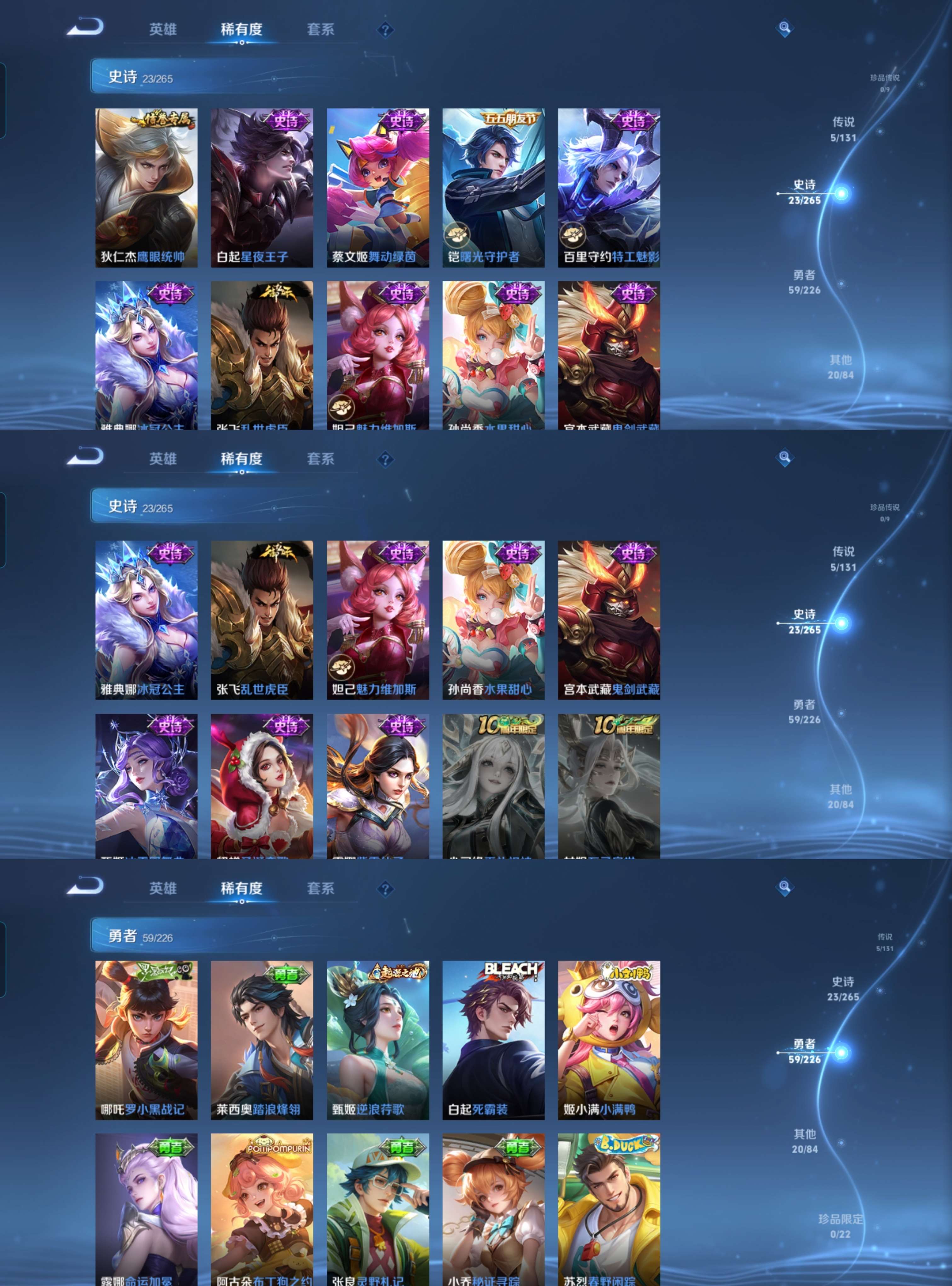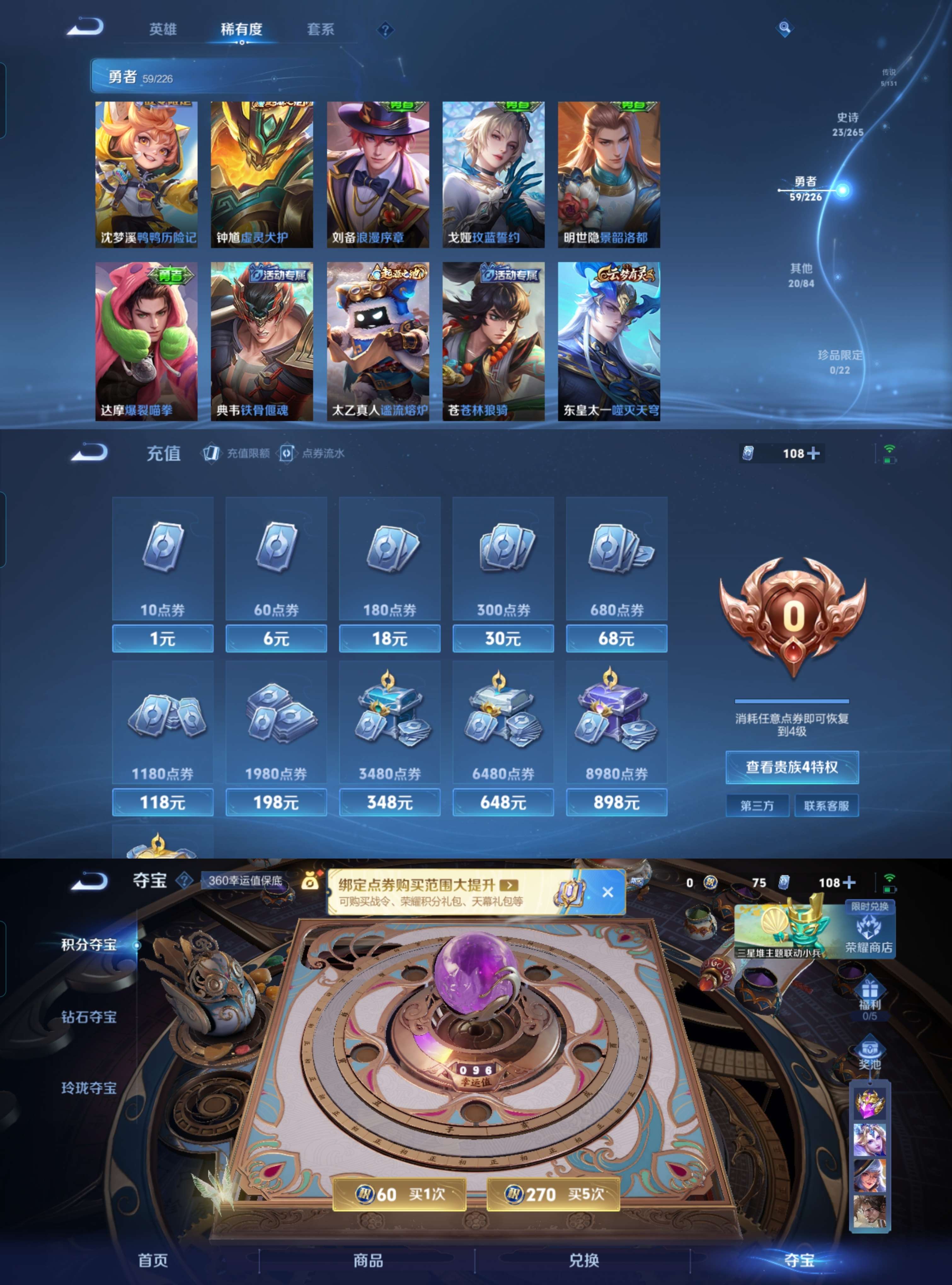 贵族等级:v4皮肤数:107传说品质5 生肖限定2 英雄数:124