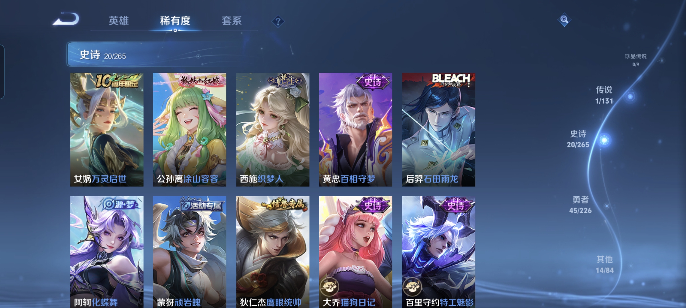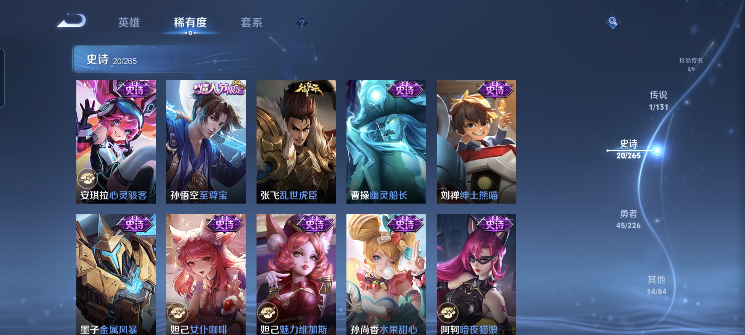 贵族等级:v7皮肤数:80情人节限定1 传说品质1 英雄数:96