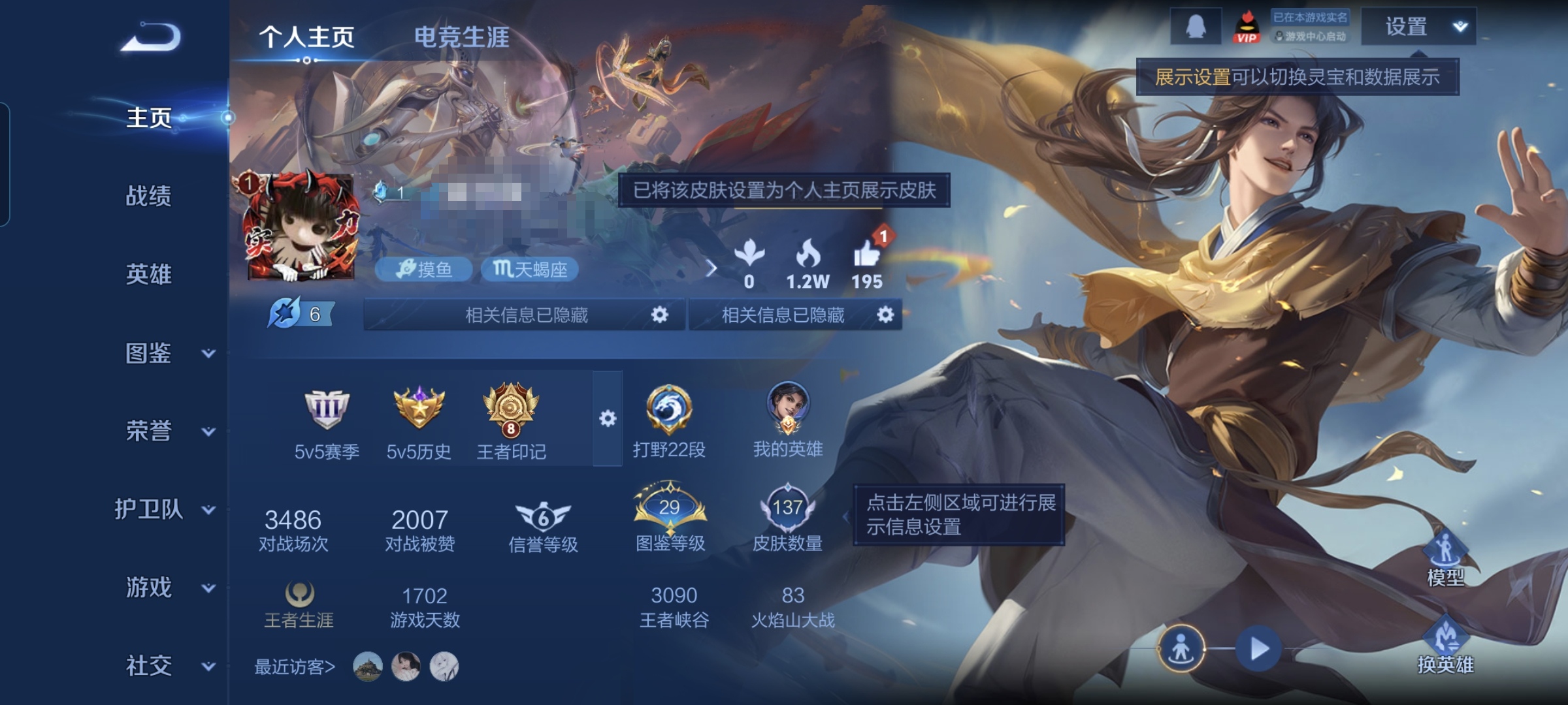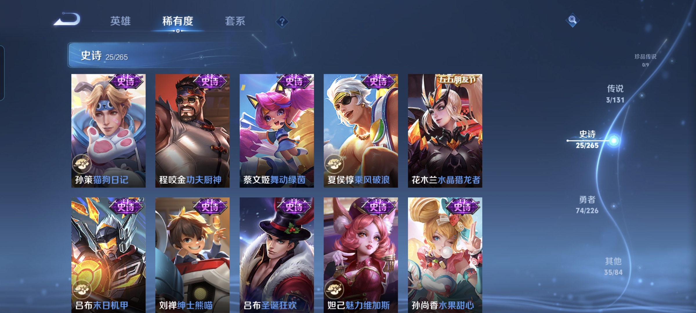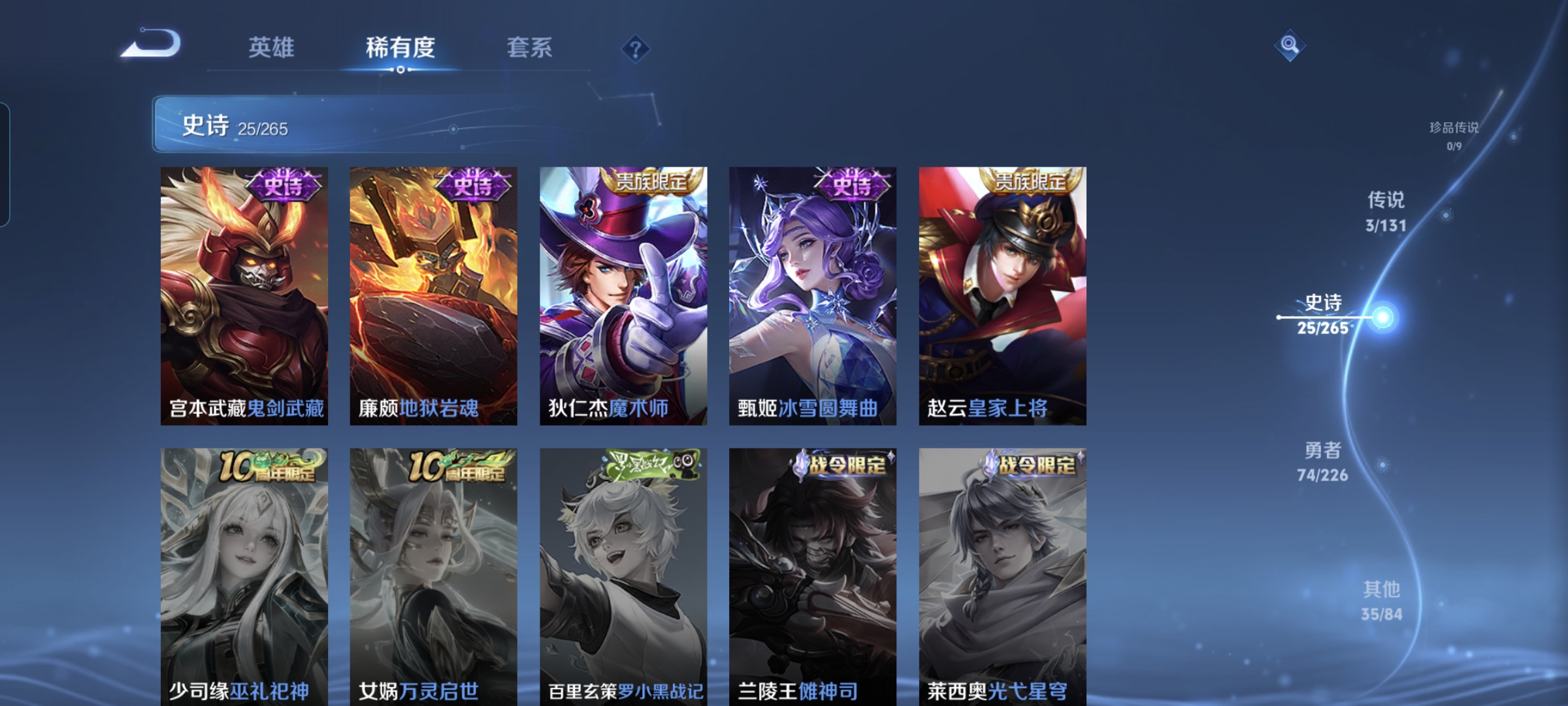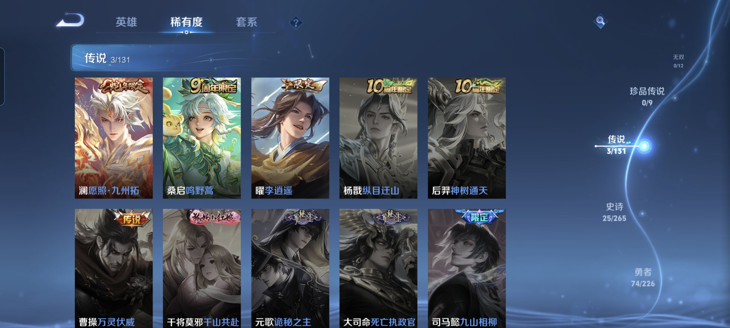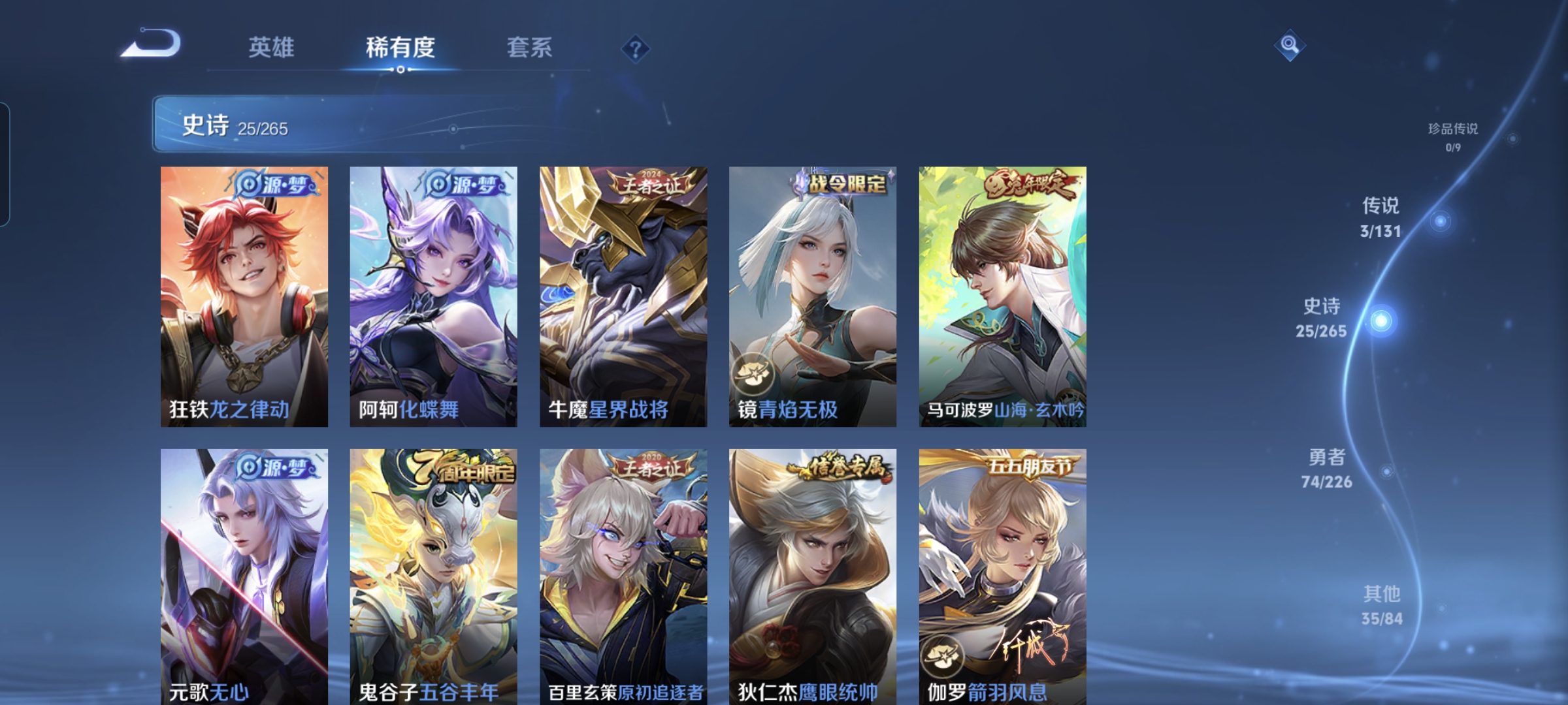 贵族等级:v6皮肤数:137传说品质3 生肖限定2 英雄数:124
