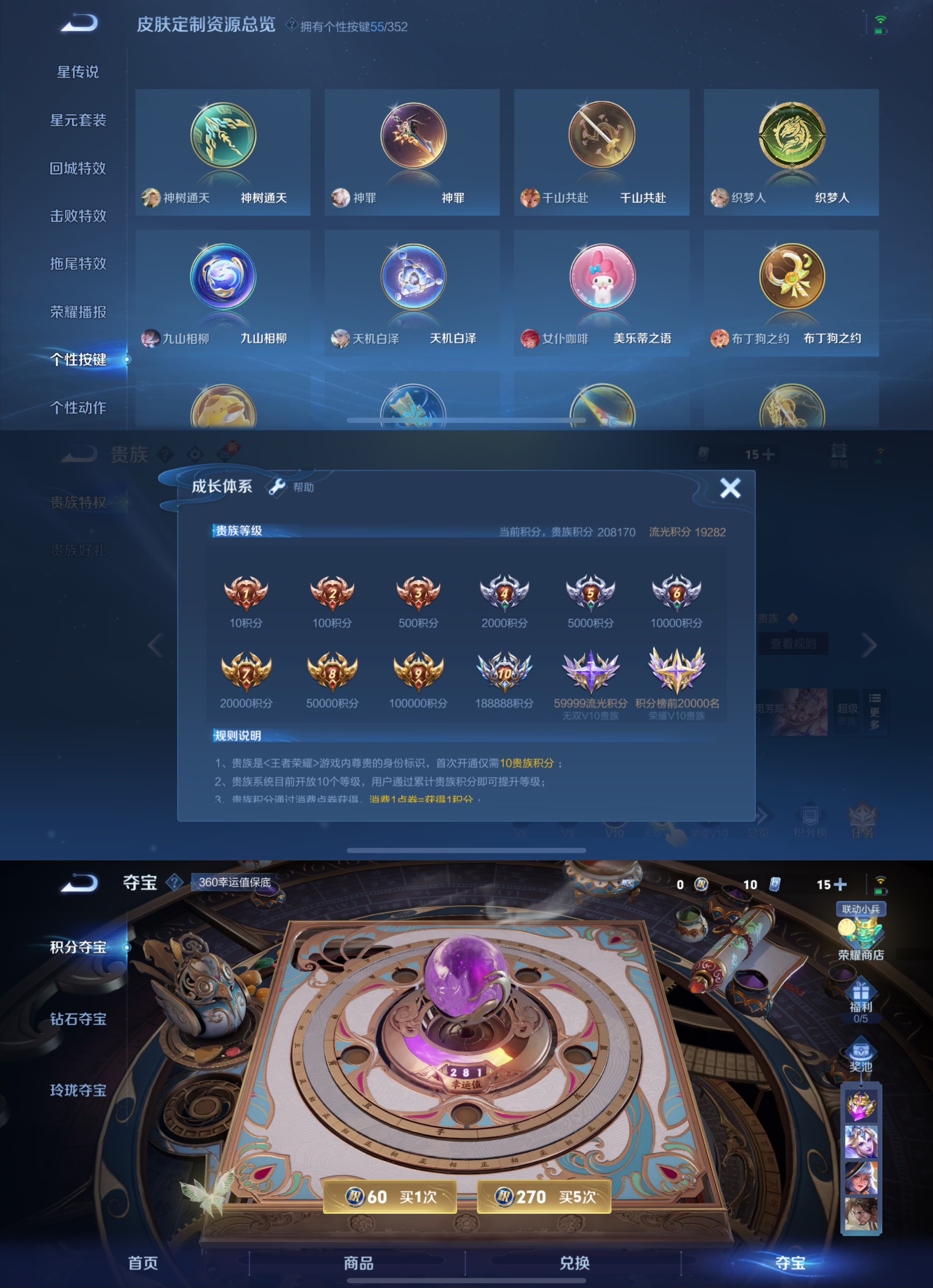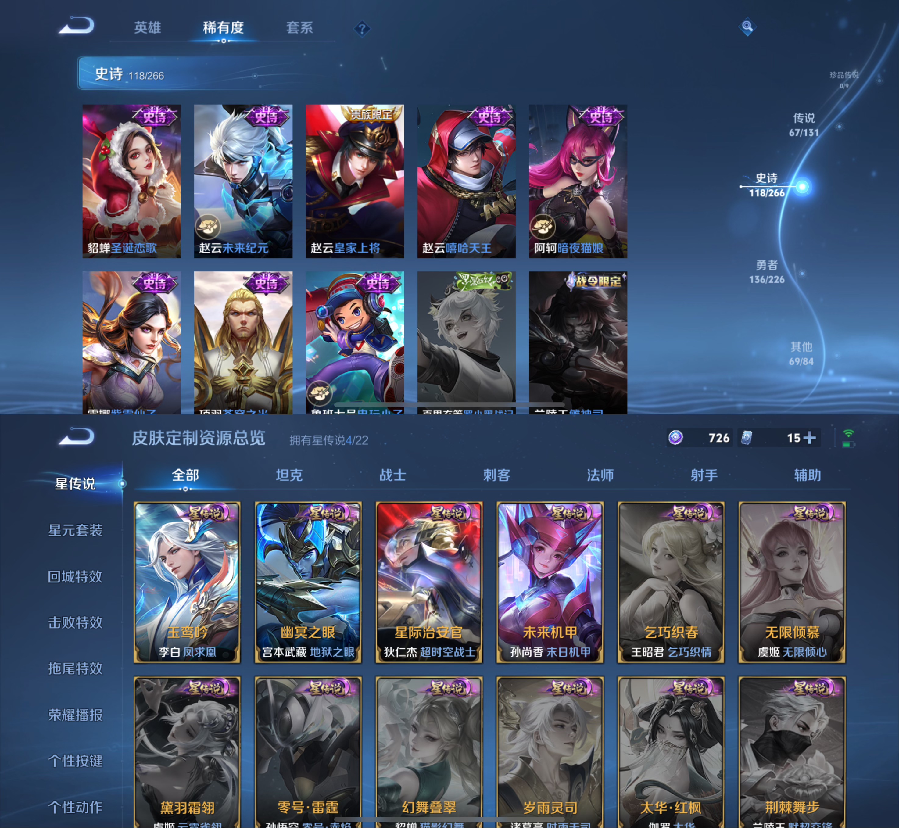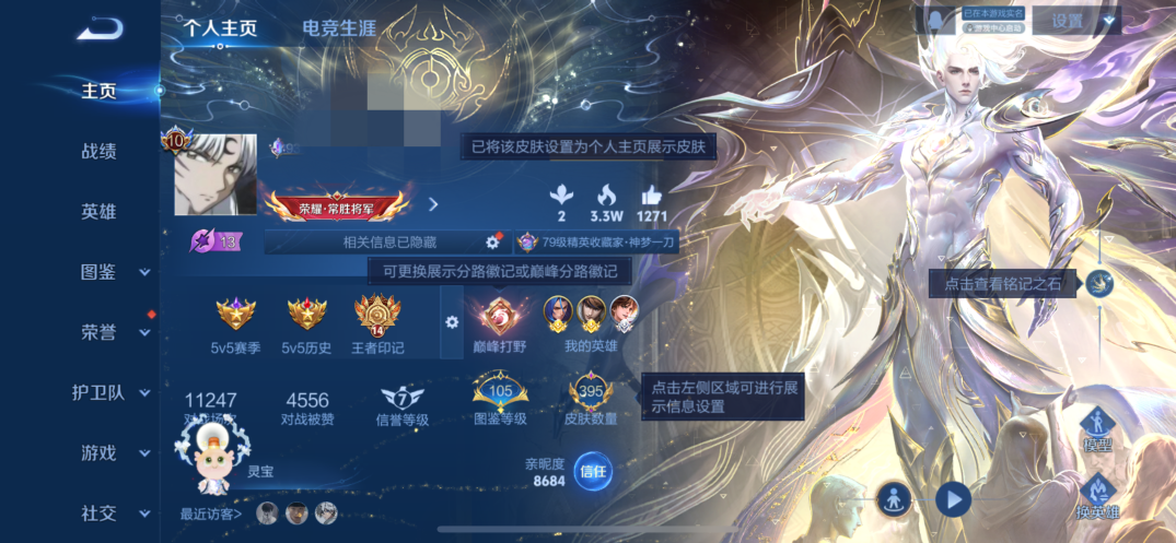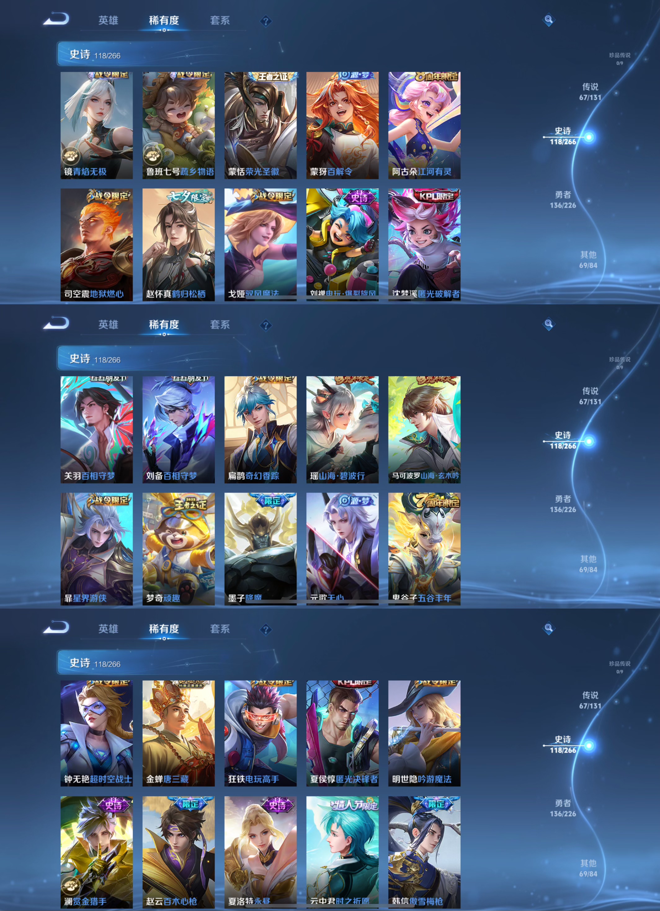 贵族等级:v10皮肤数:396传说品质67 生肖限定17 情人节限定6 无双3 荣耀典藏2 英雄数:127