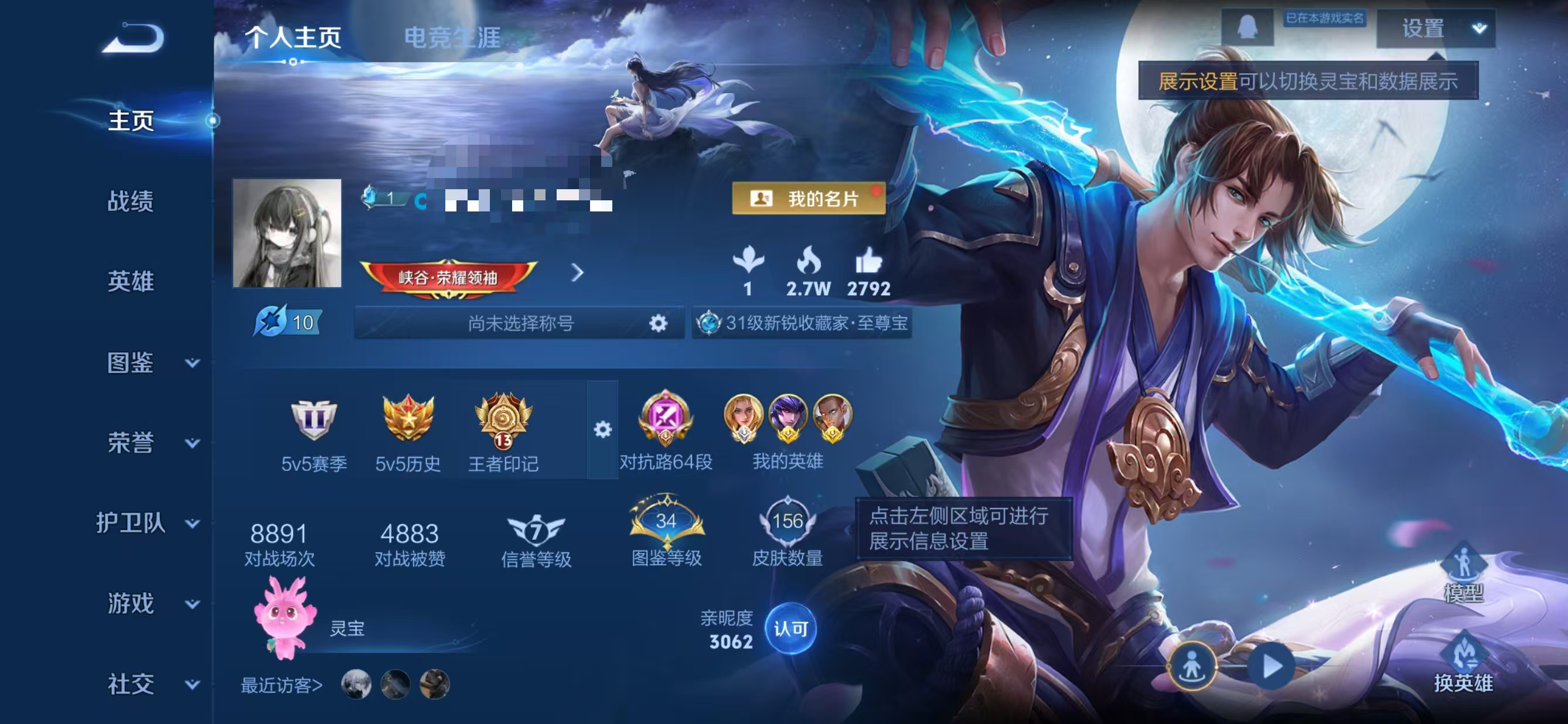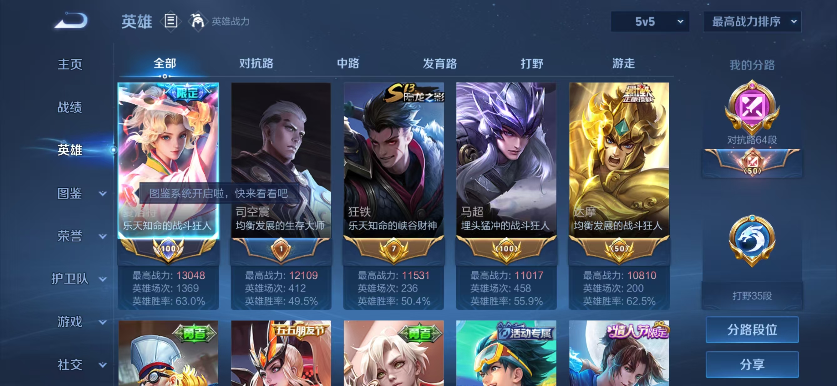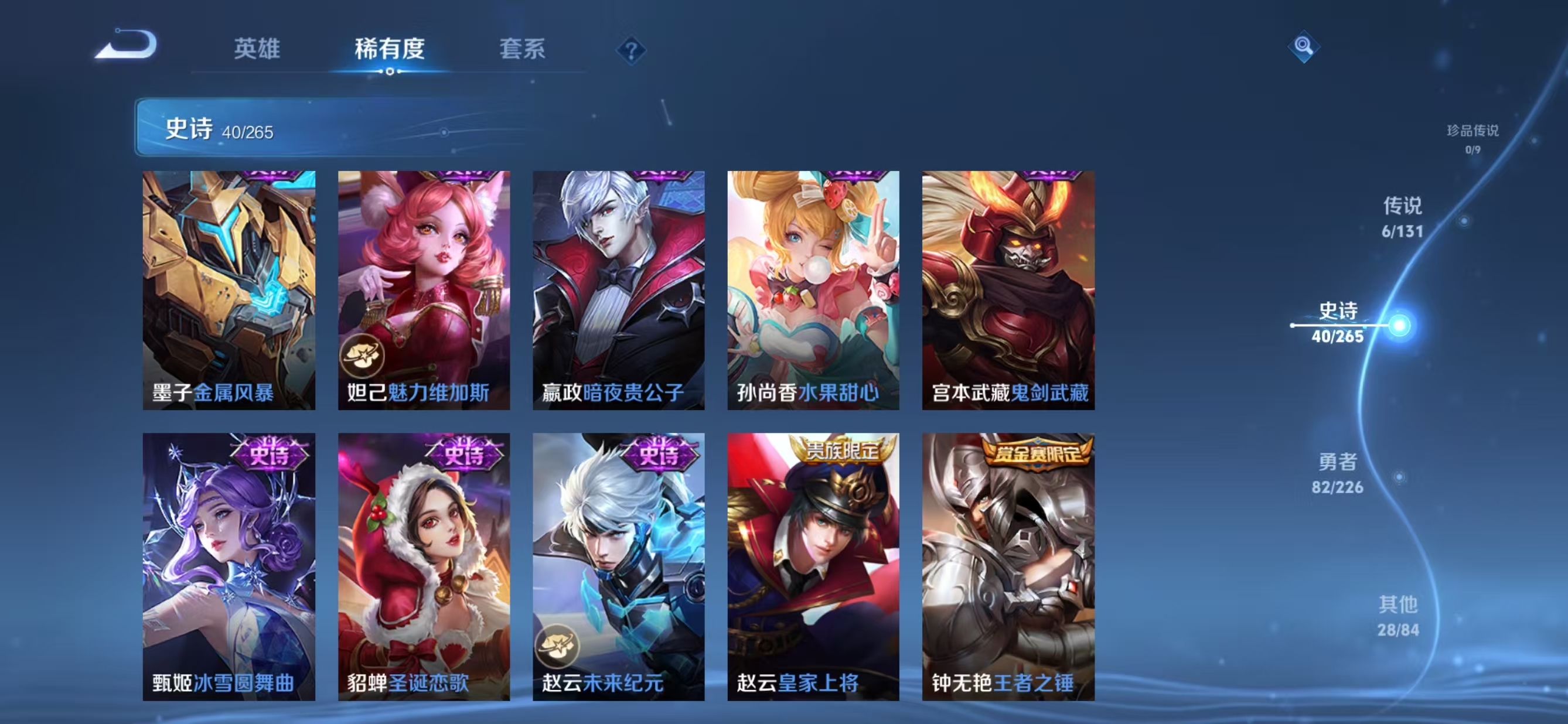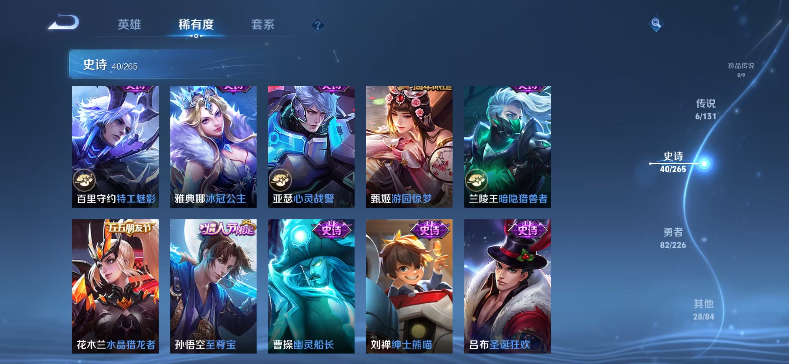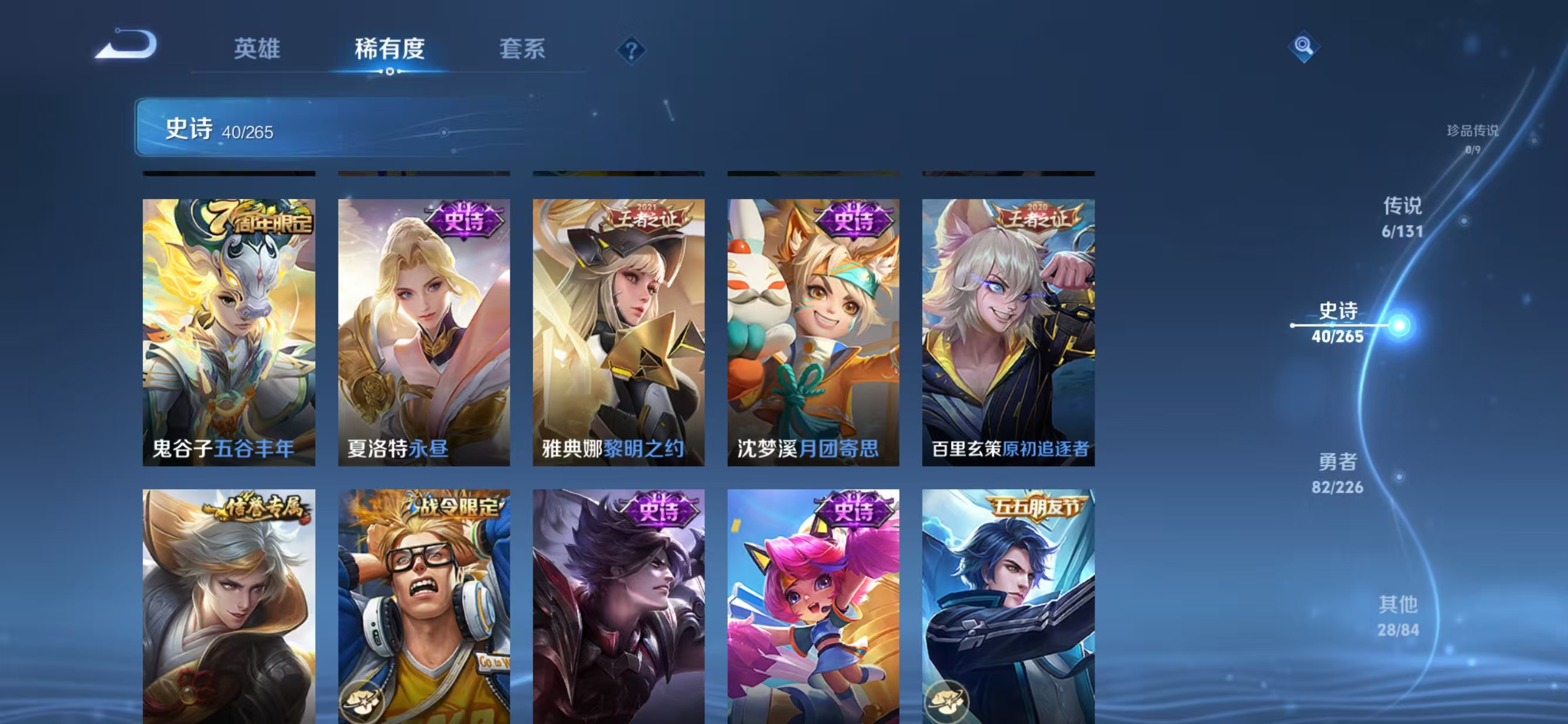 贵族等级:v5皮肤数:156传说品质6 情人节限定1 生肖限定1 英雄数:124