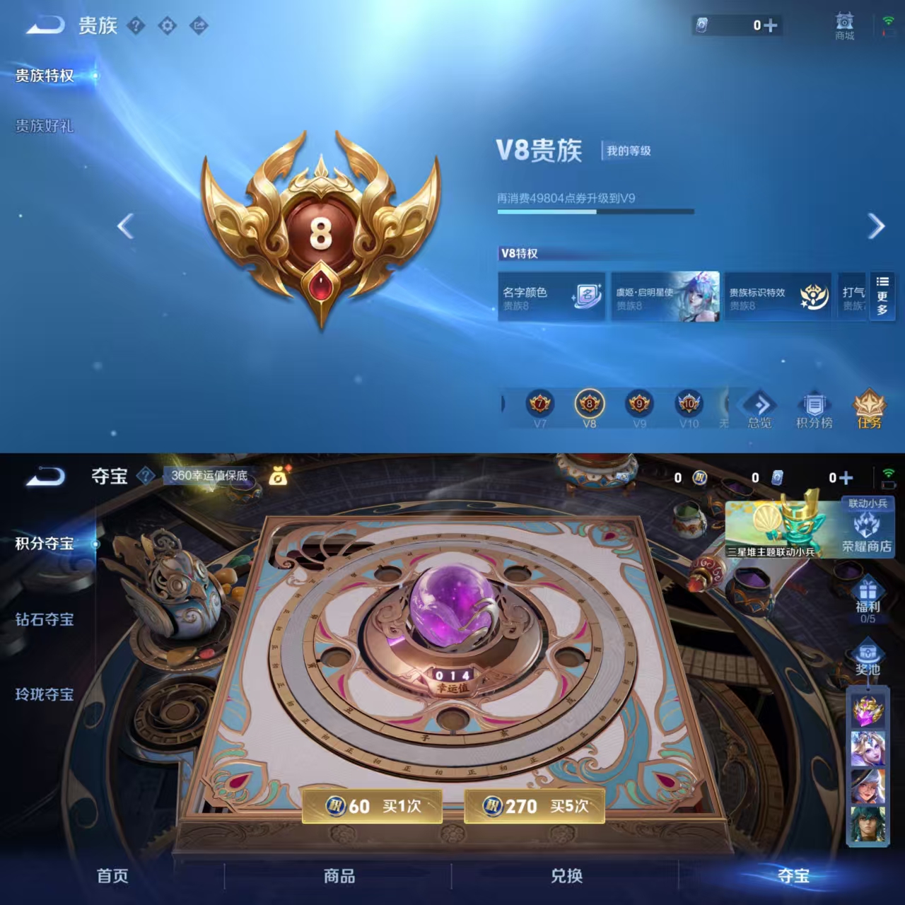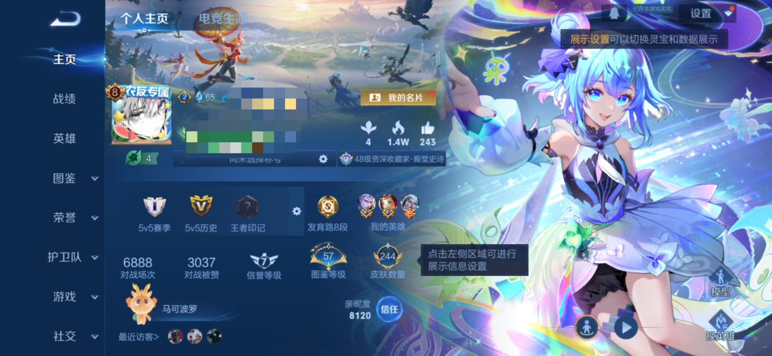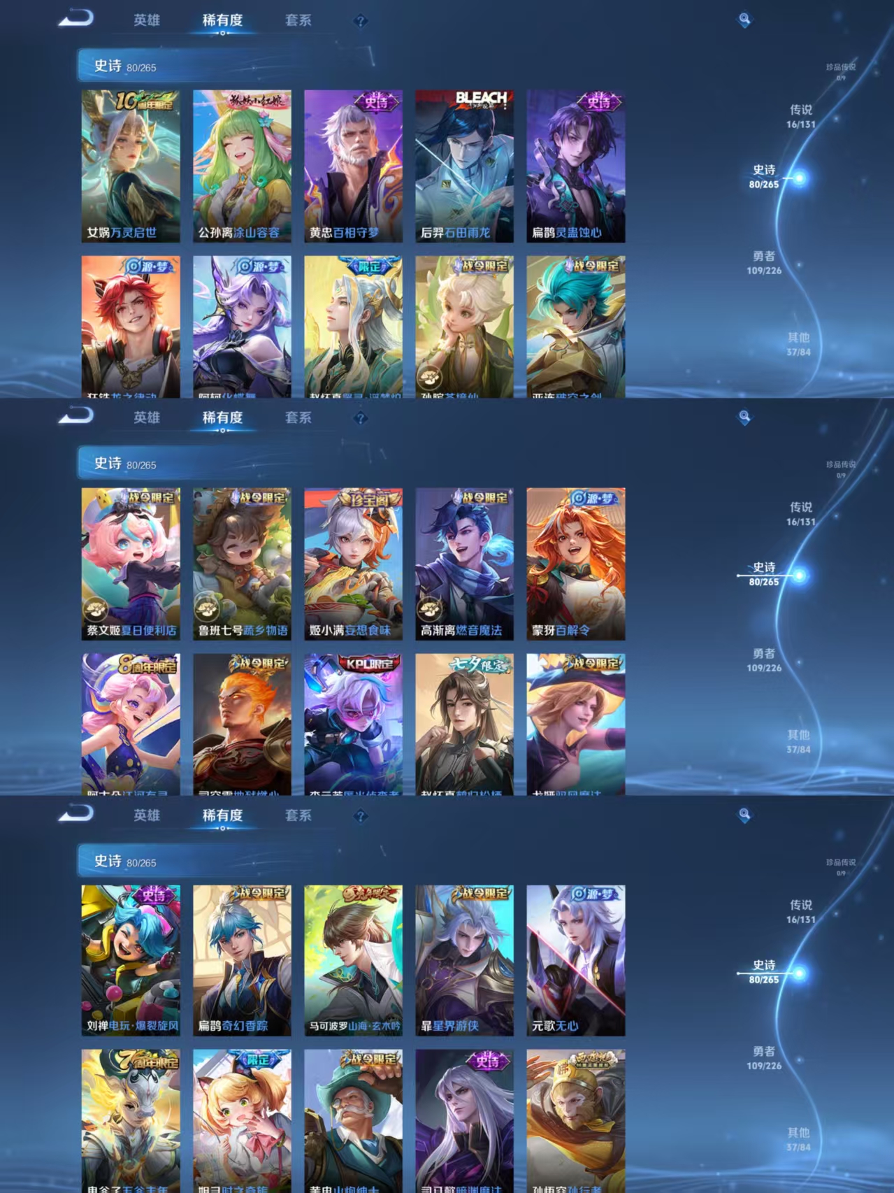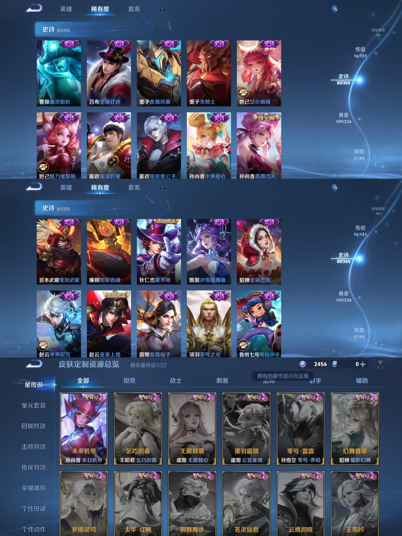 贵族等级:v8皮肤数:244传说品质16 生肖限定3 无双1 荣耀典藏1 英雄数:126