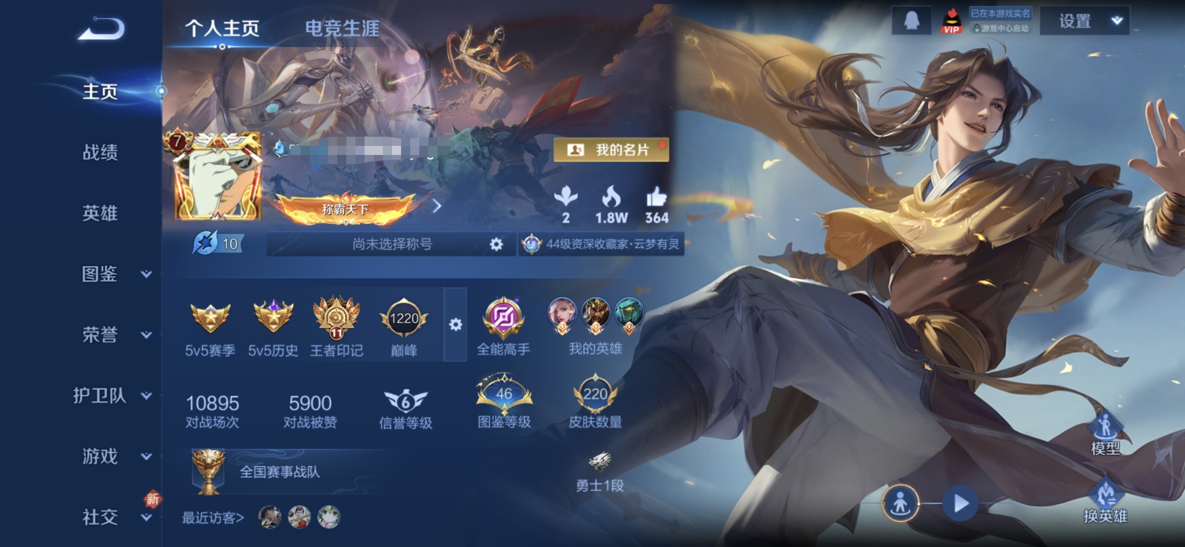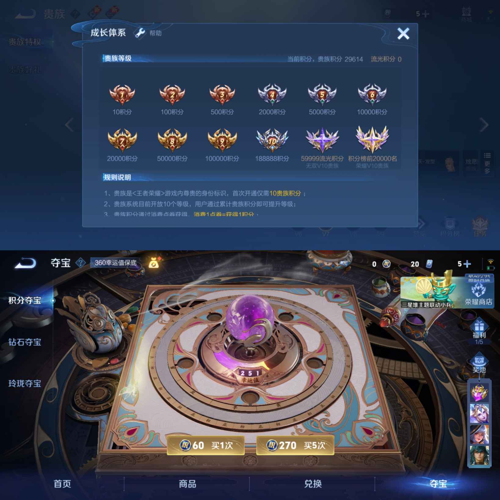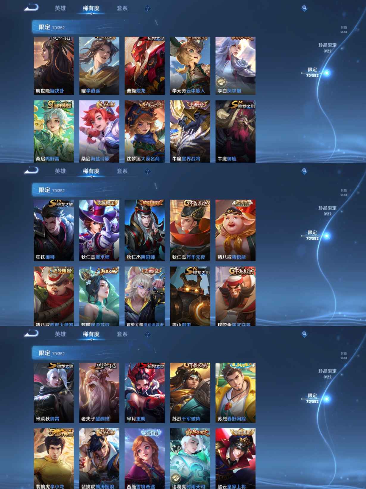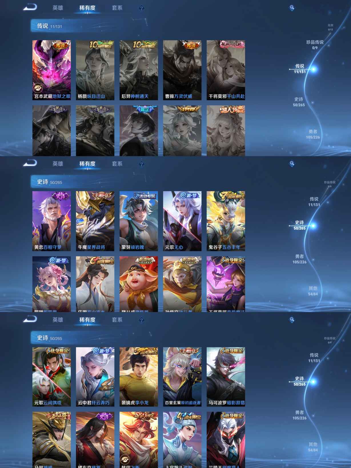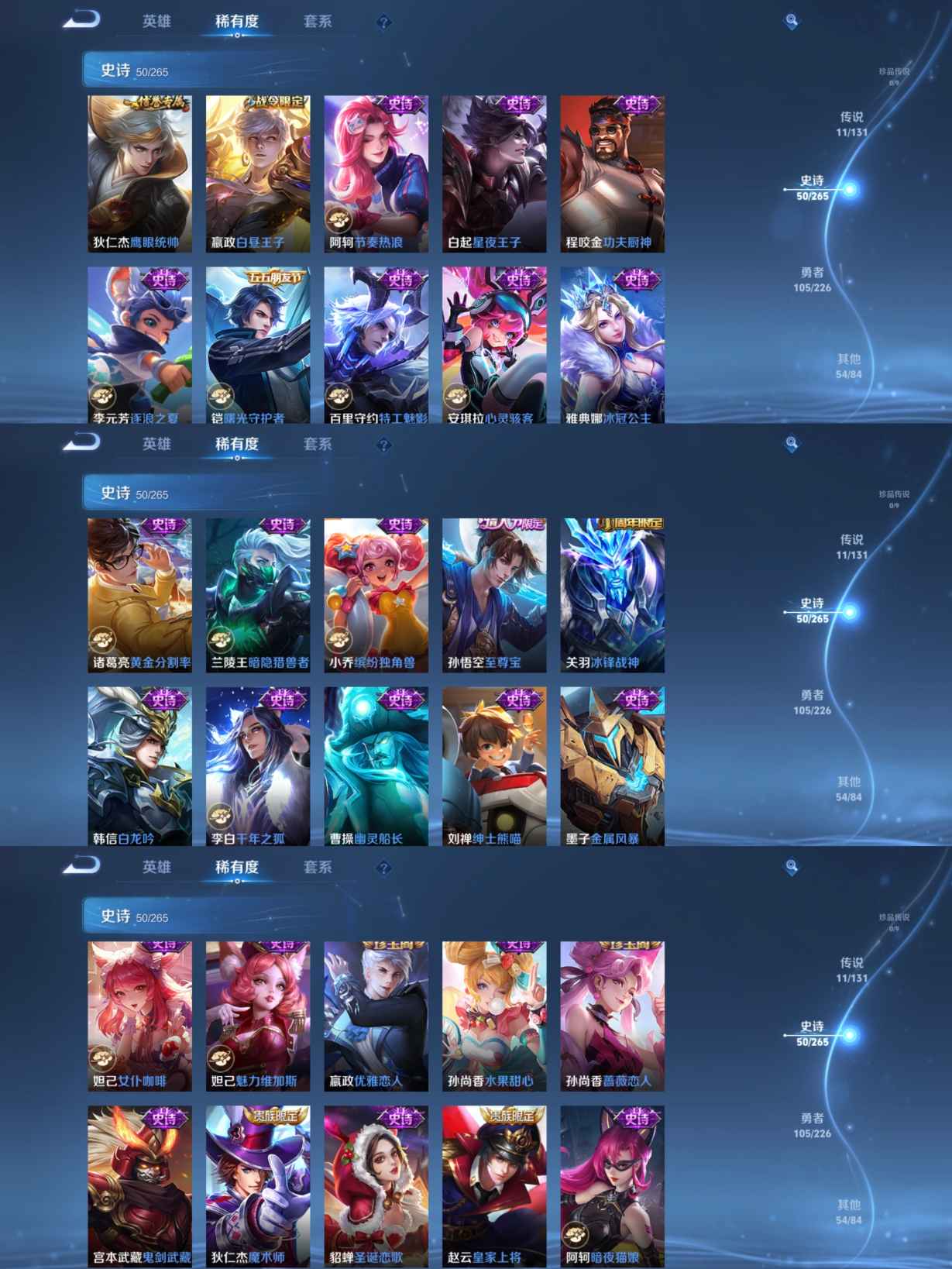 贵族等级:v7皮肤数:220传说品质11 生肖限定3 情人节限定1 英雄数:126