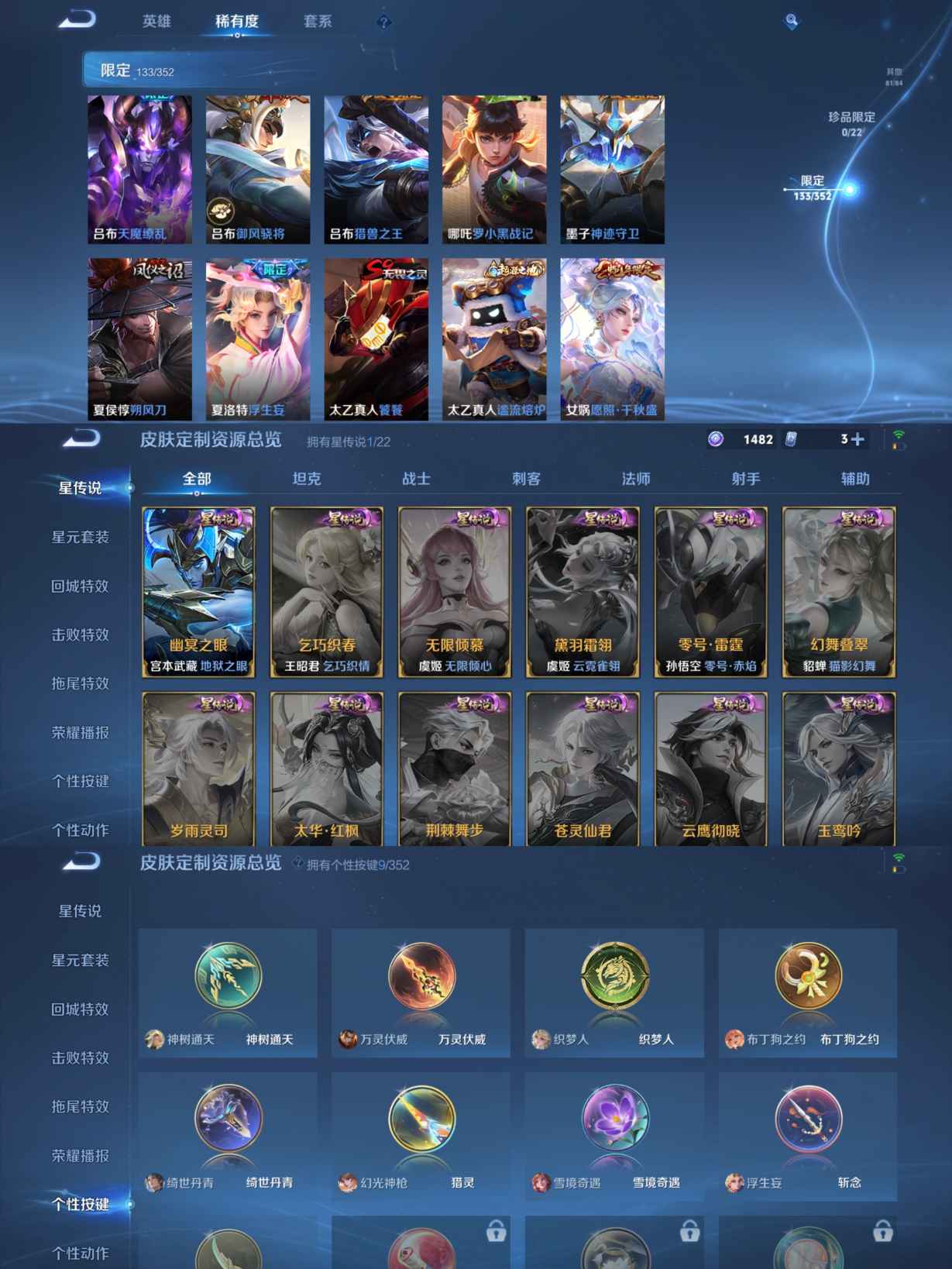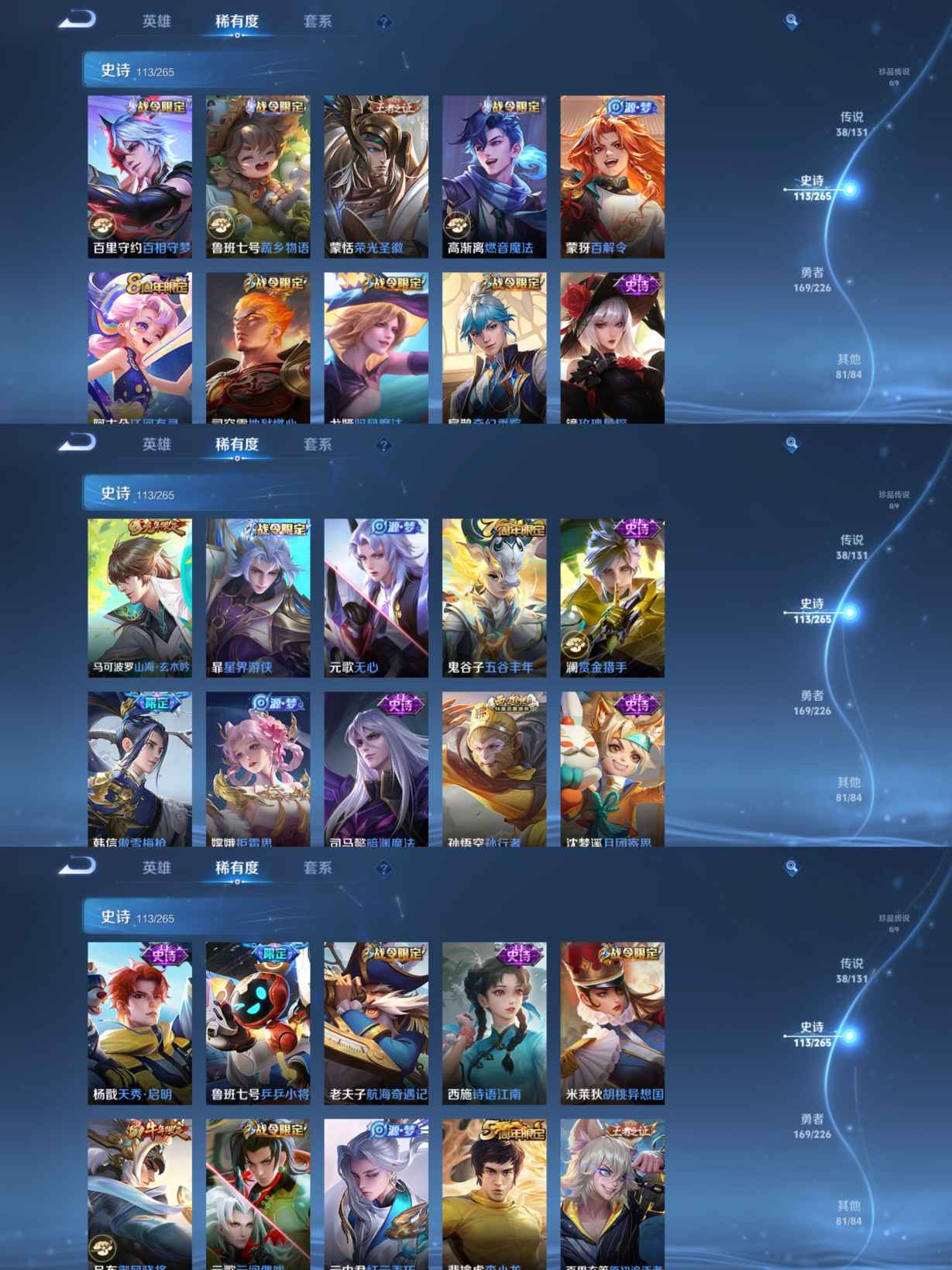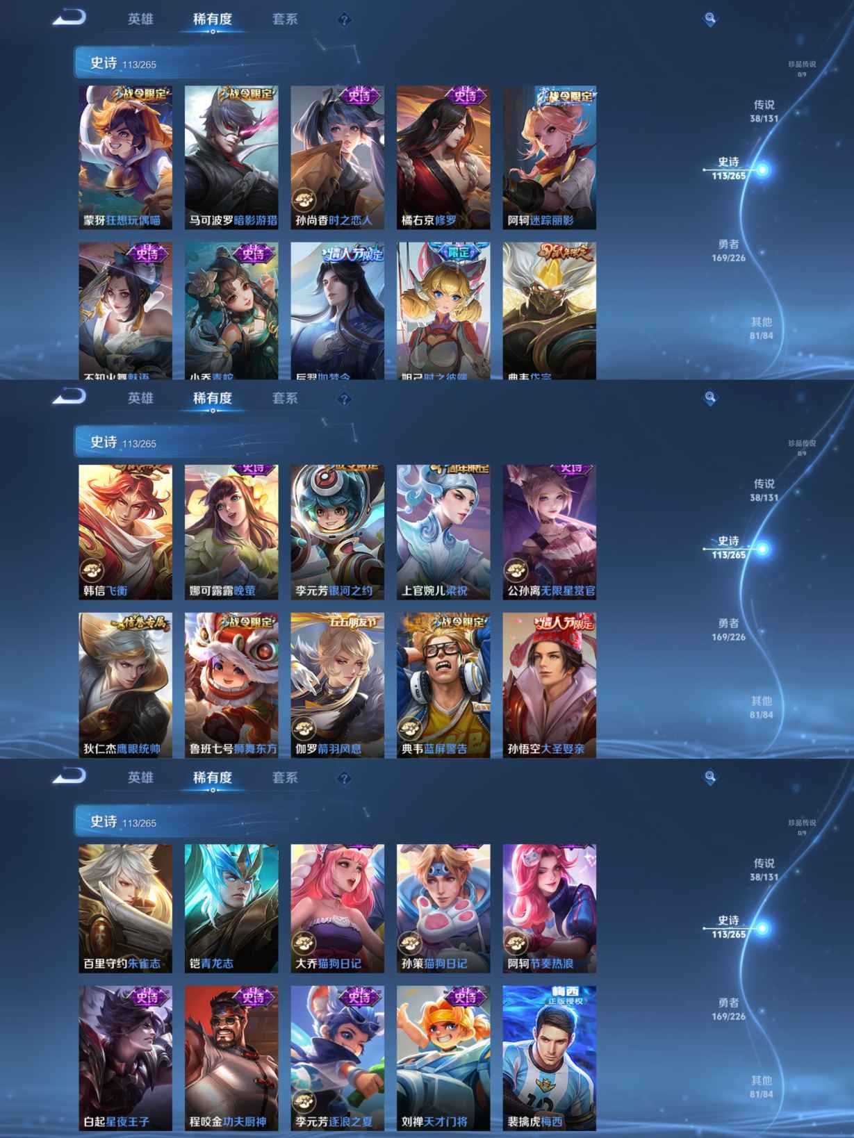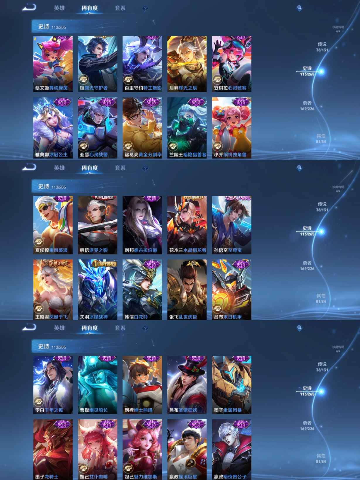 贵族等级:v9皮肤数:403生肖限定15 传说品质38 情人节限定5 荣耀典藏2 英雄数:127