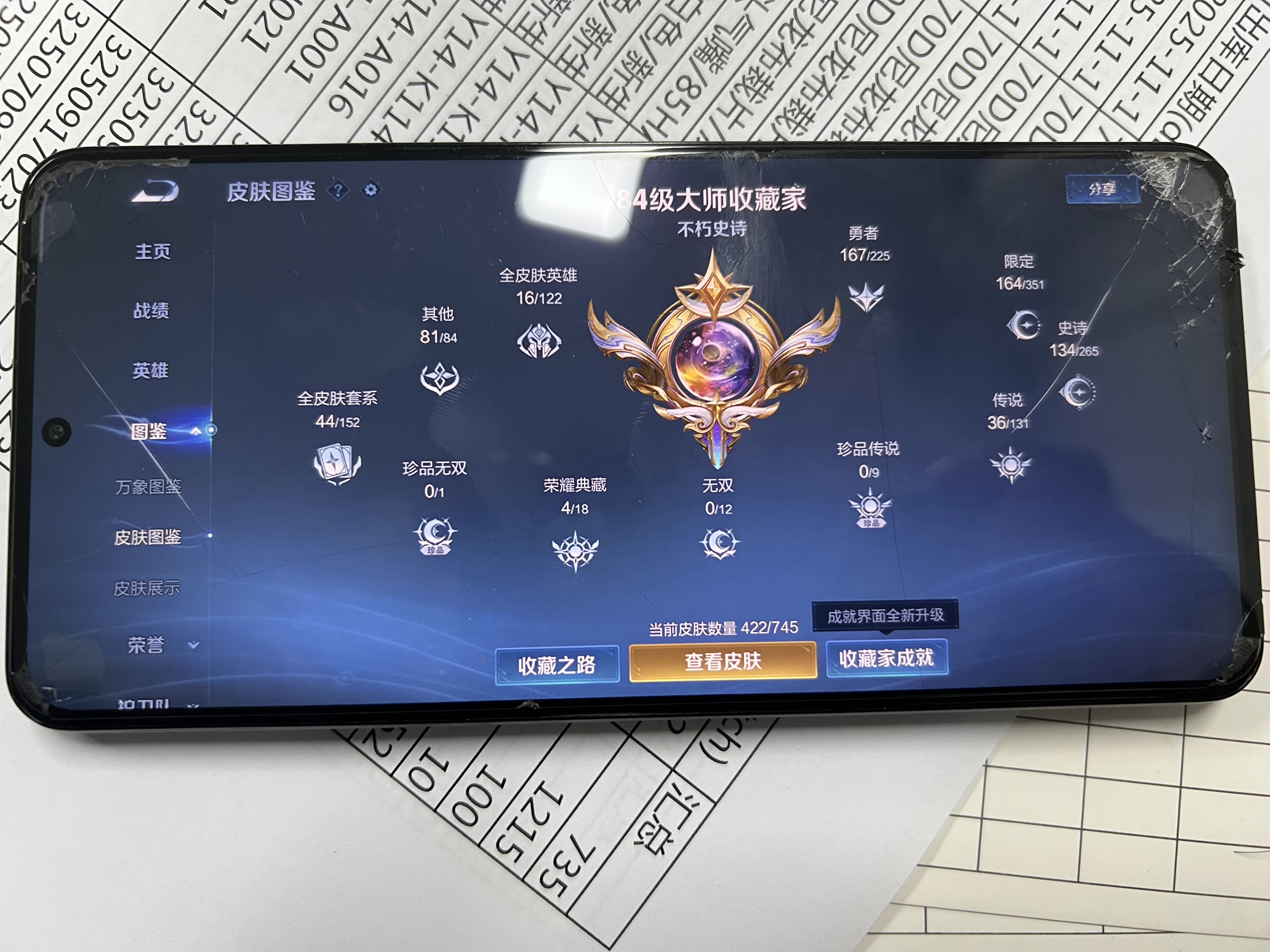 贵族等级:v9皮肤数:423生肖限定15 传说品质36 情人节限定7 荣耀典藏4 英雄数:128
