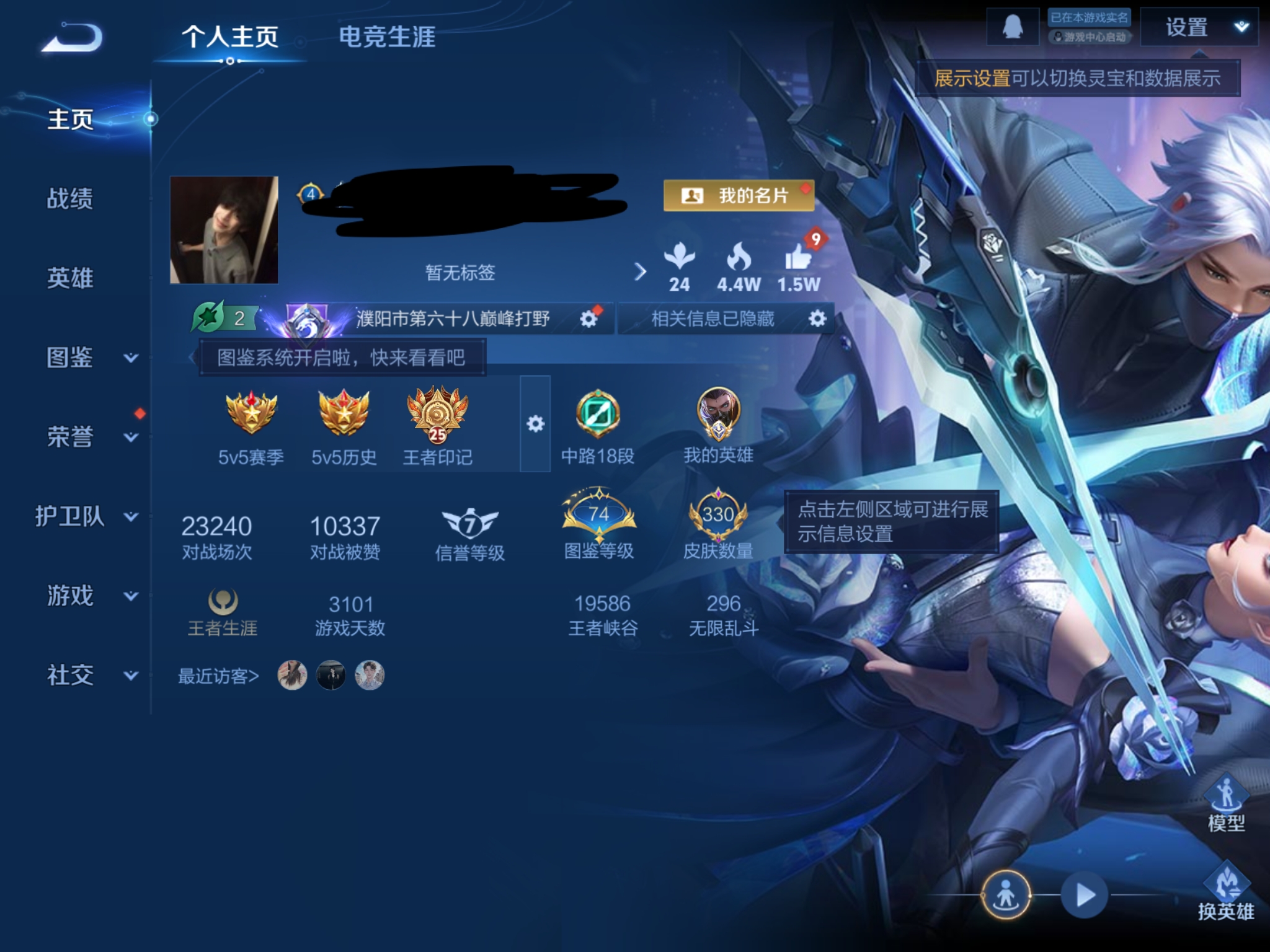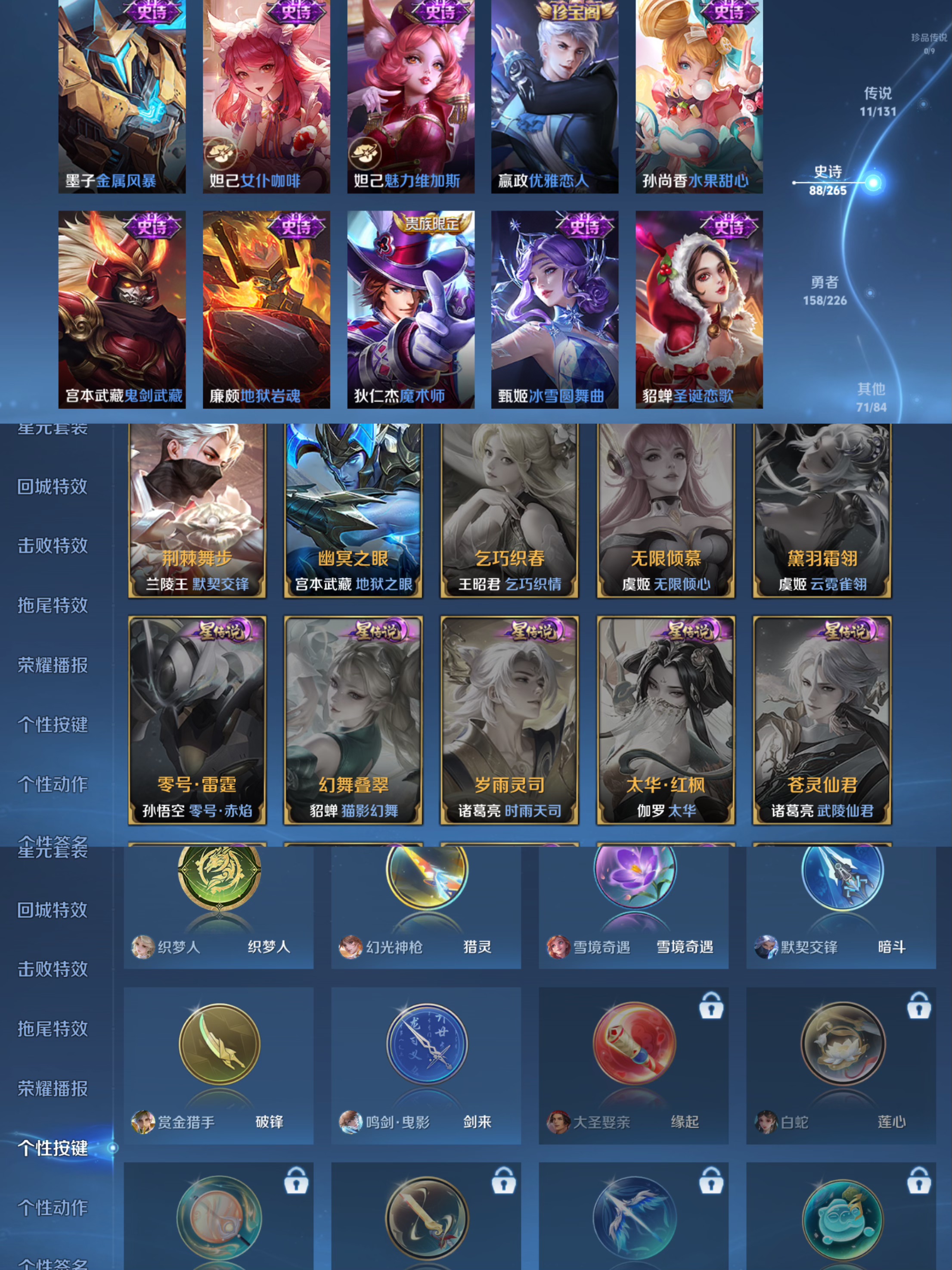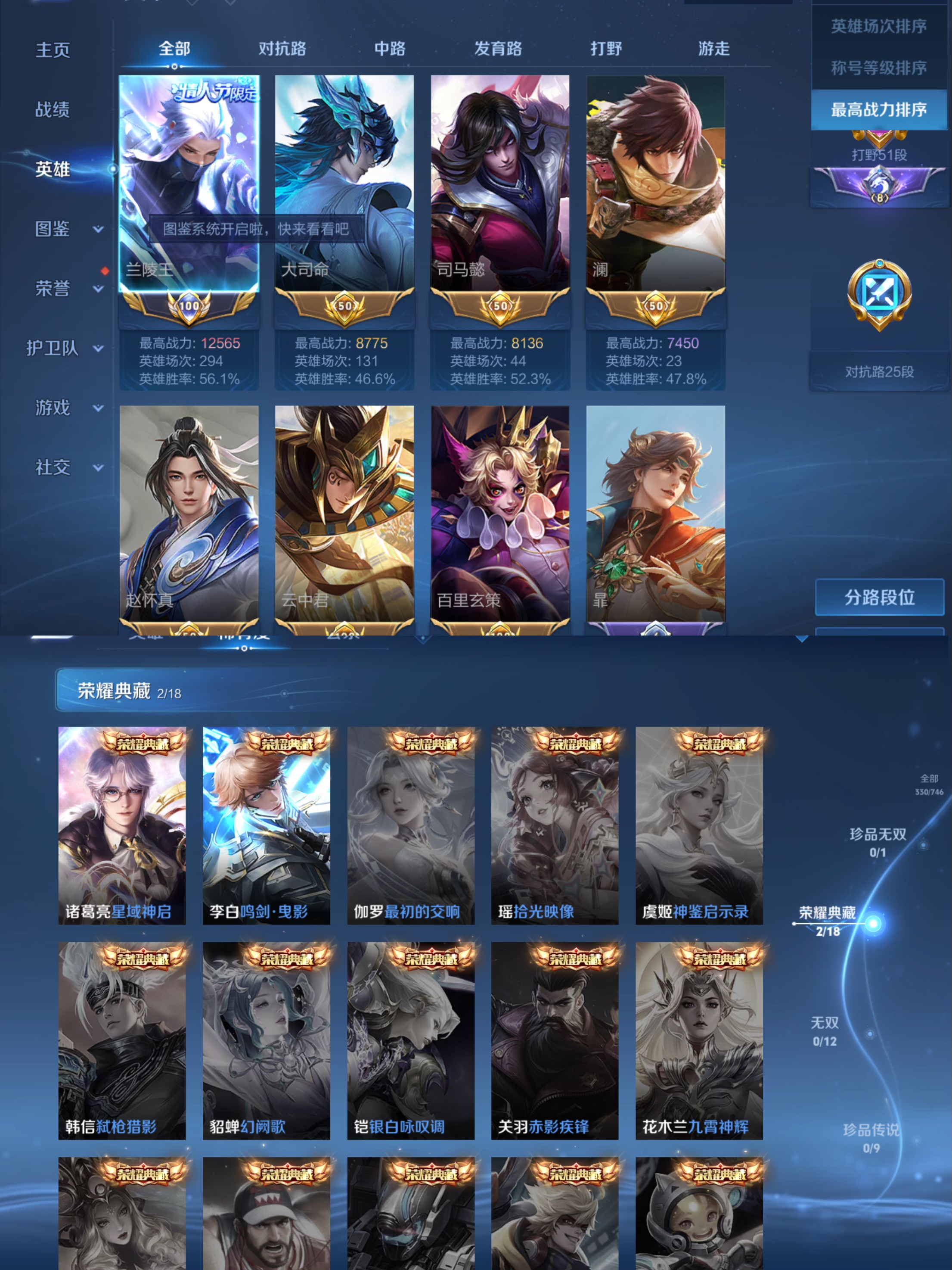 贵族等级:v7皮肤数:330生肖限定4 情人节限定4 传说品质11 荣耀典藏2 英雄数:126