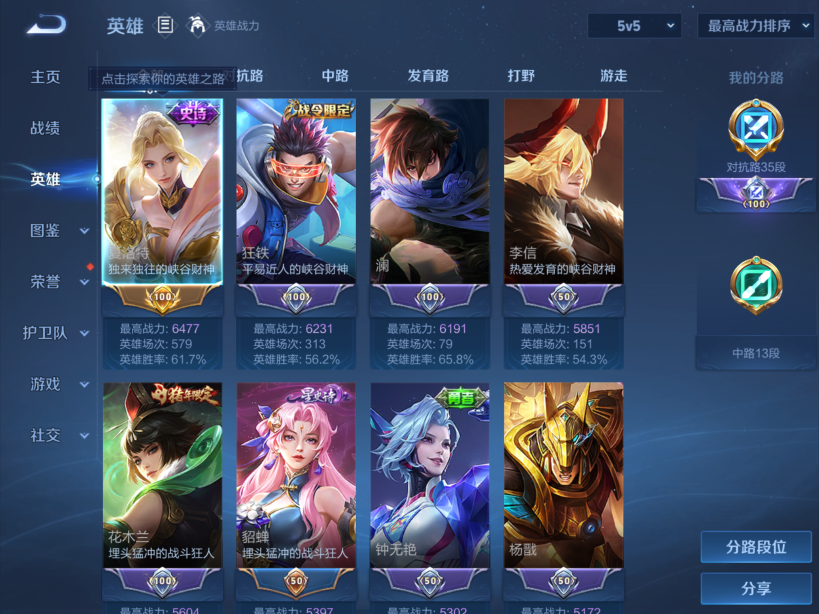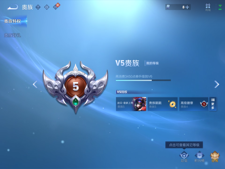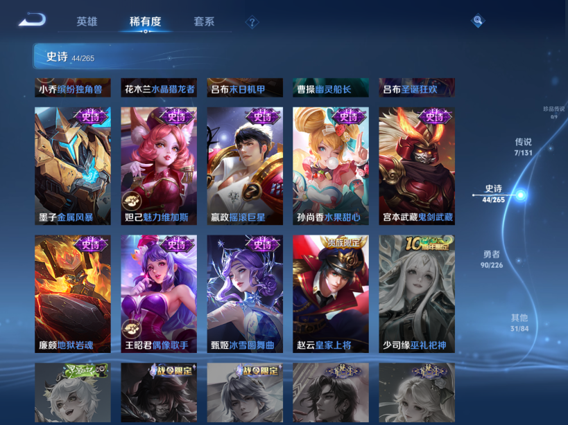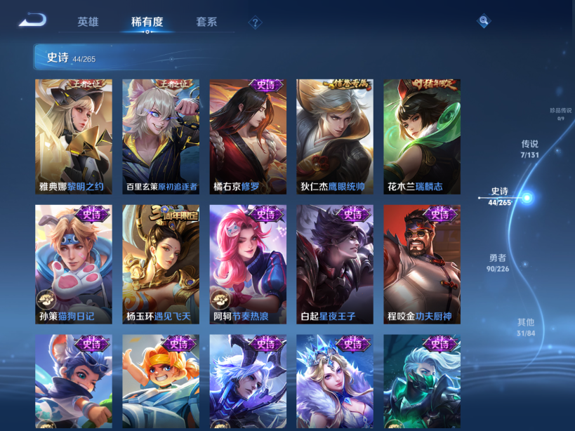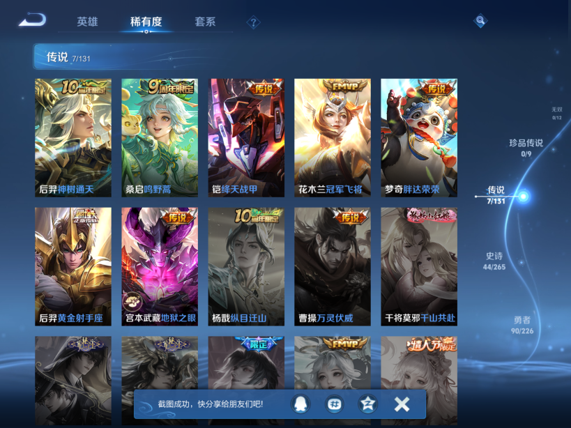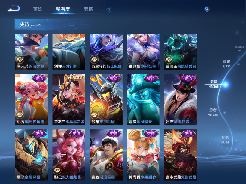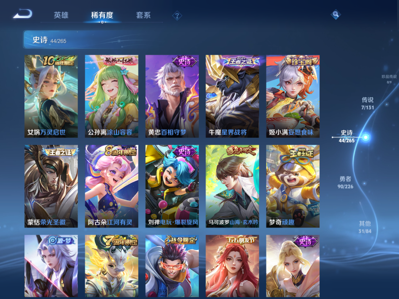 贵族等级:v6皮肤数:172传说品质7 生肖限定2 英雄数:127