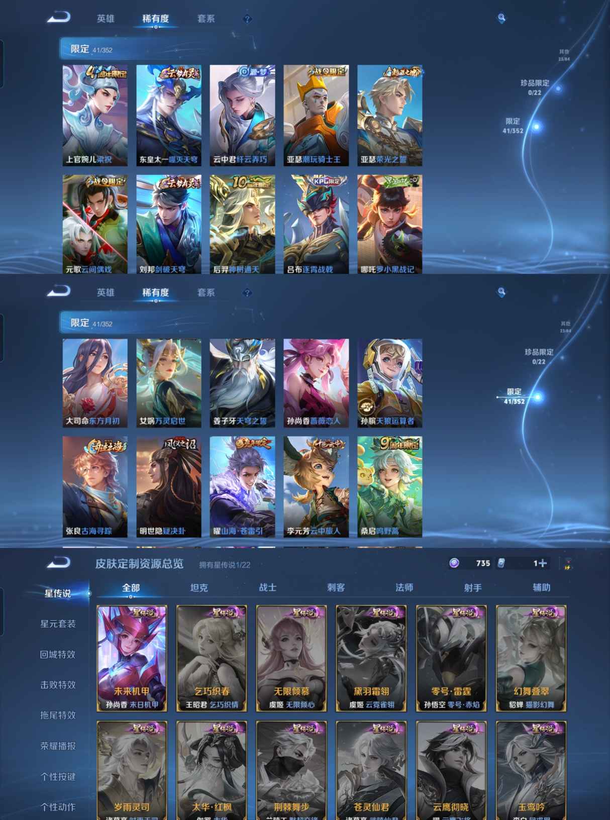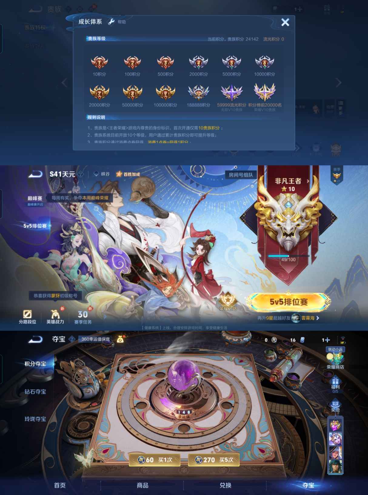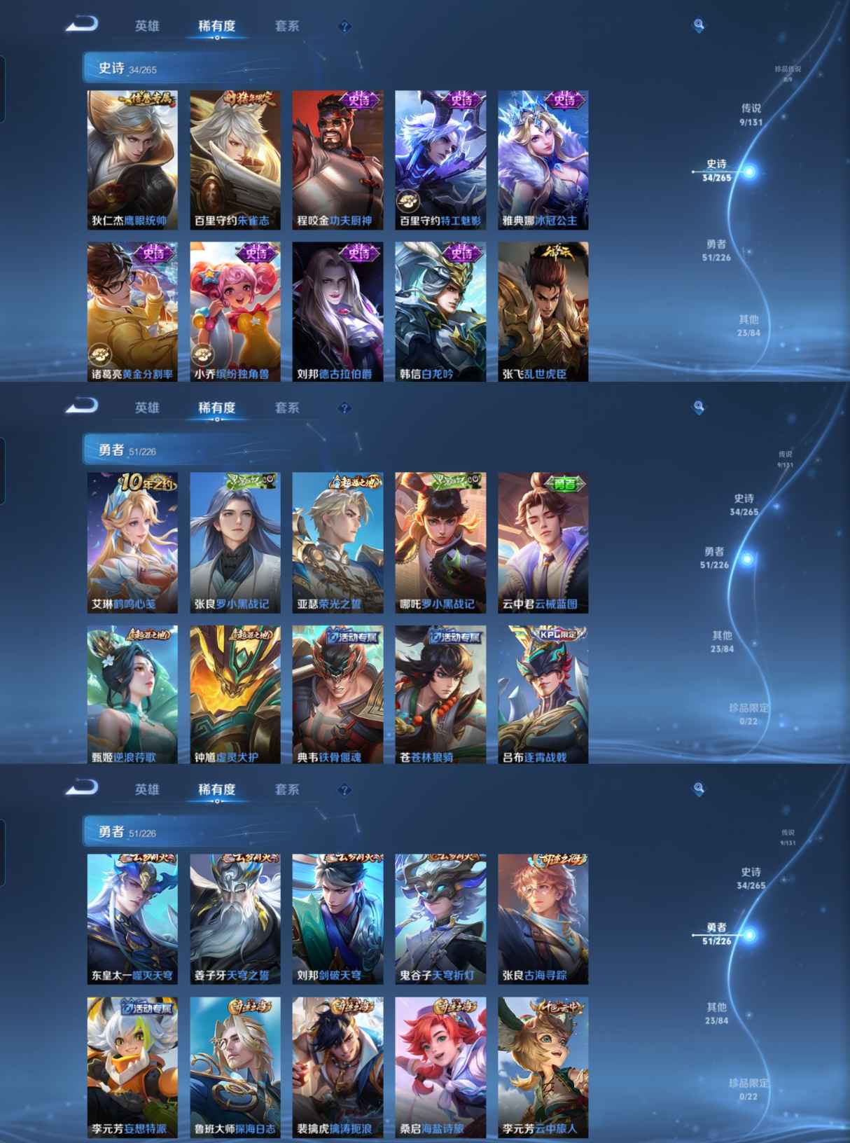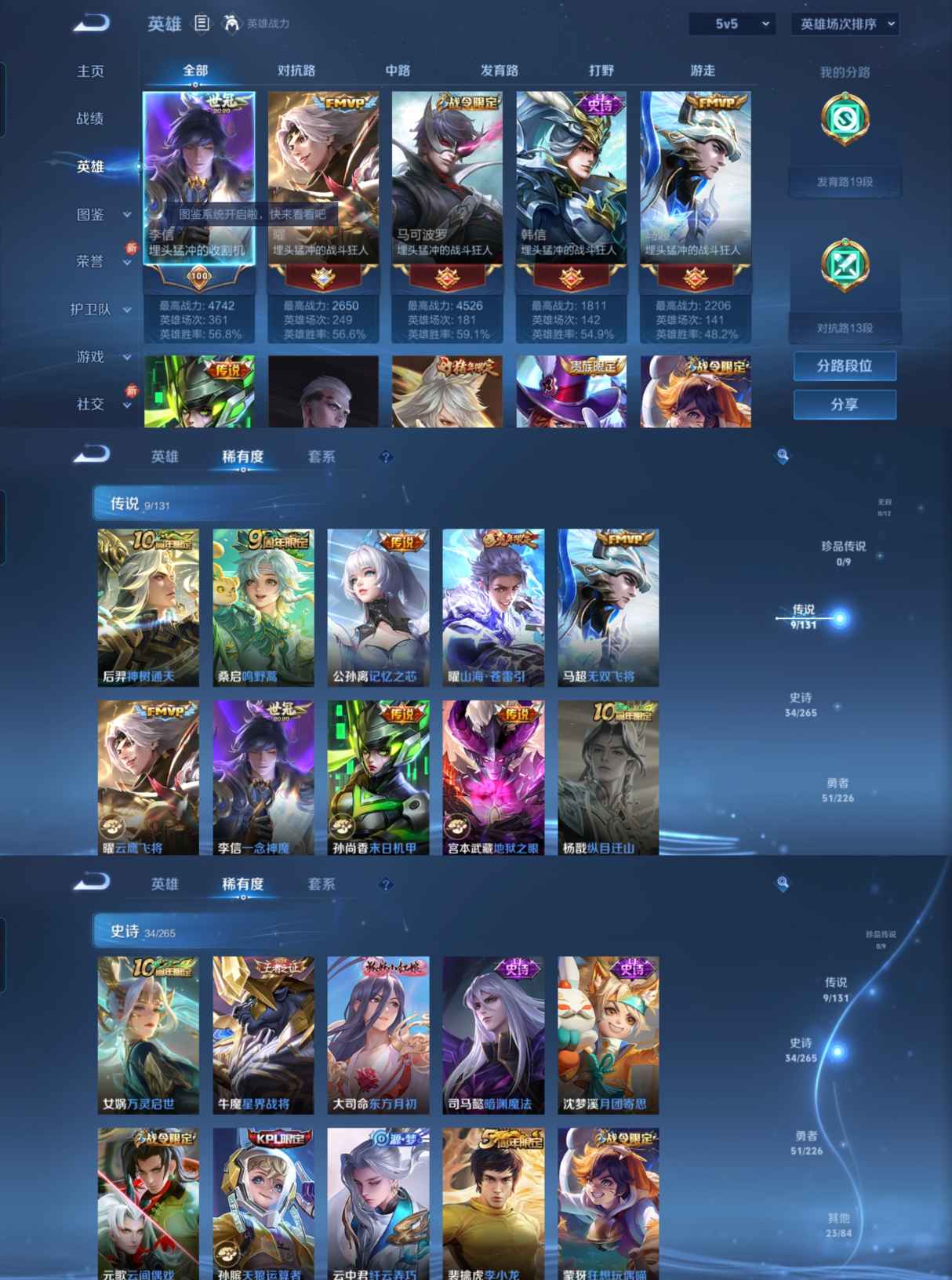 贵族等级:v7皮肤数:117传说品质9 生肖限定2 英雄数:125