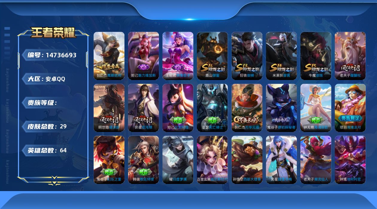 [14736693]实名: 可修改 英雄数: 64 皮肤数: 29