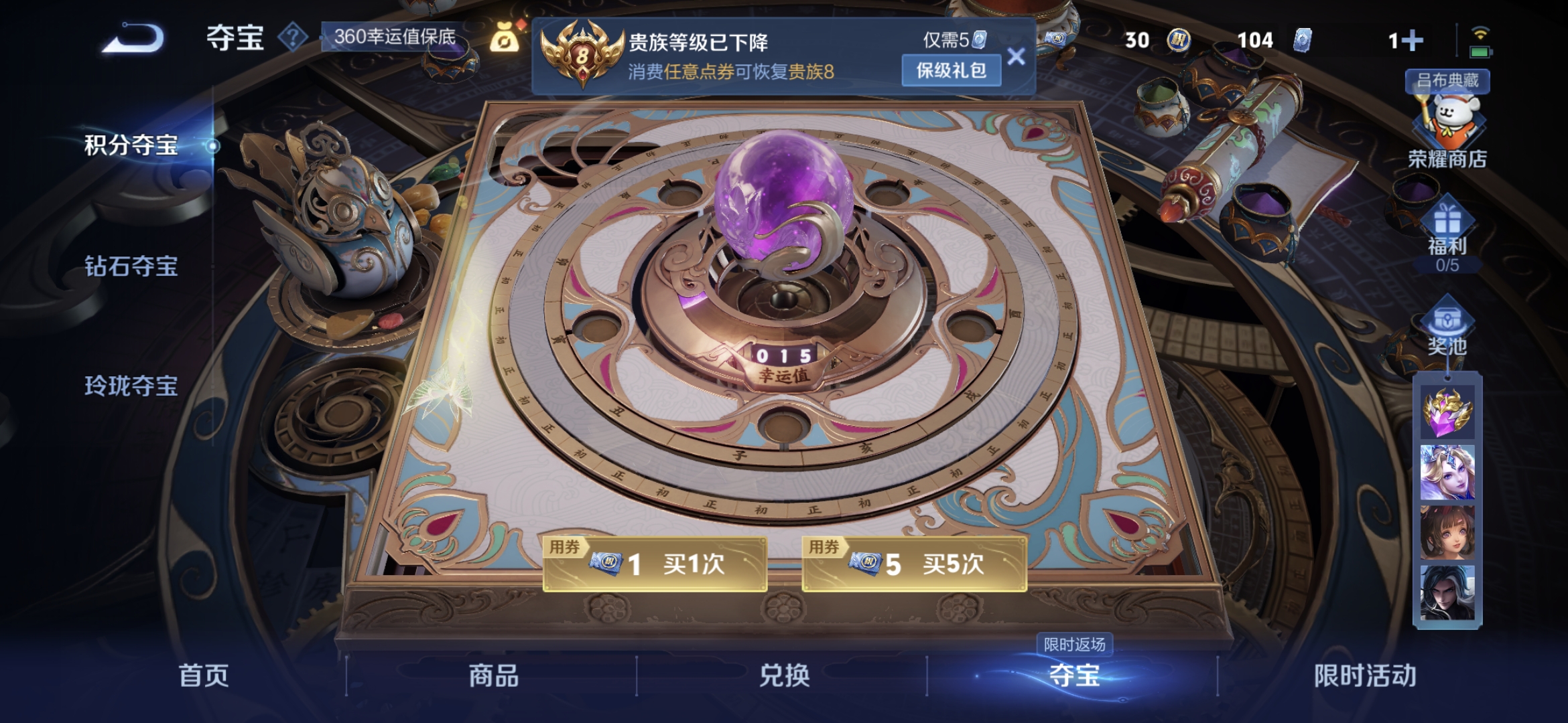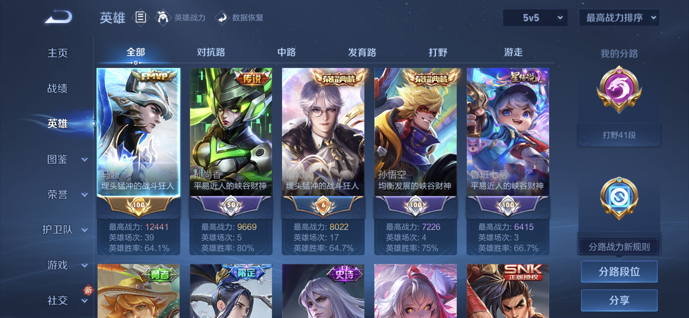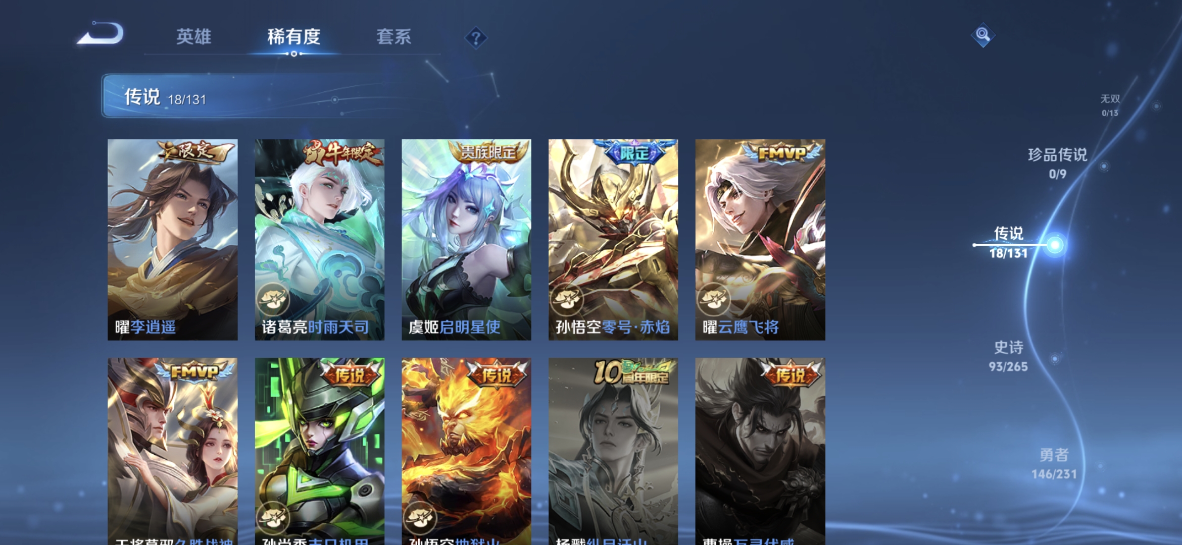 贵族等级:v8皮肤数:339情人节限定3 传说品质18 生肖限定5 荣耀典藏2 英雄数:126