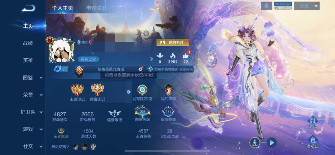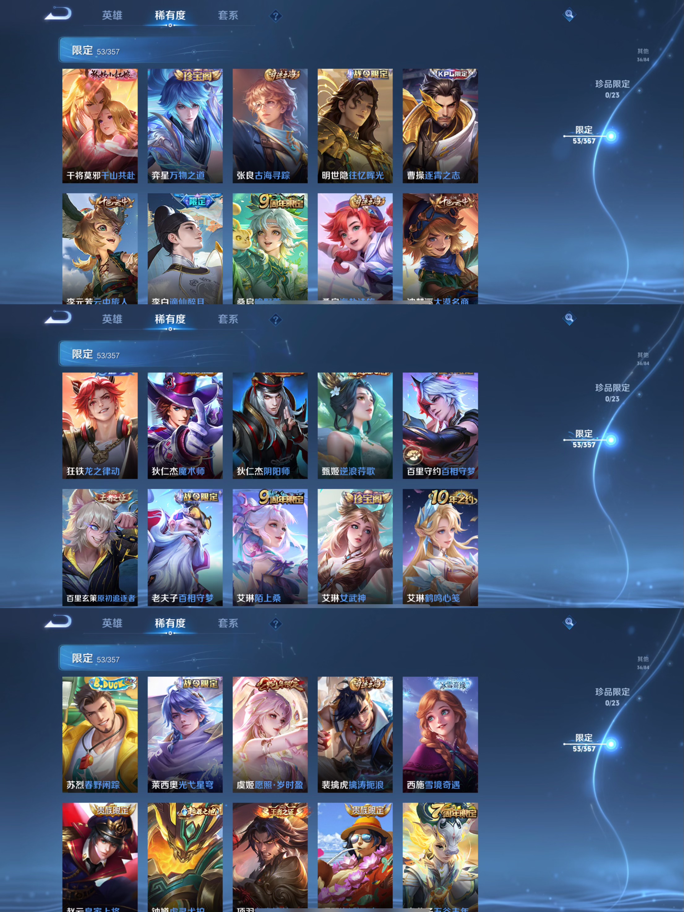 贵族等级:v7皮肤数:177生肖限定5 传说品质13 荣耀典藏1 英雄数:126