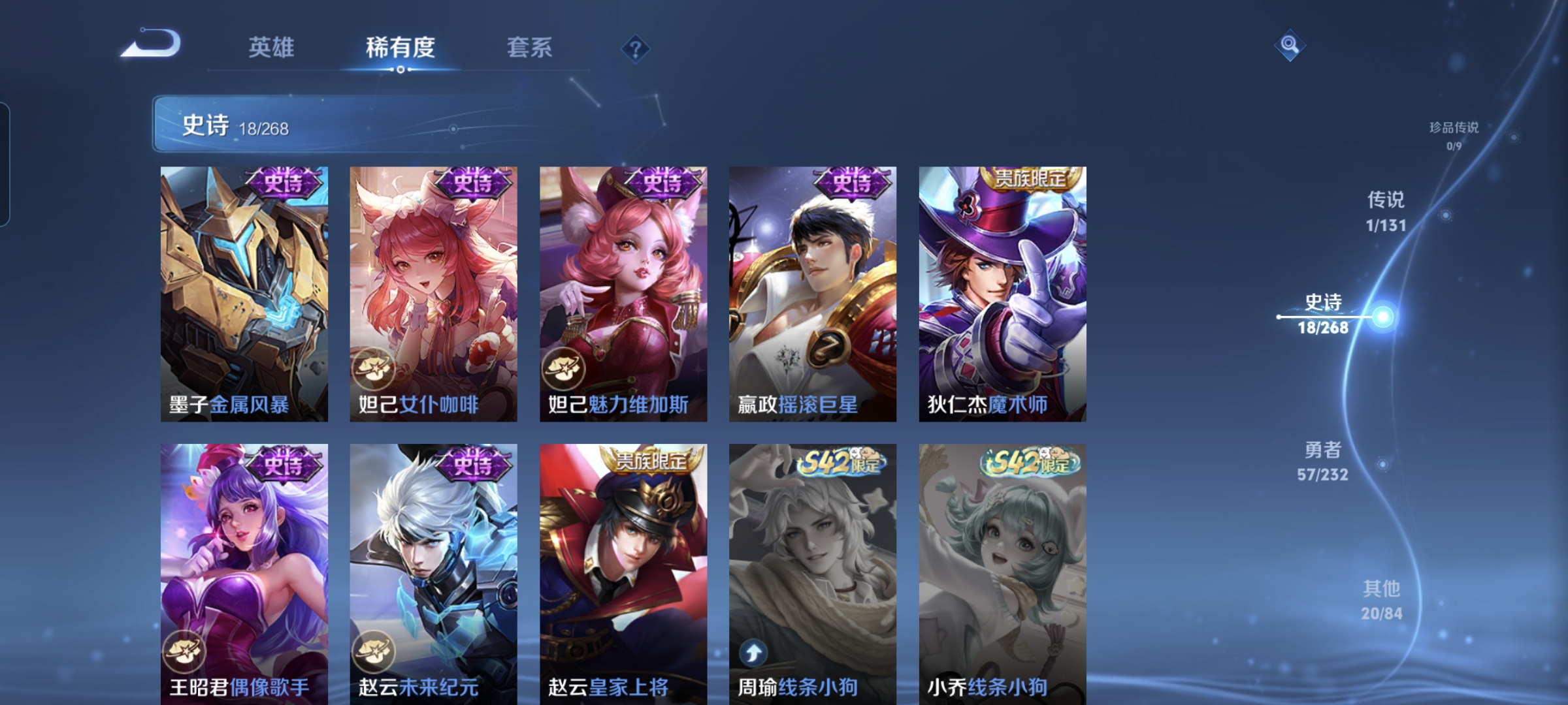 贵族等级:v8皮肤数:97传说品质1 英雄数:119