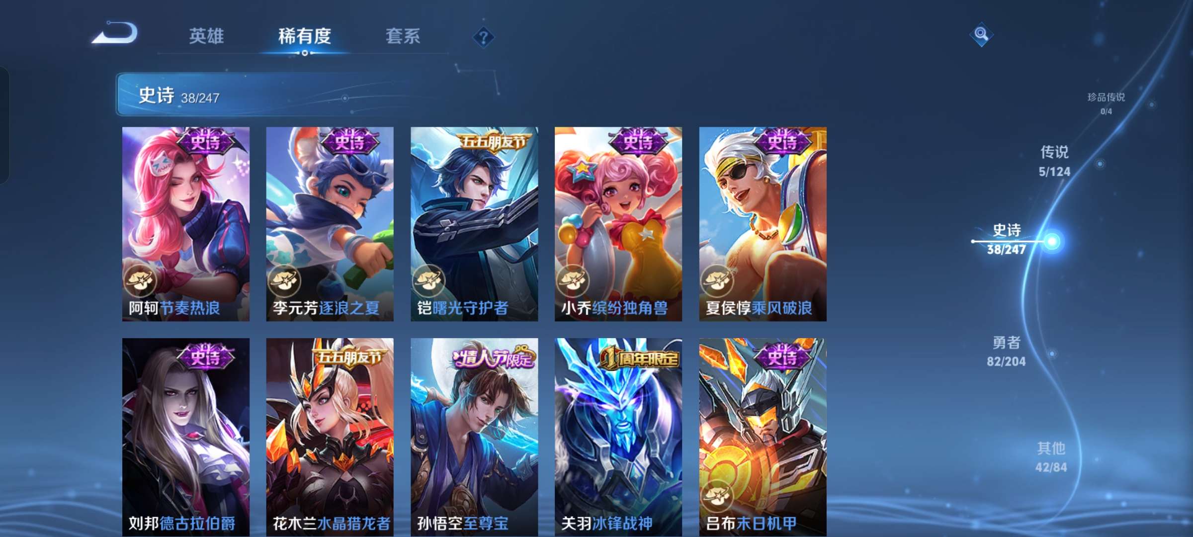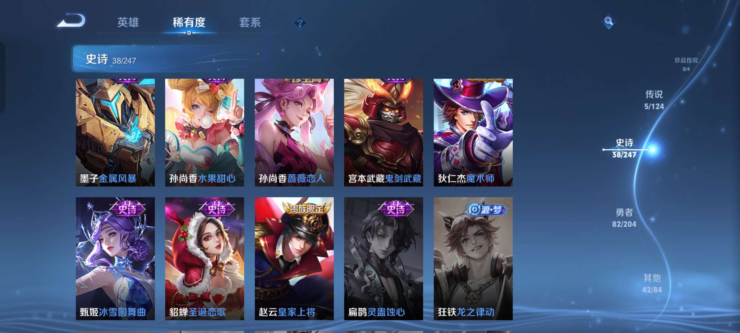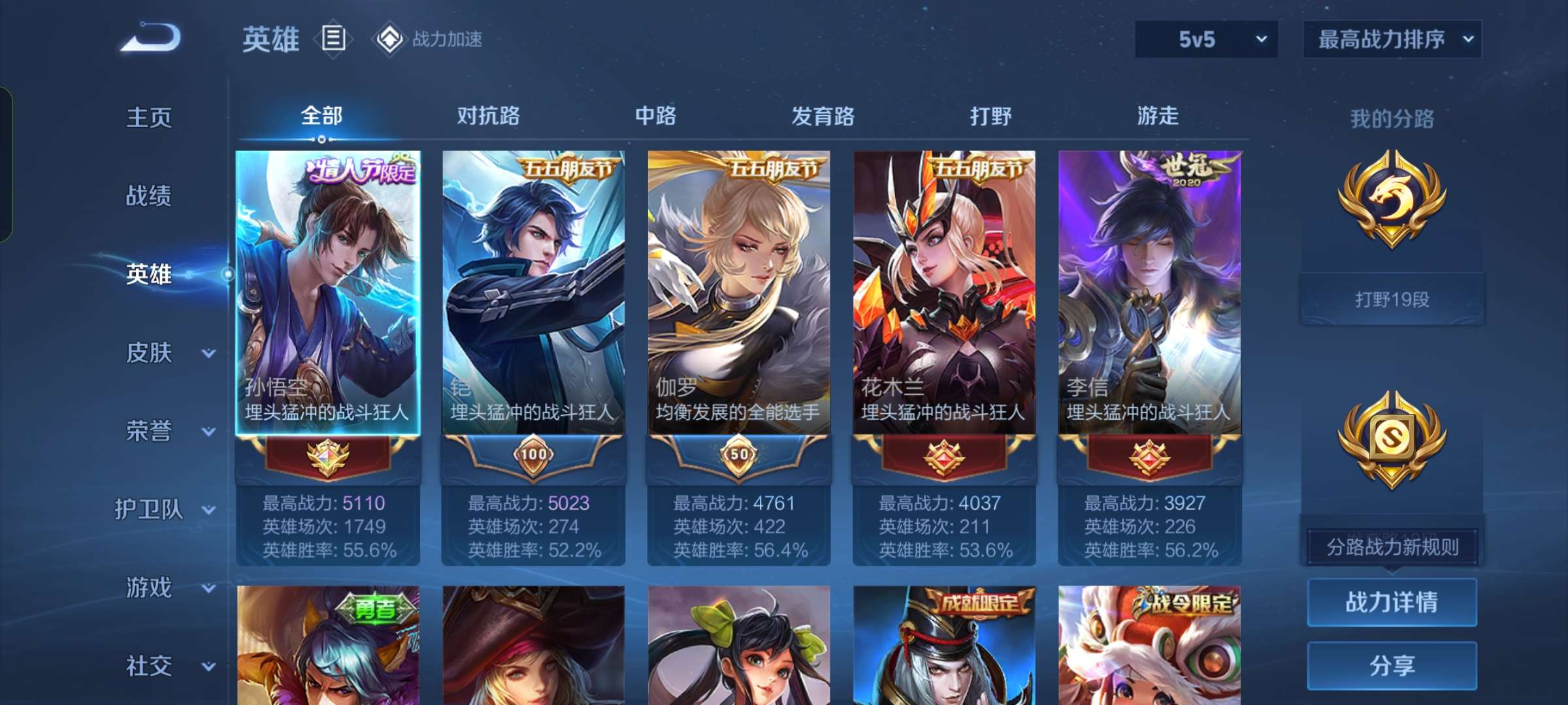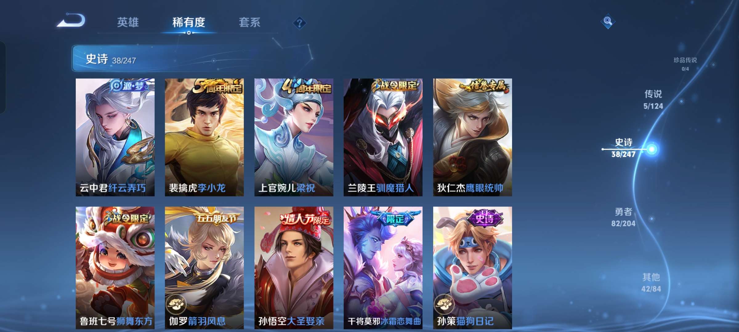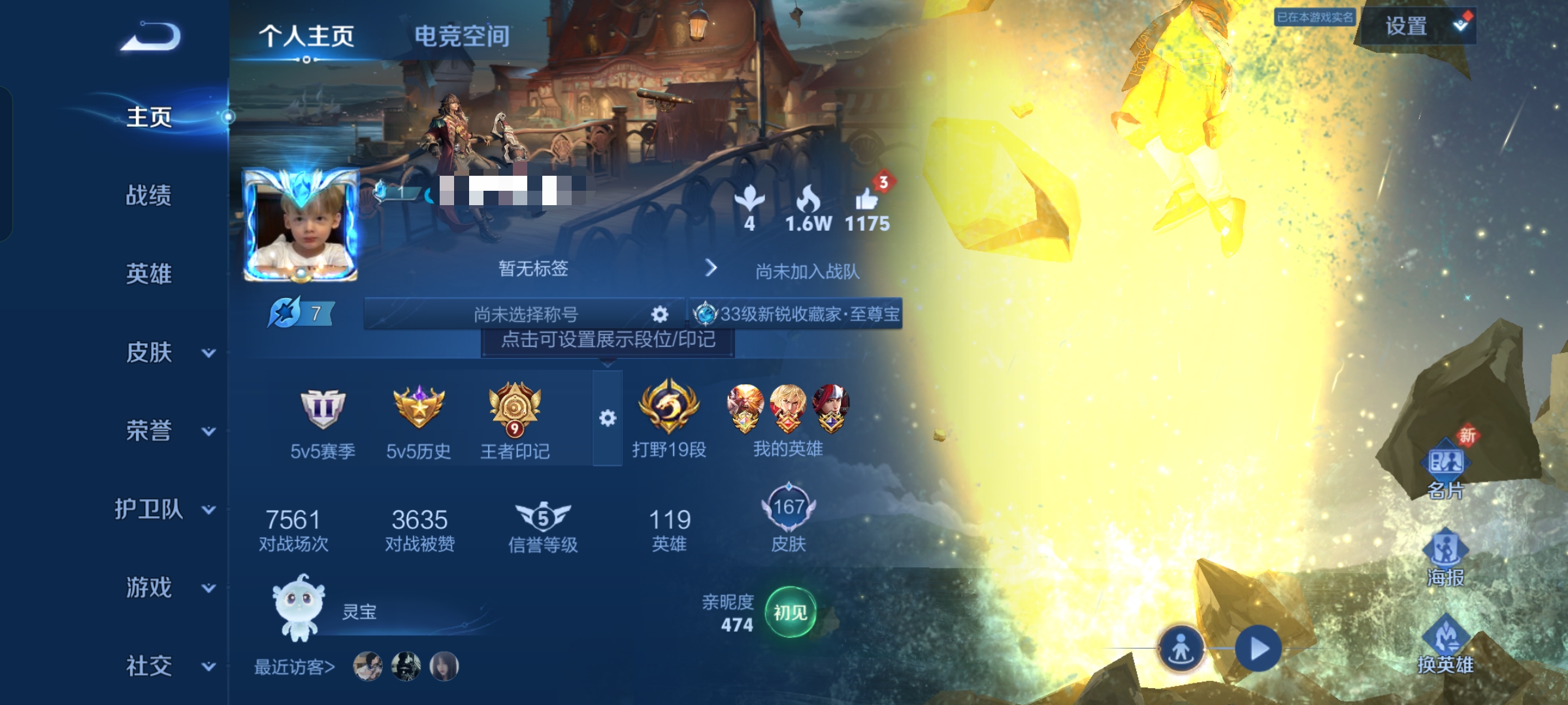 贵族等级:v7皮肤数:167情人节限定3 传说品质5 英雄数:119