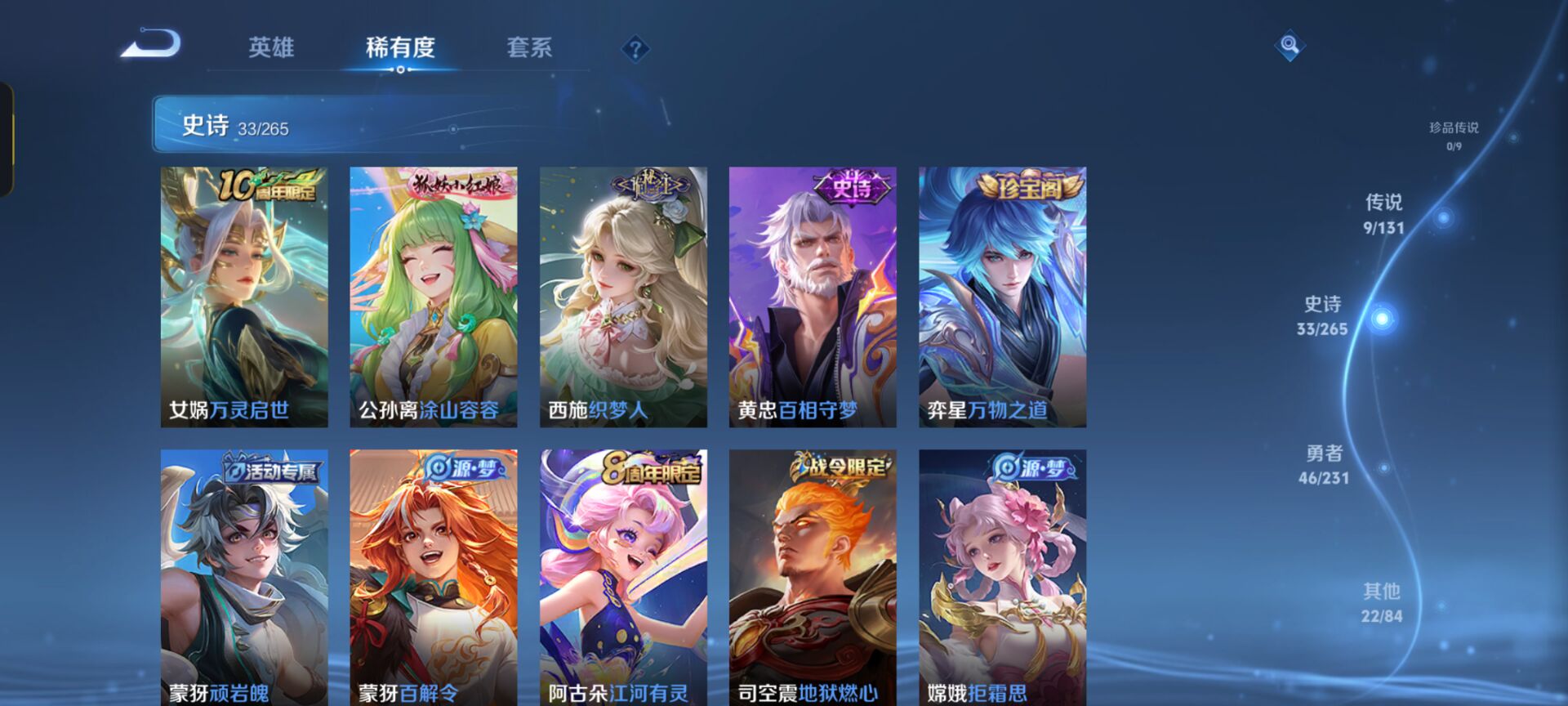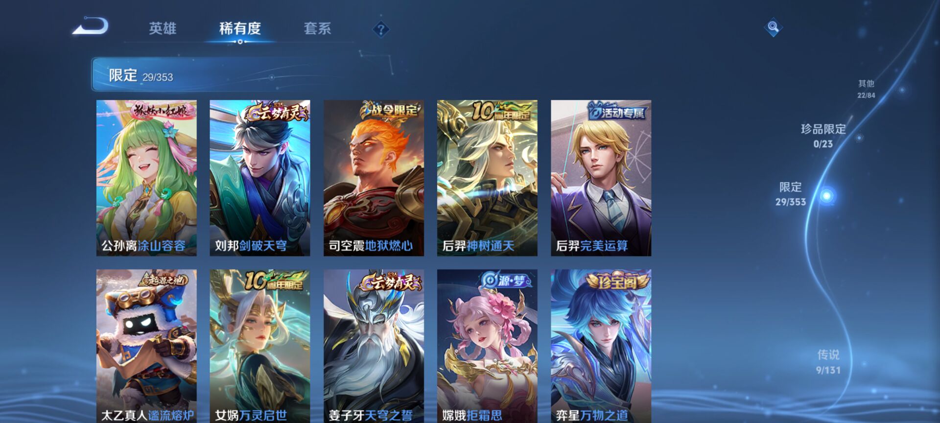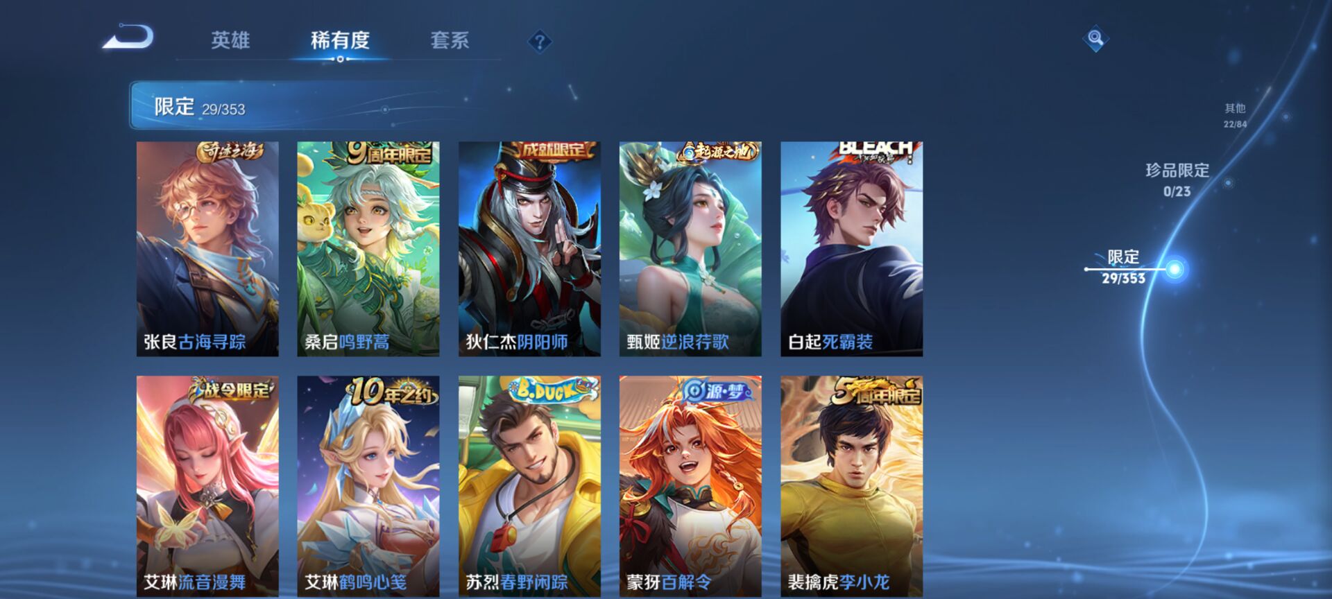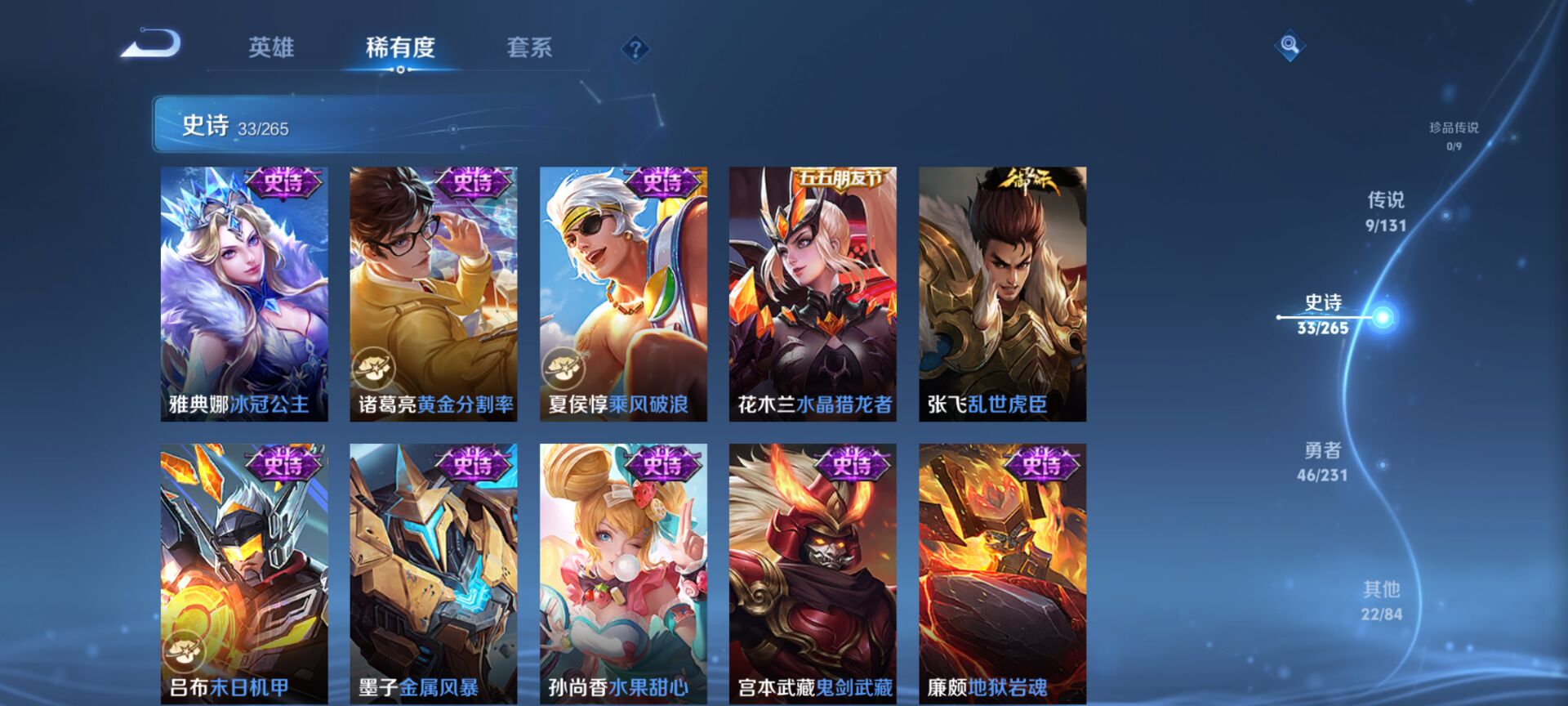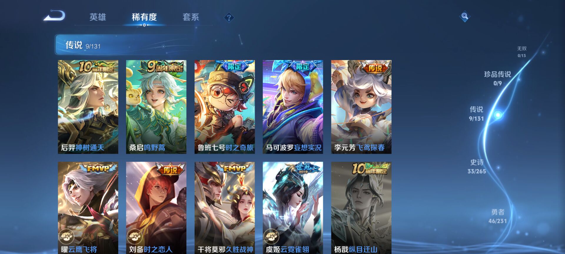 贵族等级:v5皮肤数:110传说品质9 英雄数:116