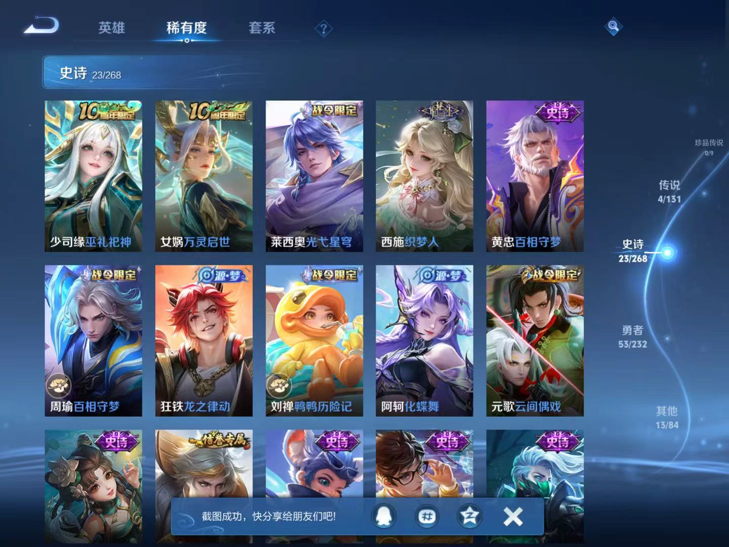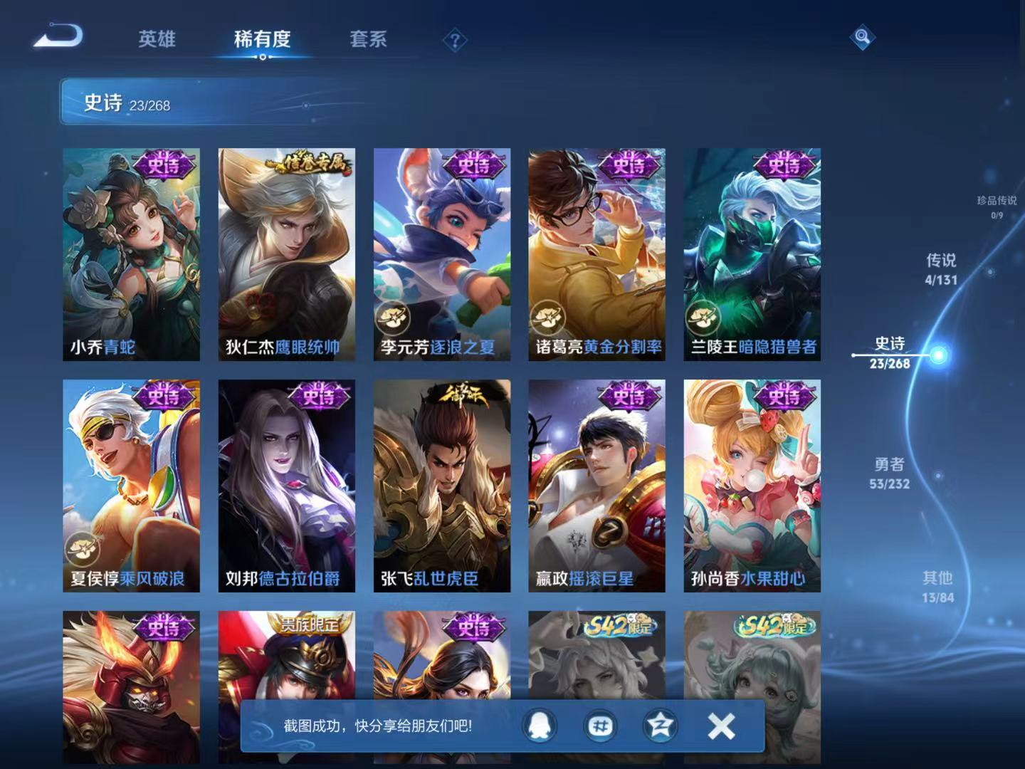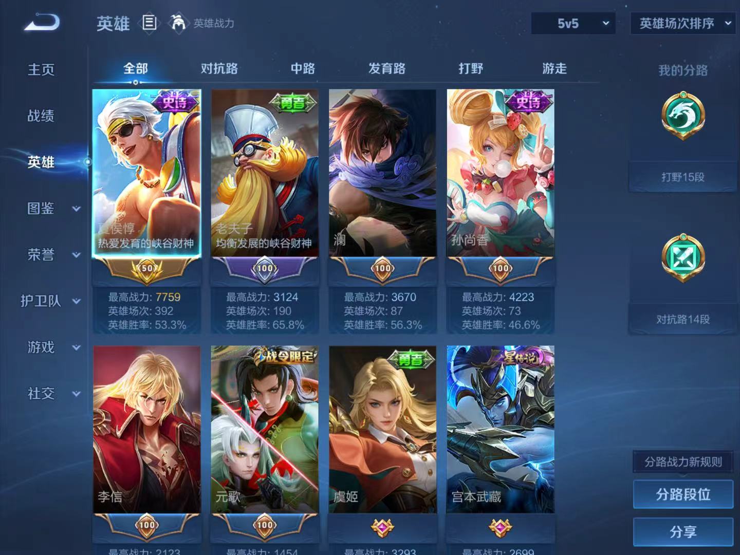 贵族等级:v5皮肤数:93传说品质4 英雄数:120