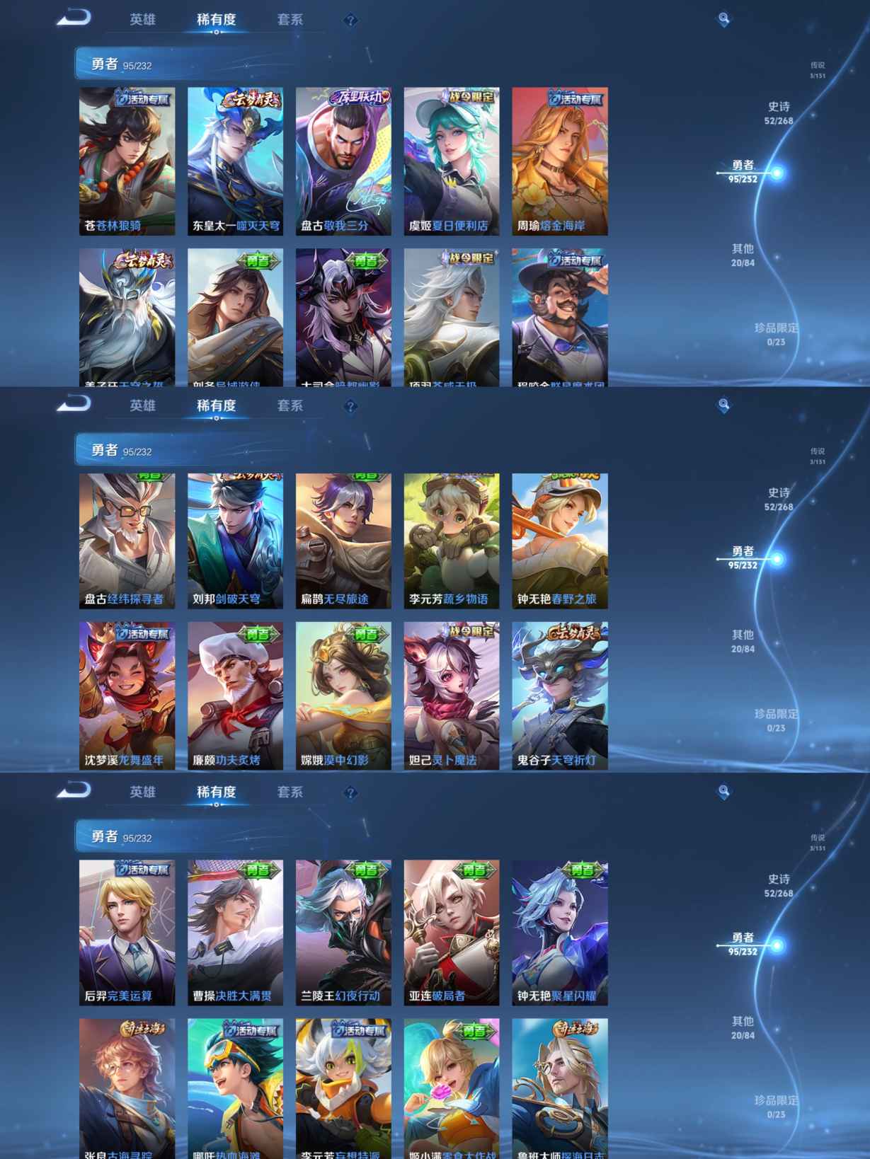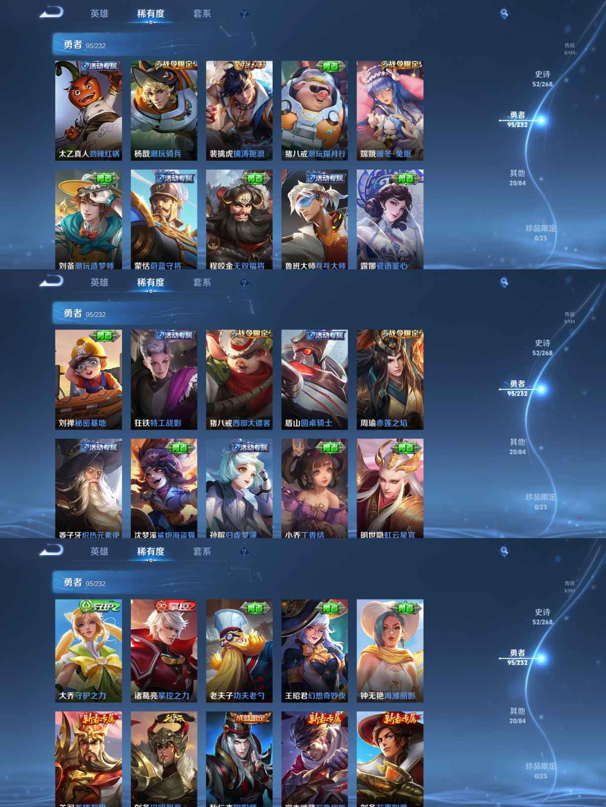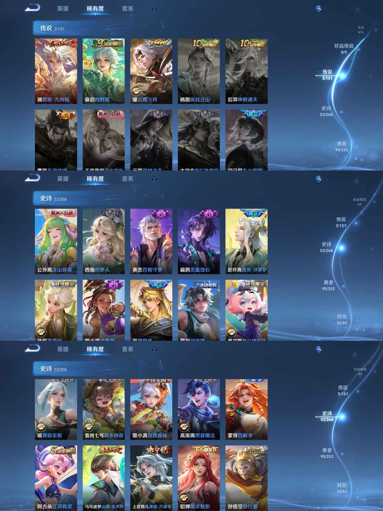 贵族等级:v6皮肤数:170传说品质3 生肖限定2 英雄数:128