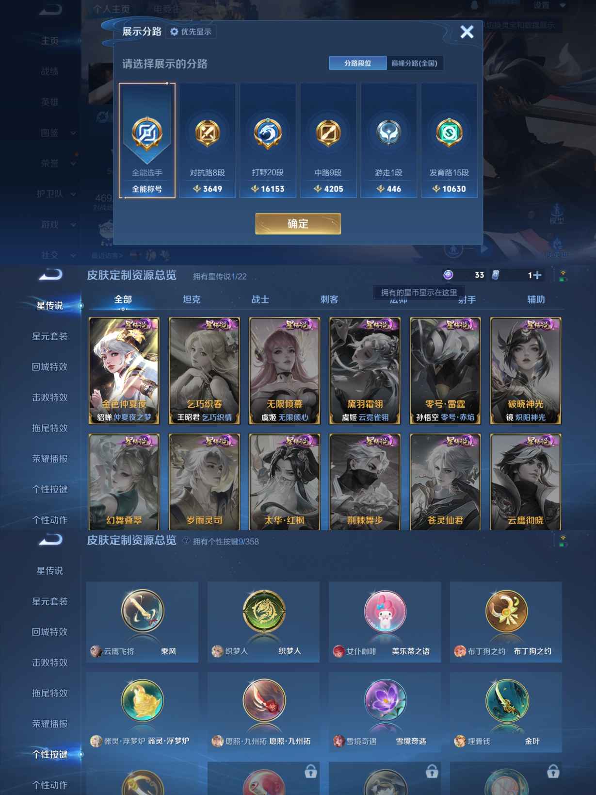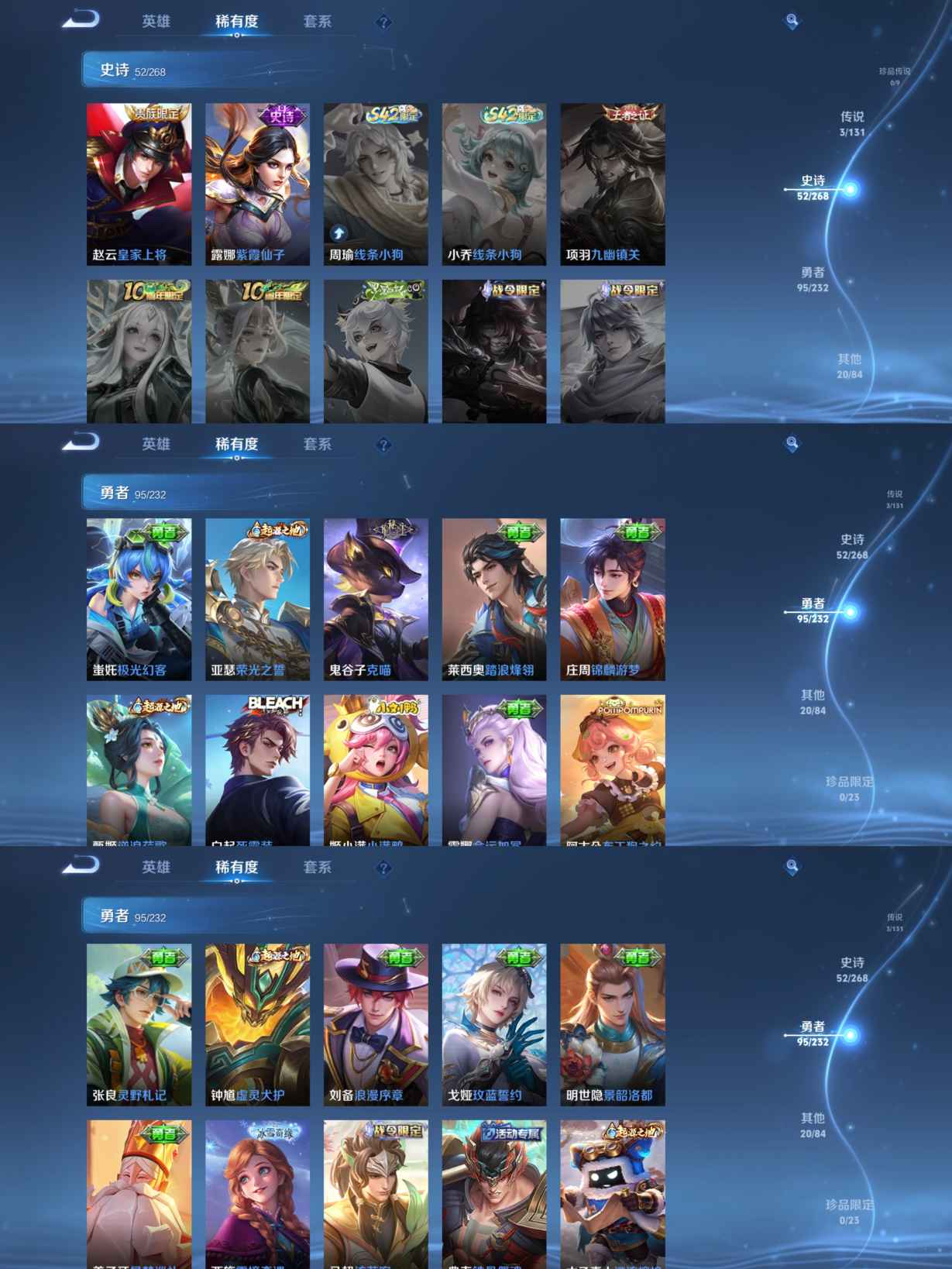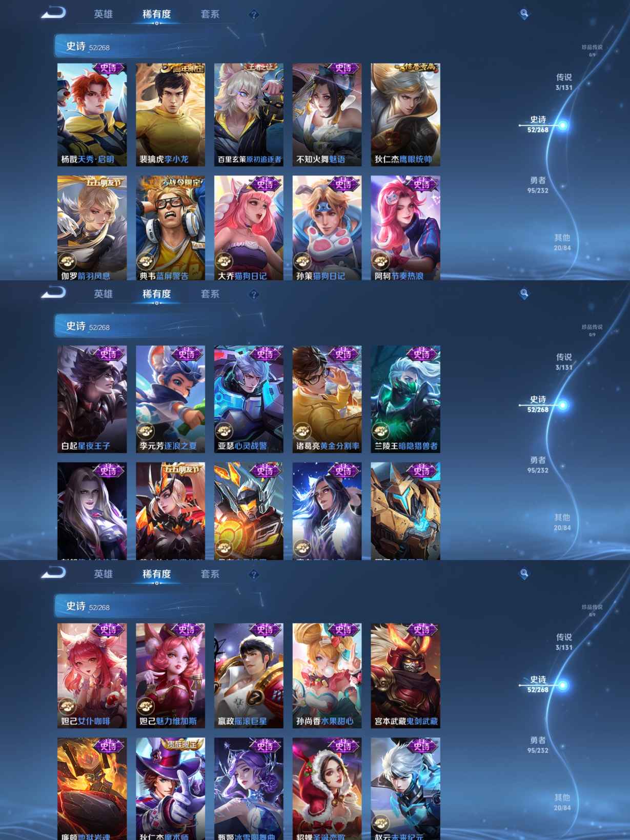 贵族等级:v6皮肤数:170传说品质3 生肖限定2 英雄数:128