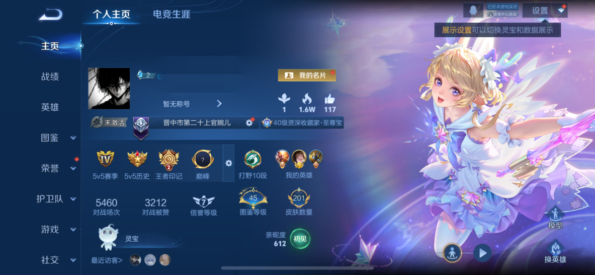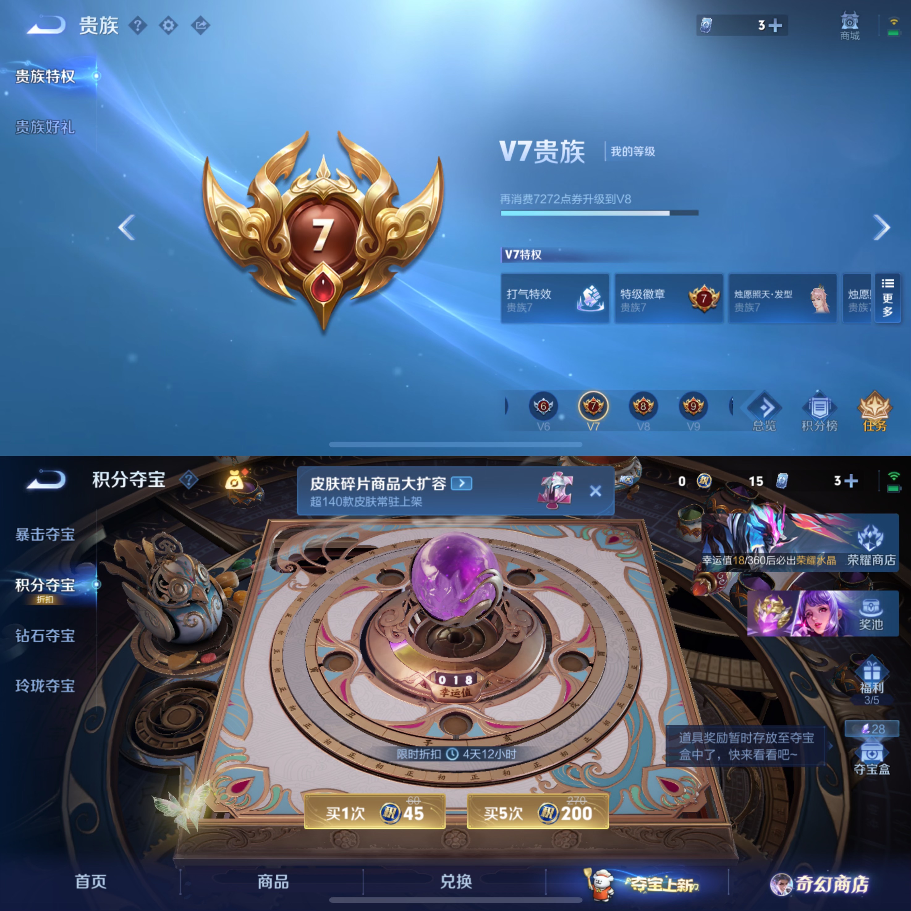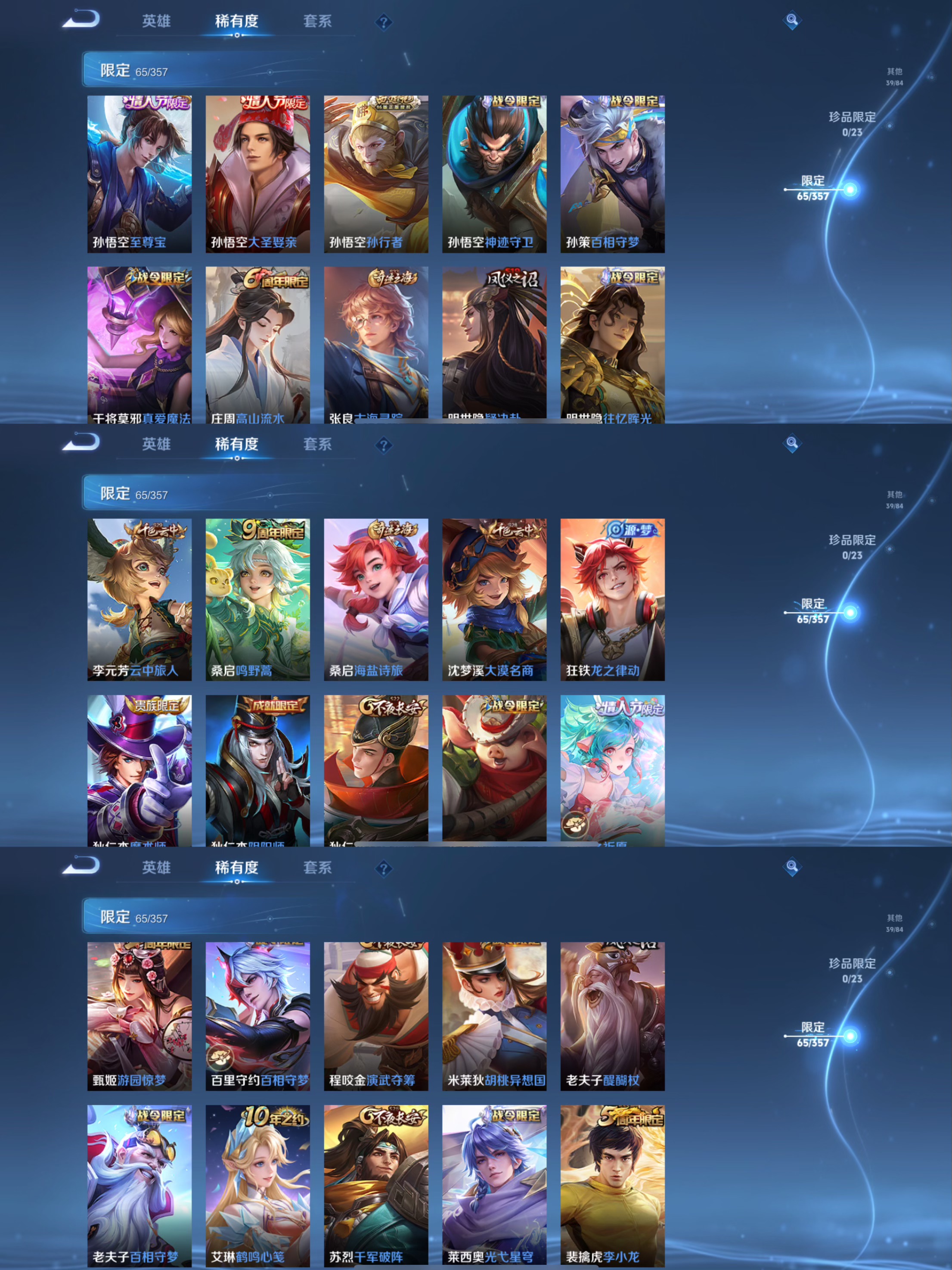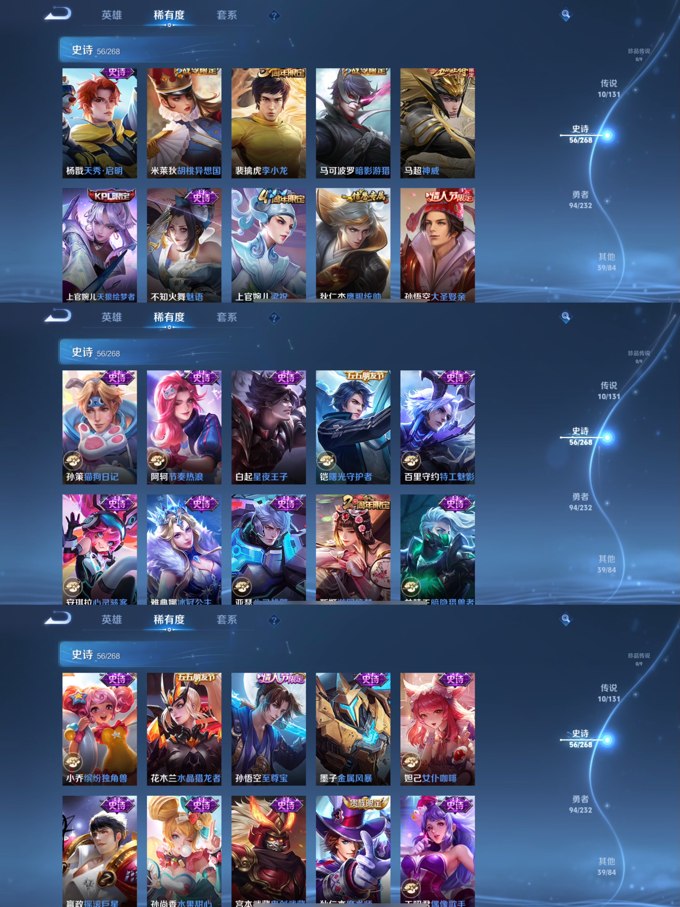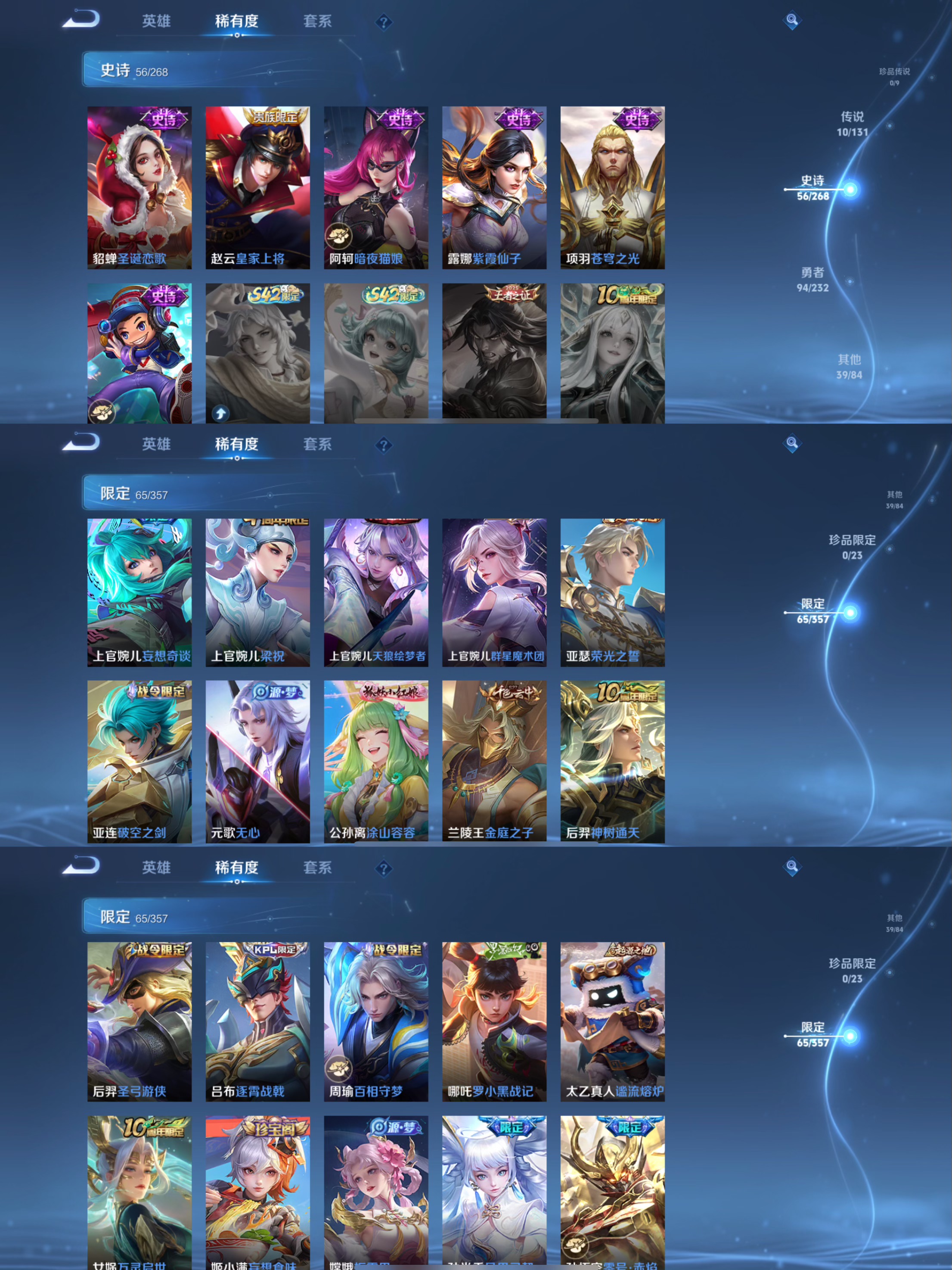 贵族等级:v7皮肤数:201传说品质10 情人节限定3 荣耀典藏2 英雄数:127