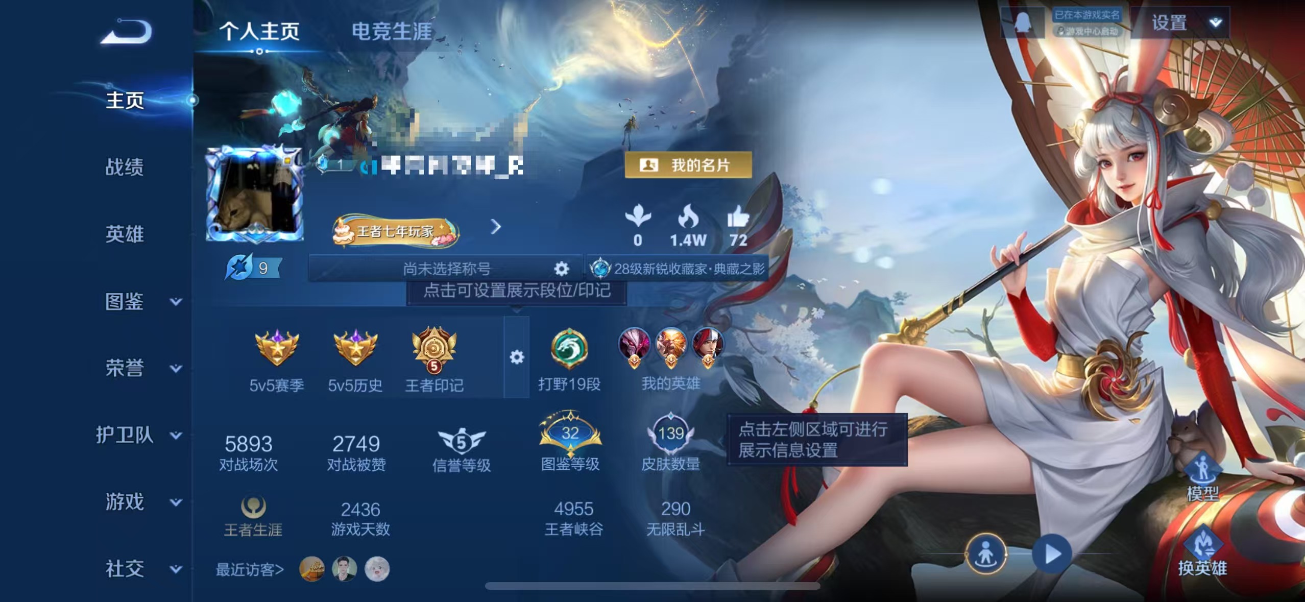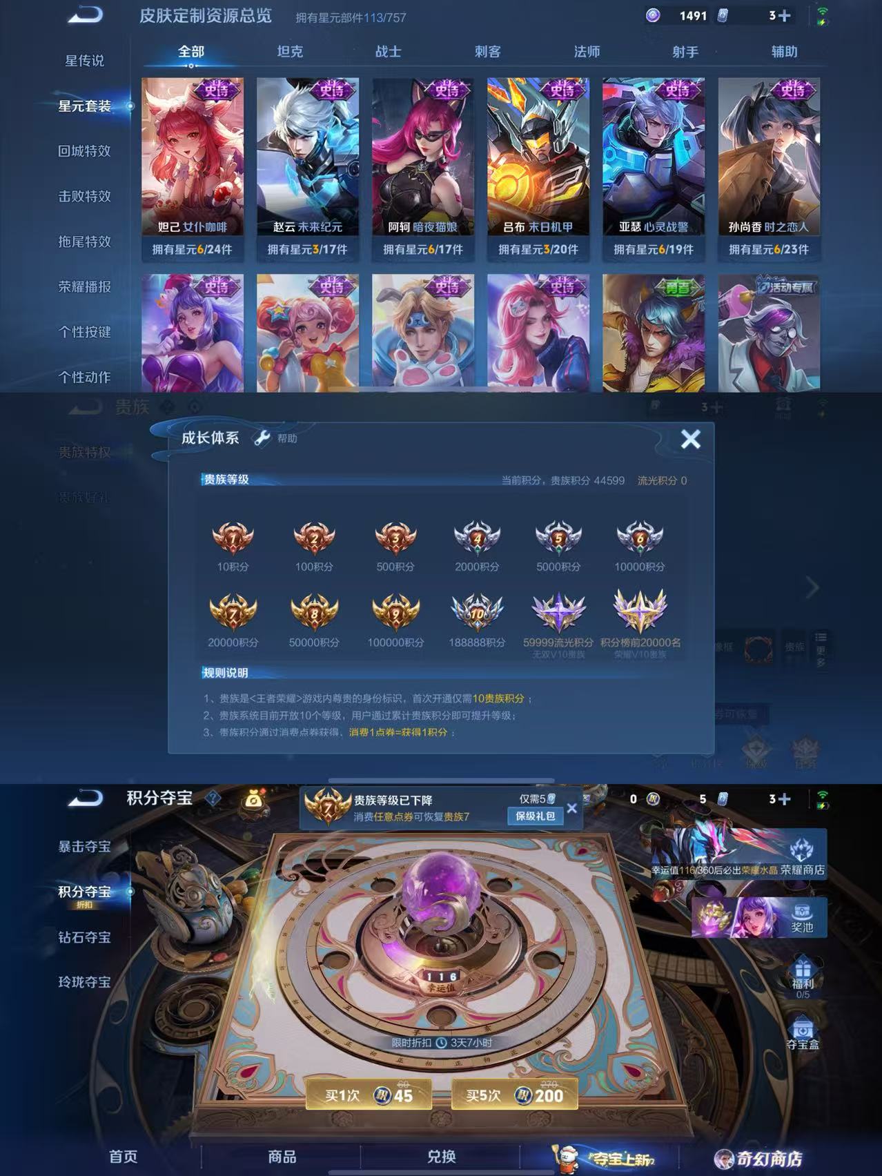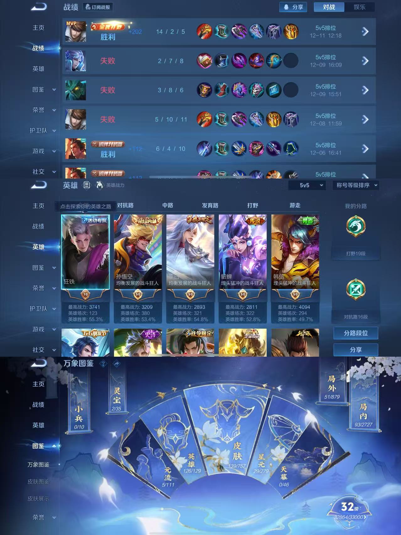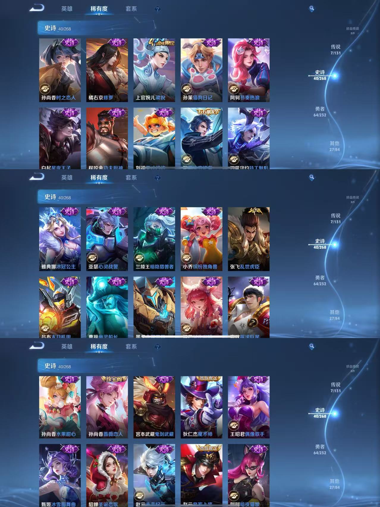 贵族等级:v7皮肤数:140传说品质7 生肖限定3 荣耀典藏1 英雄数:126