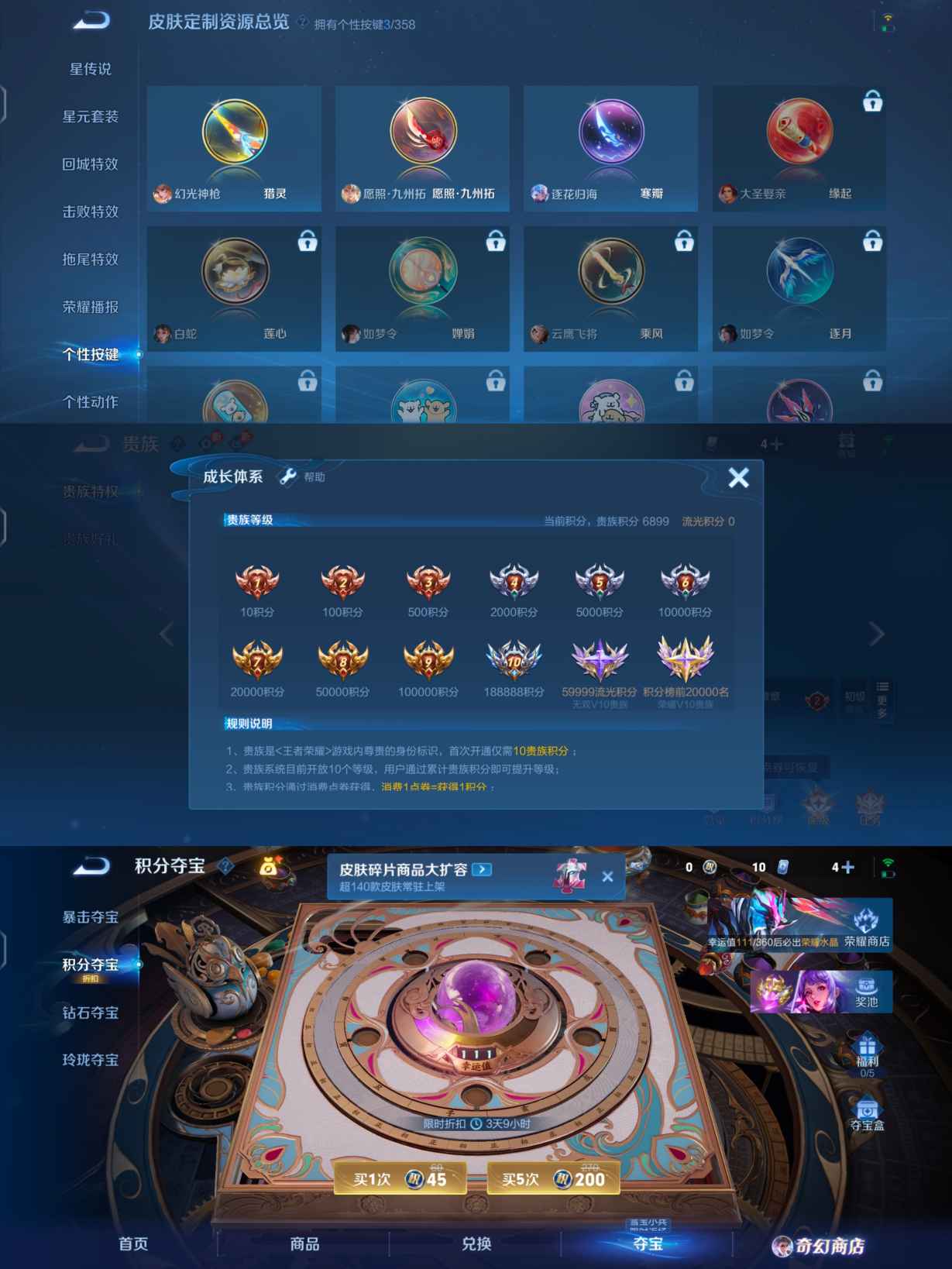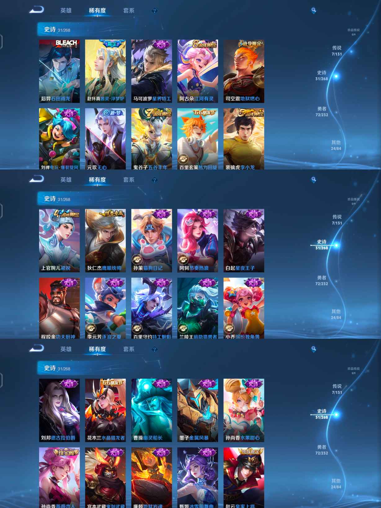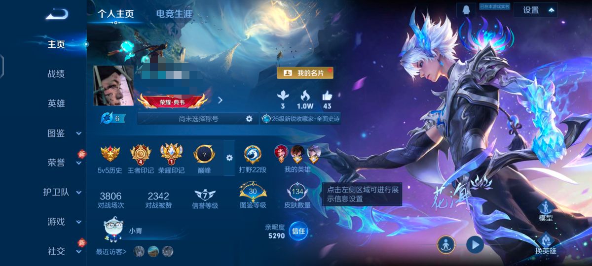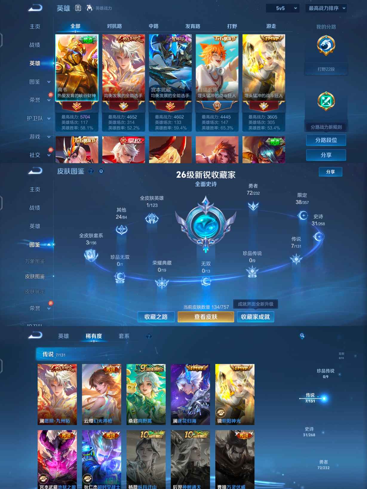 贵族等级:v5皮肤数:134传说品质7 生肖限定1 英雄数:125