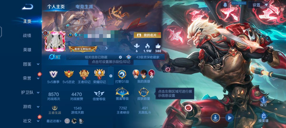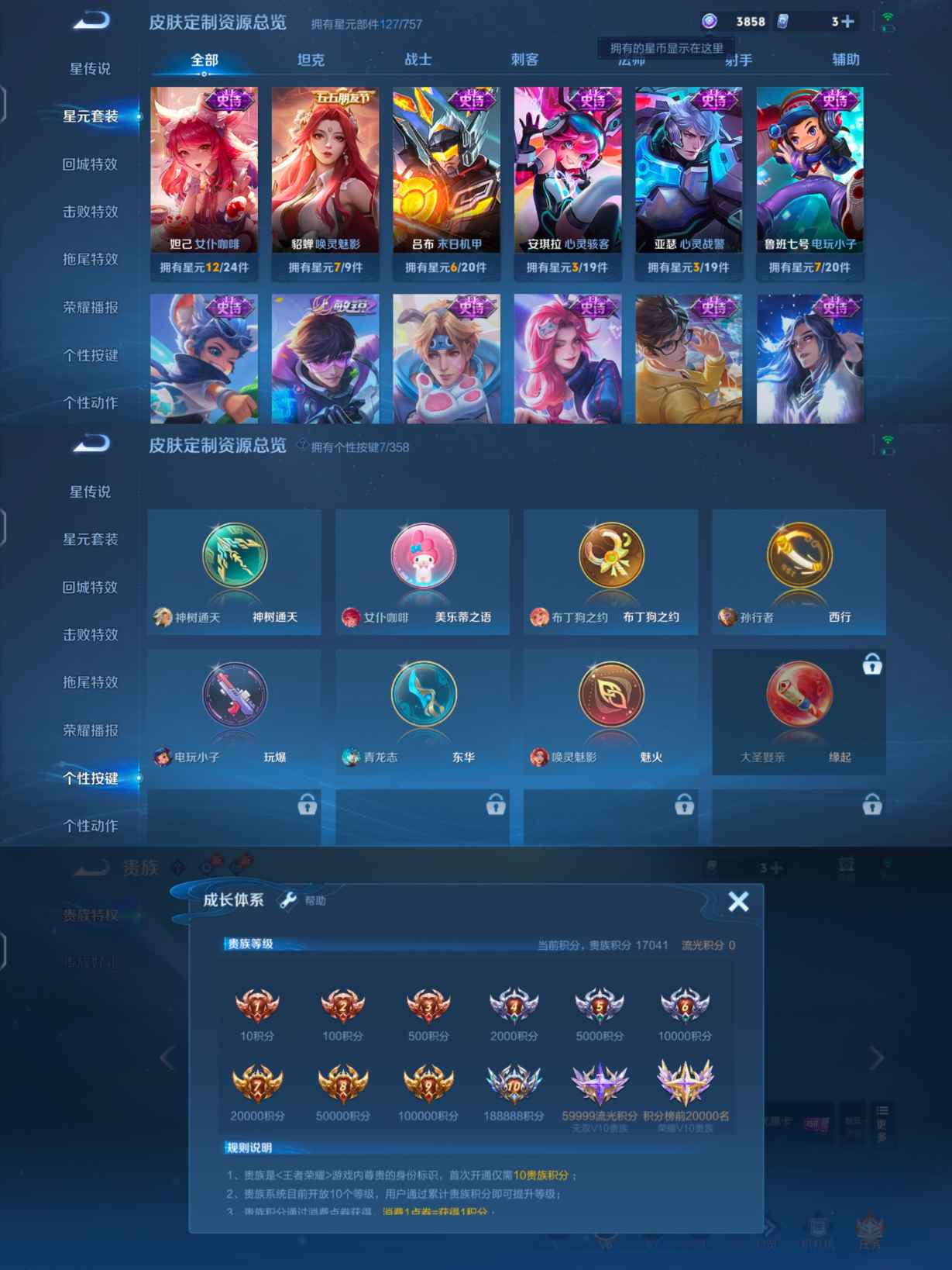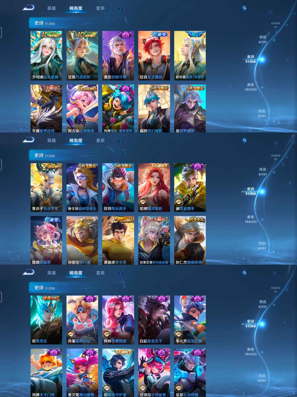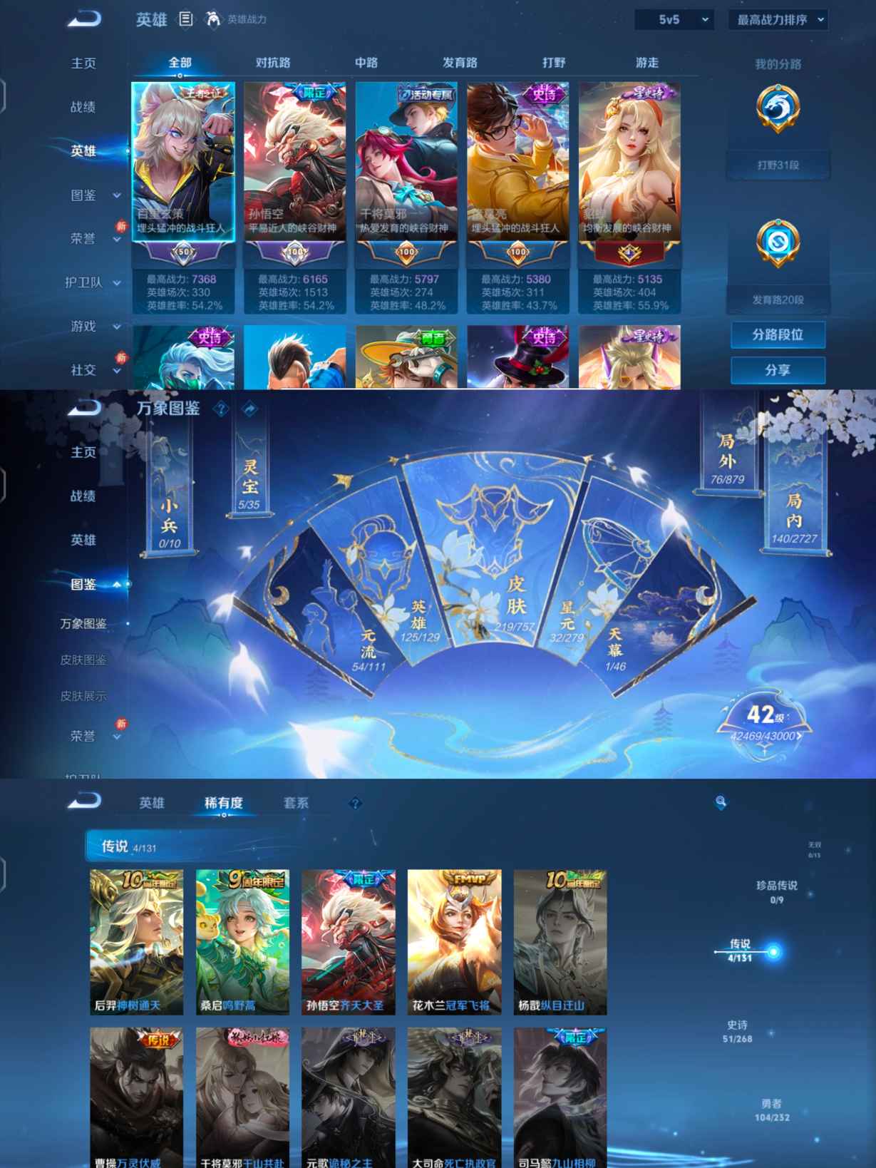 贵族等级:v6皮肤数:219传说品质4 生肖限定1 英雄数:125