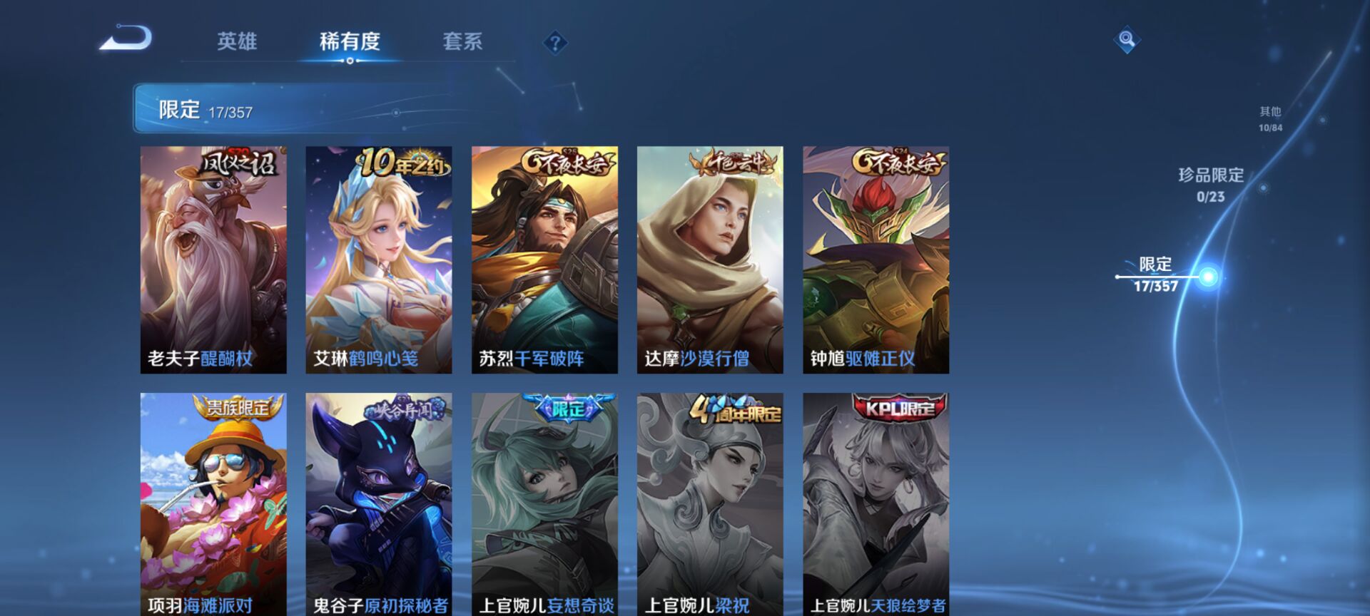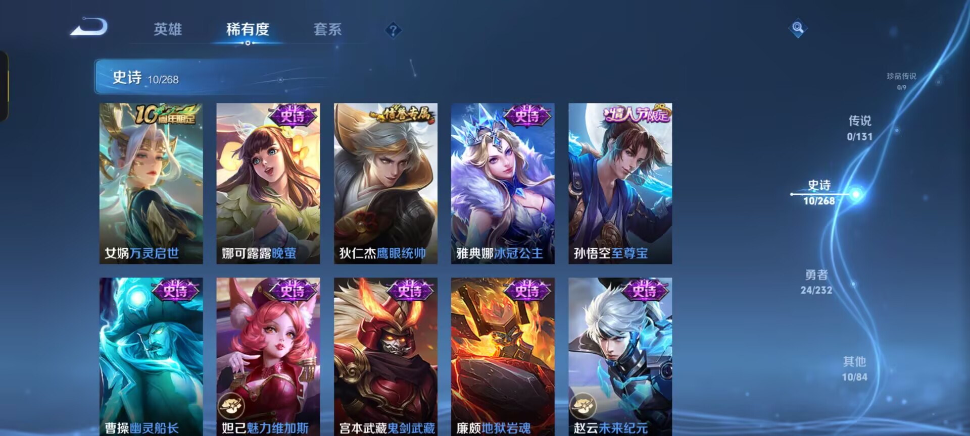 贵族等级:v4皮肤数:46情人节限定1 英雄数:83