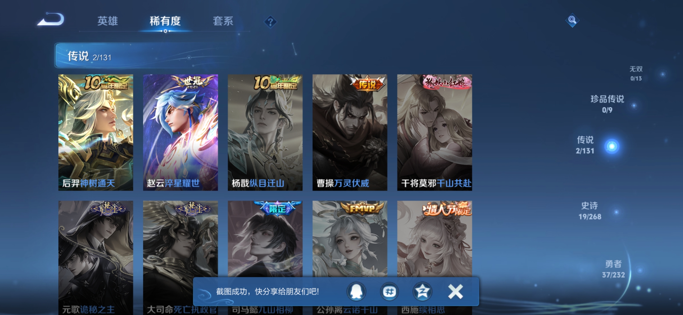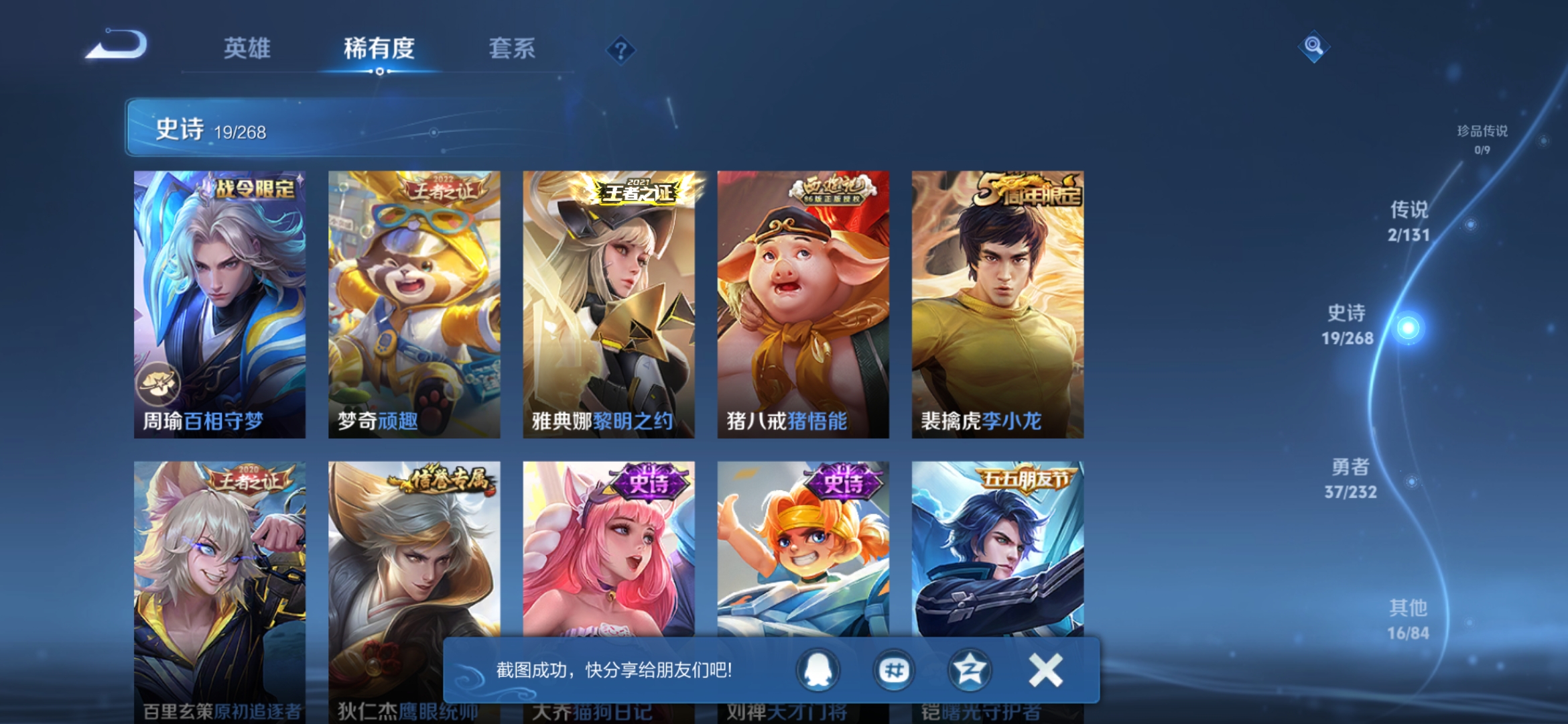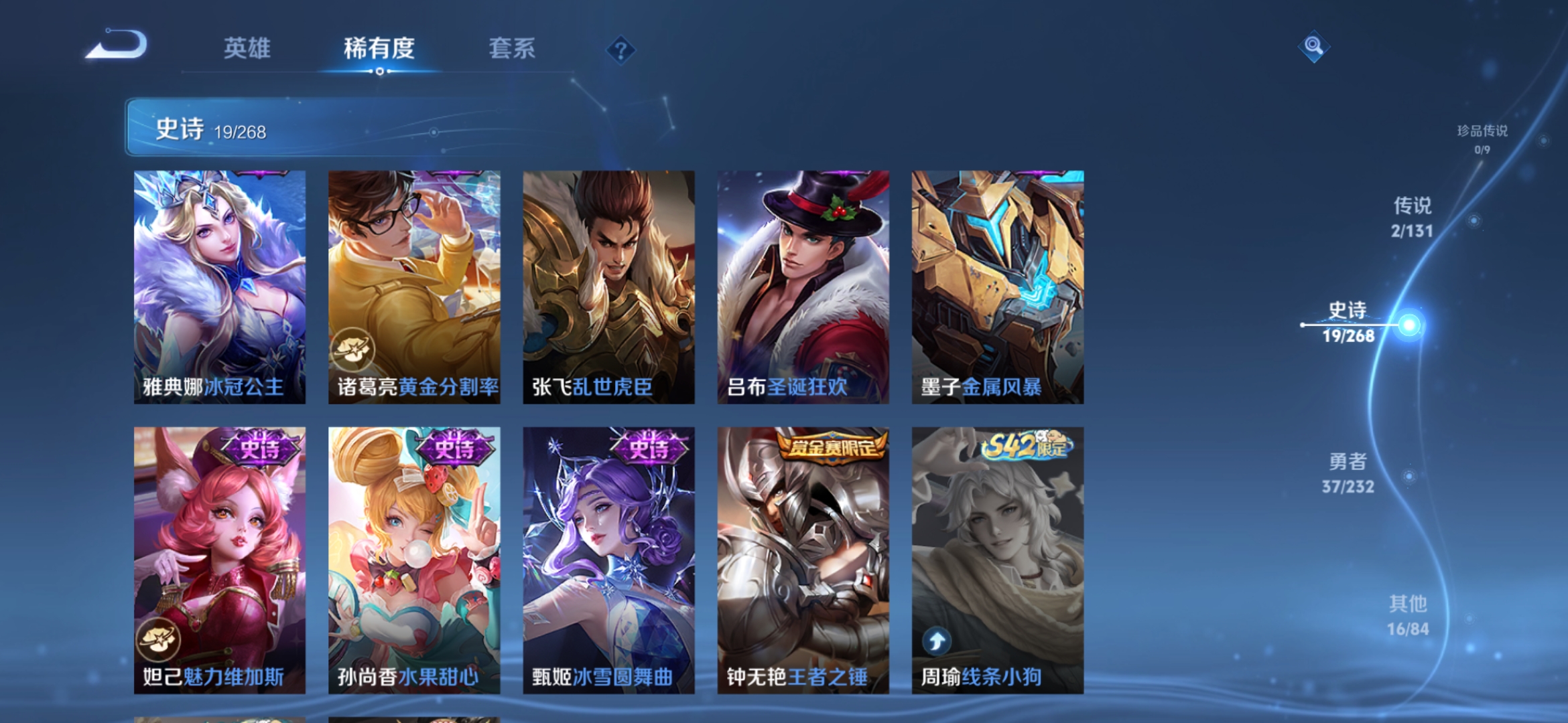 贵族等级:v4皮肤数:74传说品质2 英雄数:96