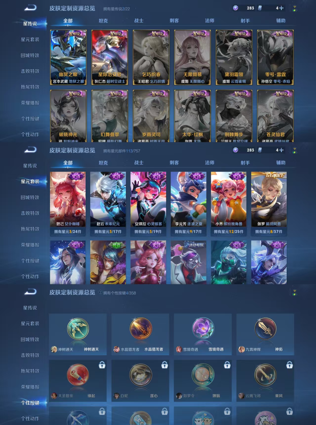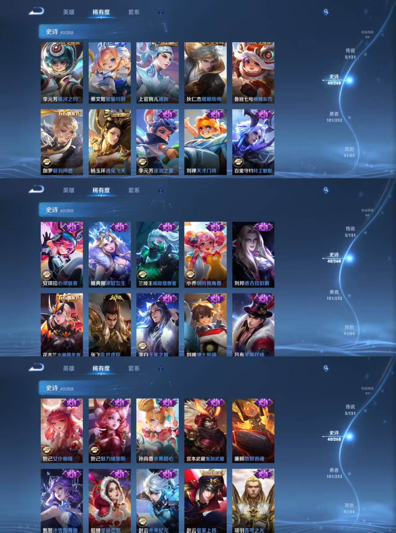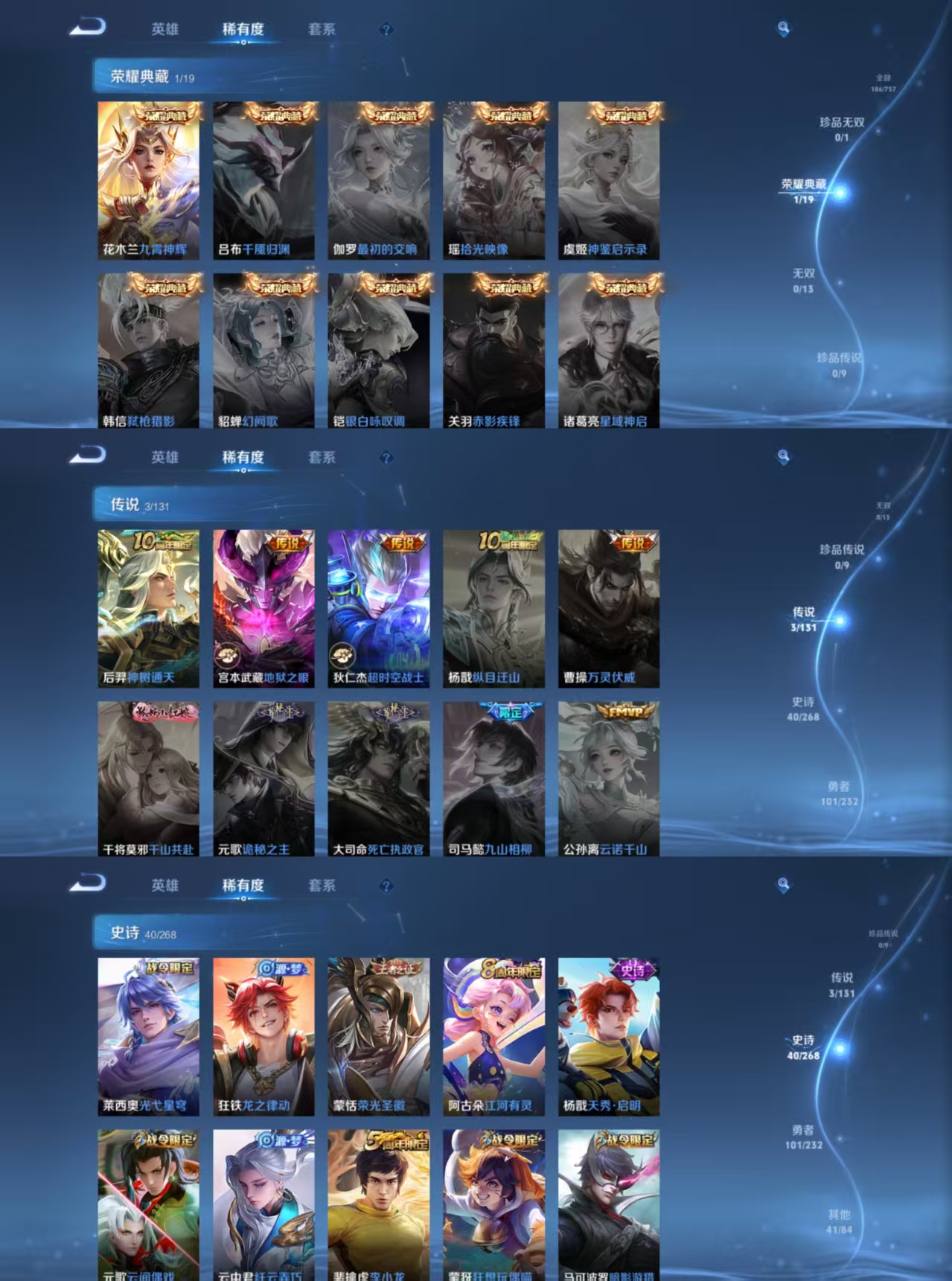 贵族等级:v5皮肤数:186传说品质3 生肖限定1 荣耀典藏1 英雄数:128