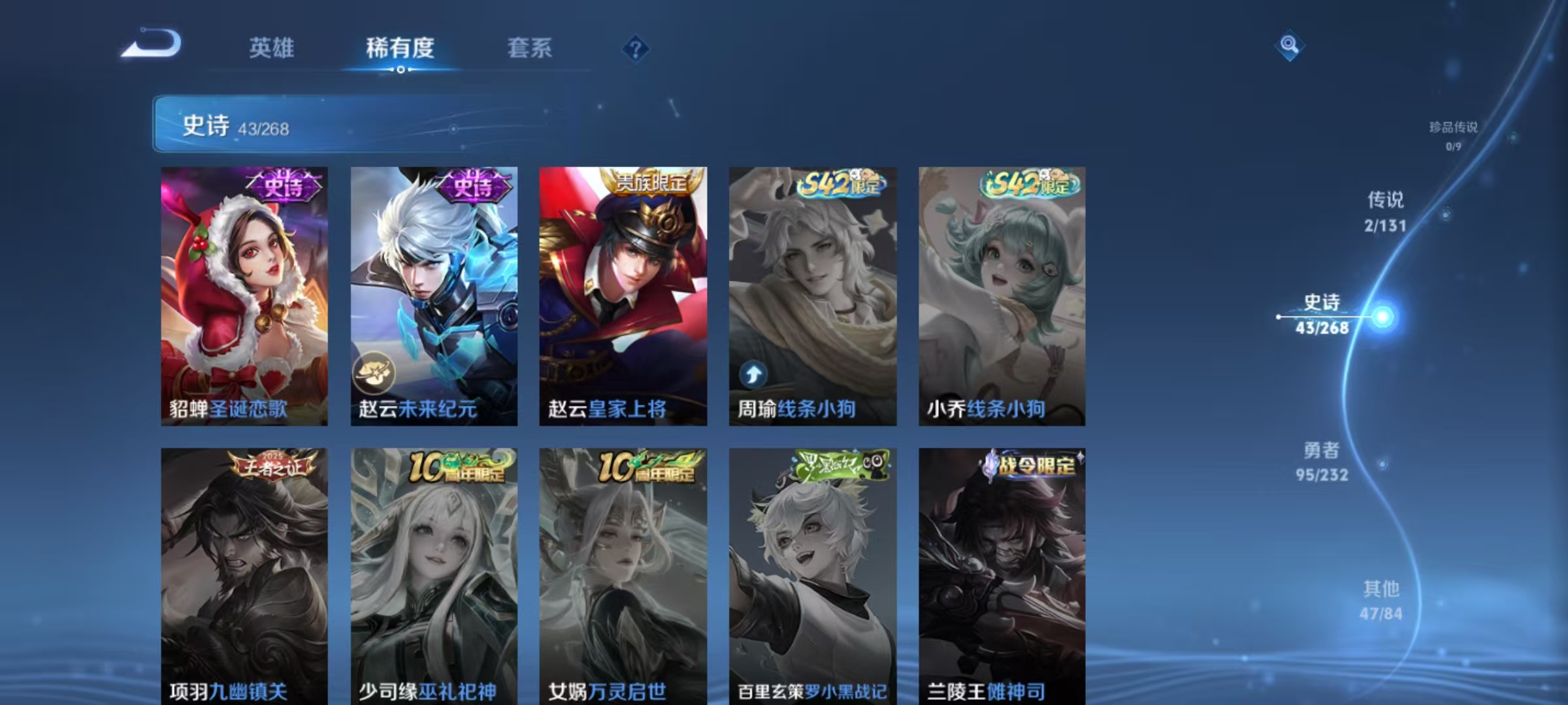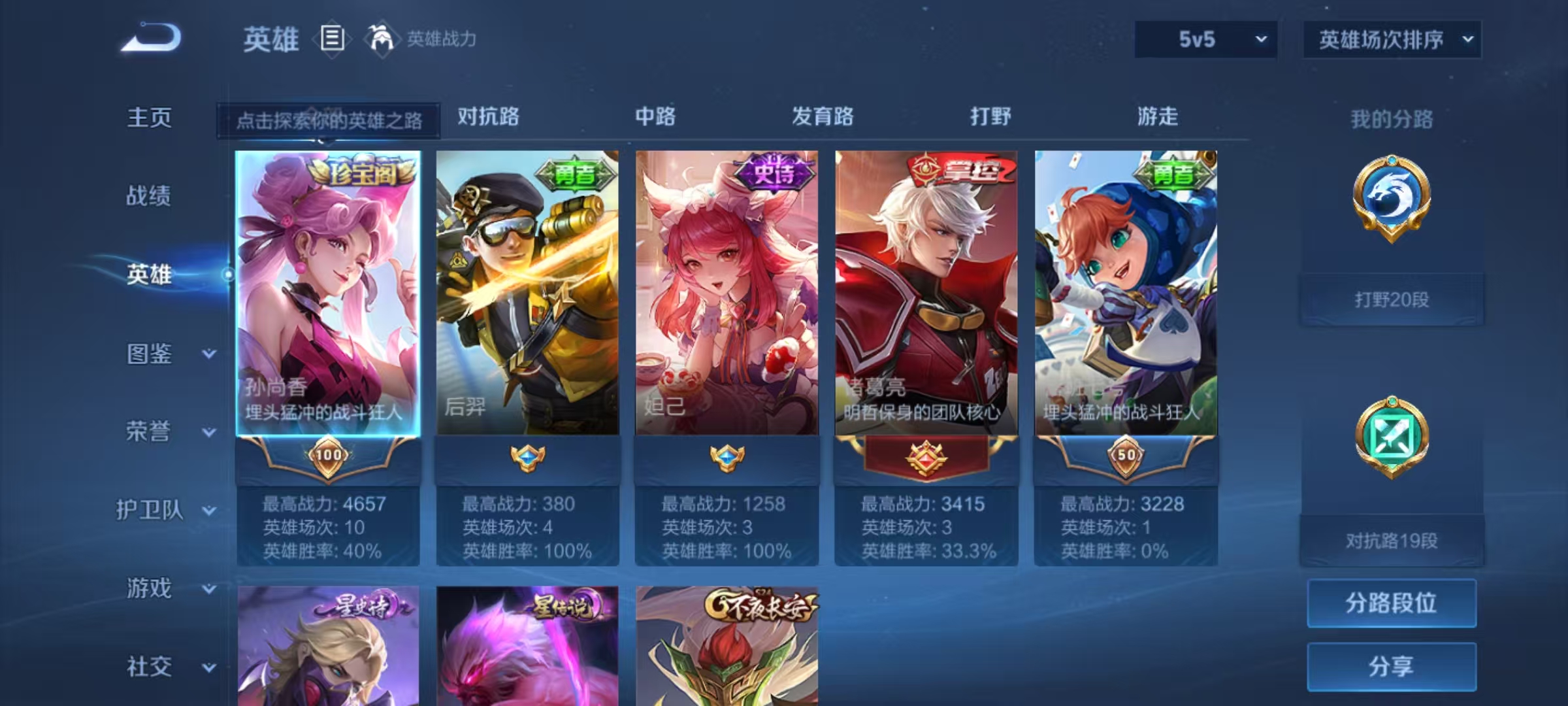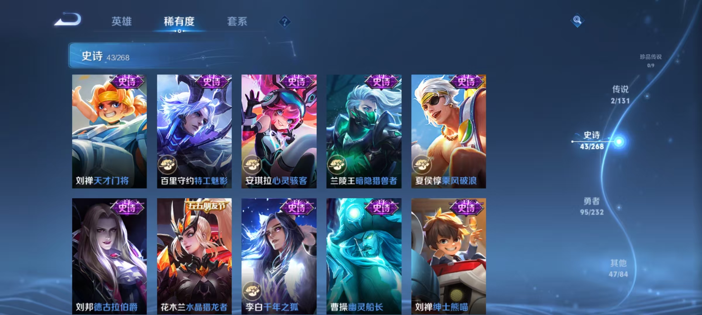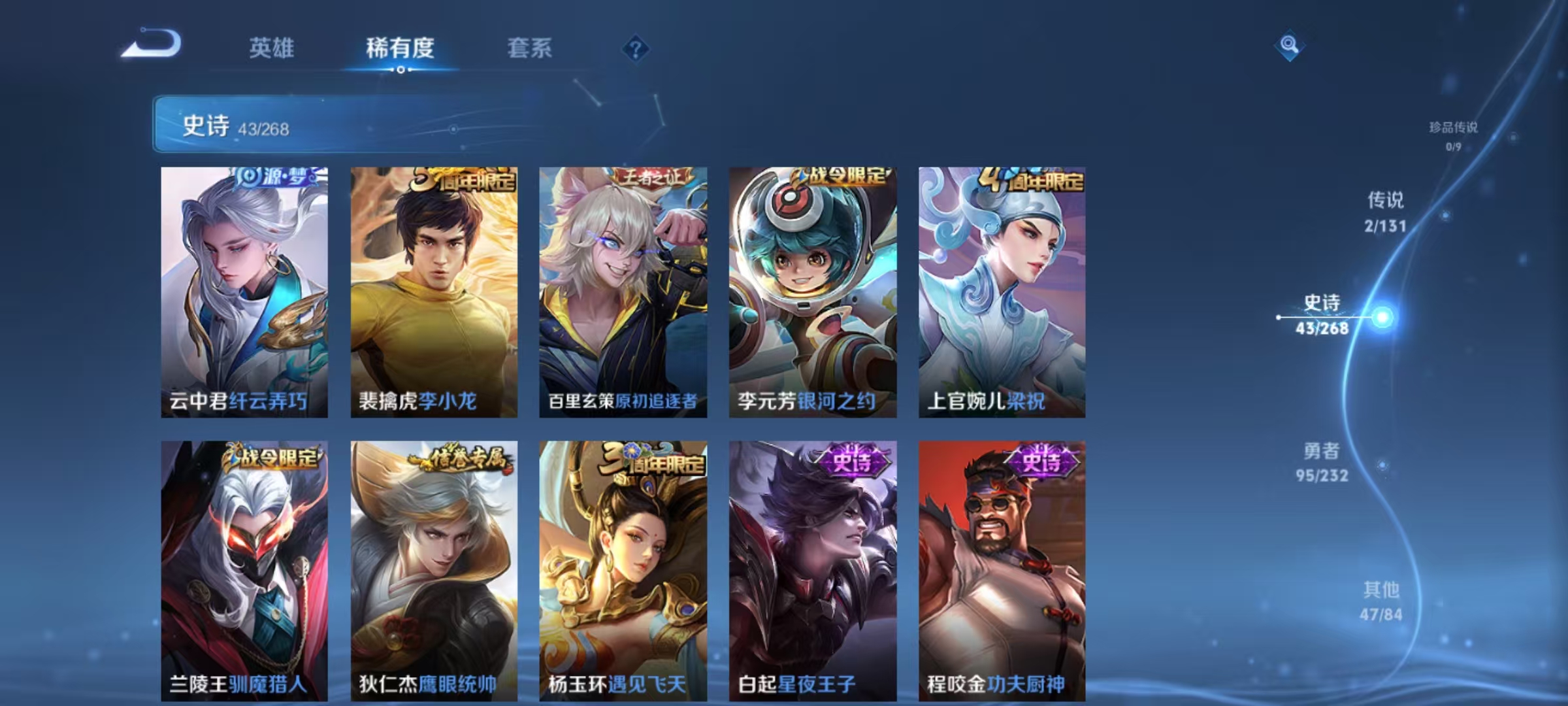 贵族等级:v5皮肤数:189传说品质2 英雄数:127