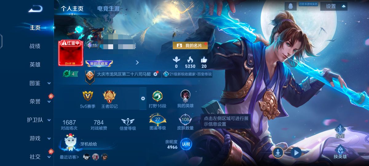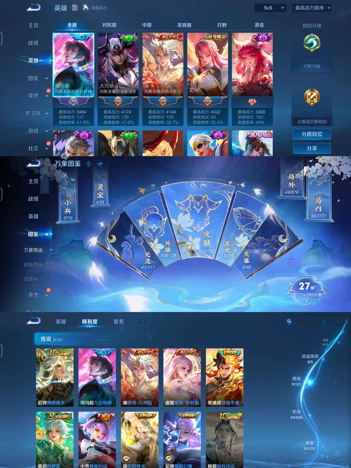 贵族等级:v6皮肤数:108传说品质9 生肖限定2 情人节限定1 英雄数:108