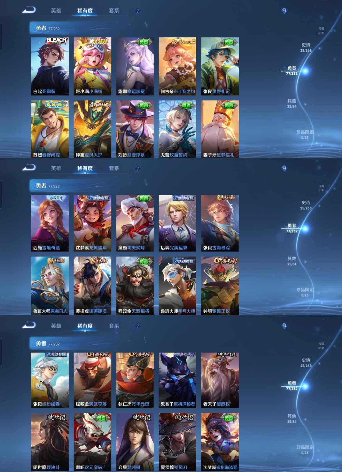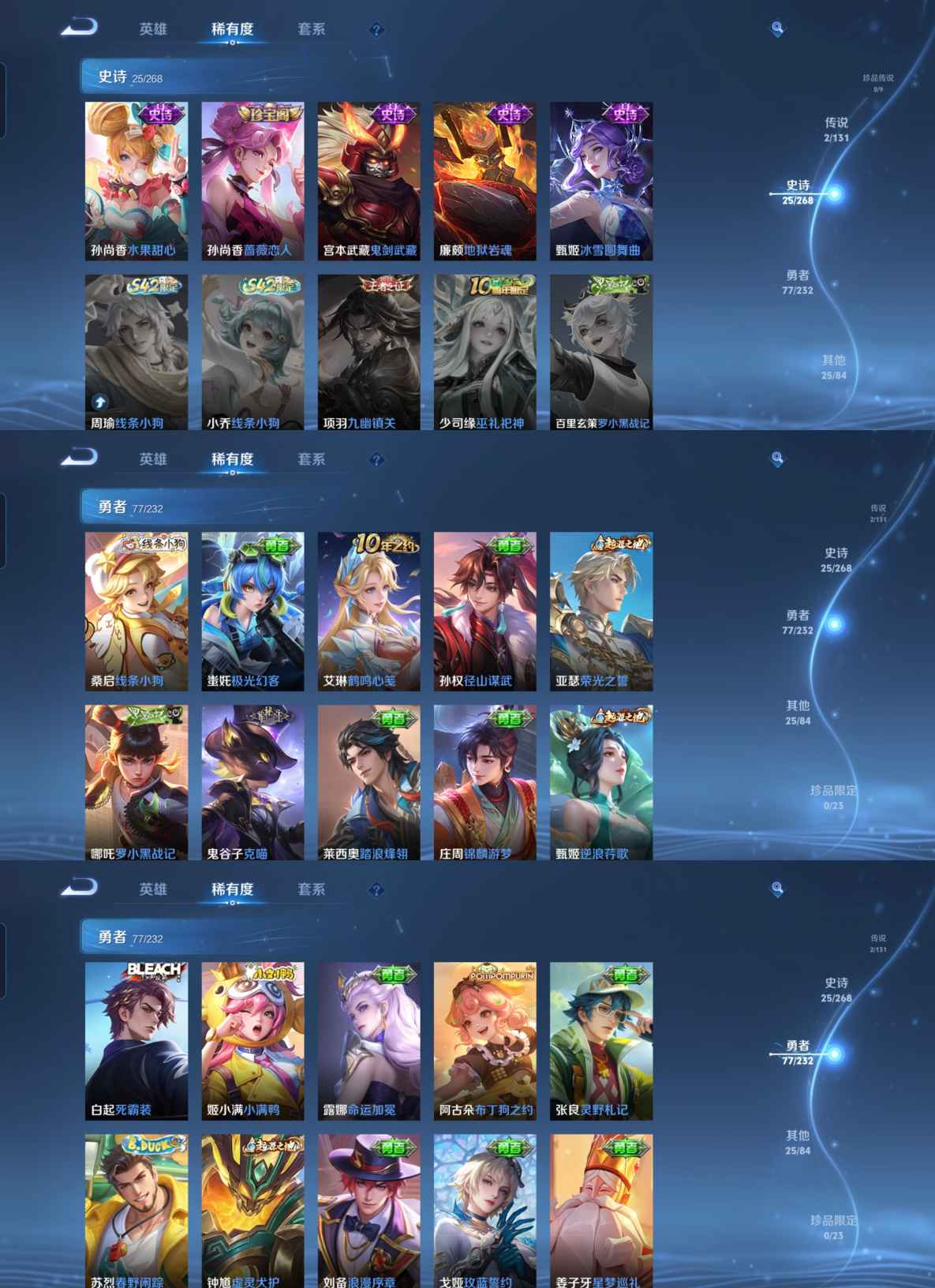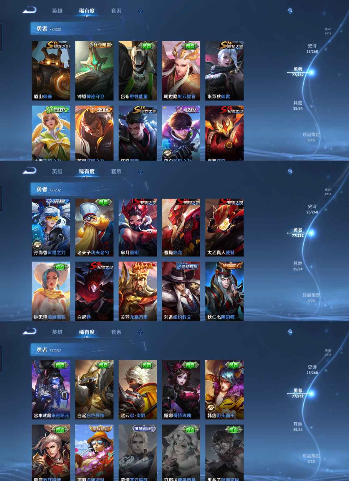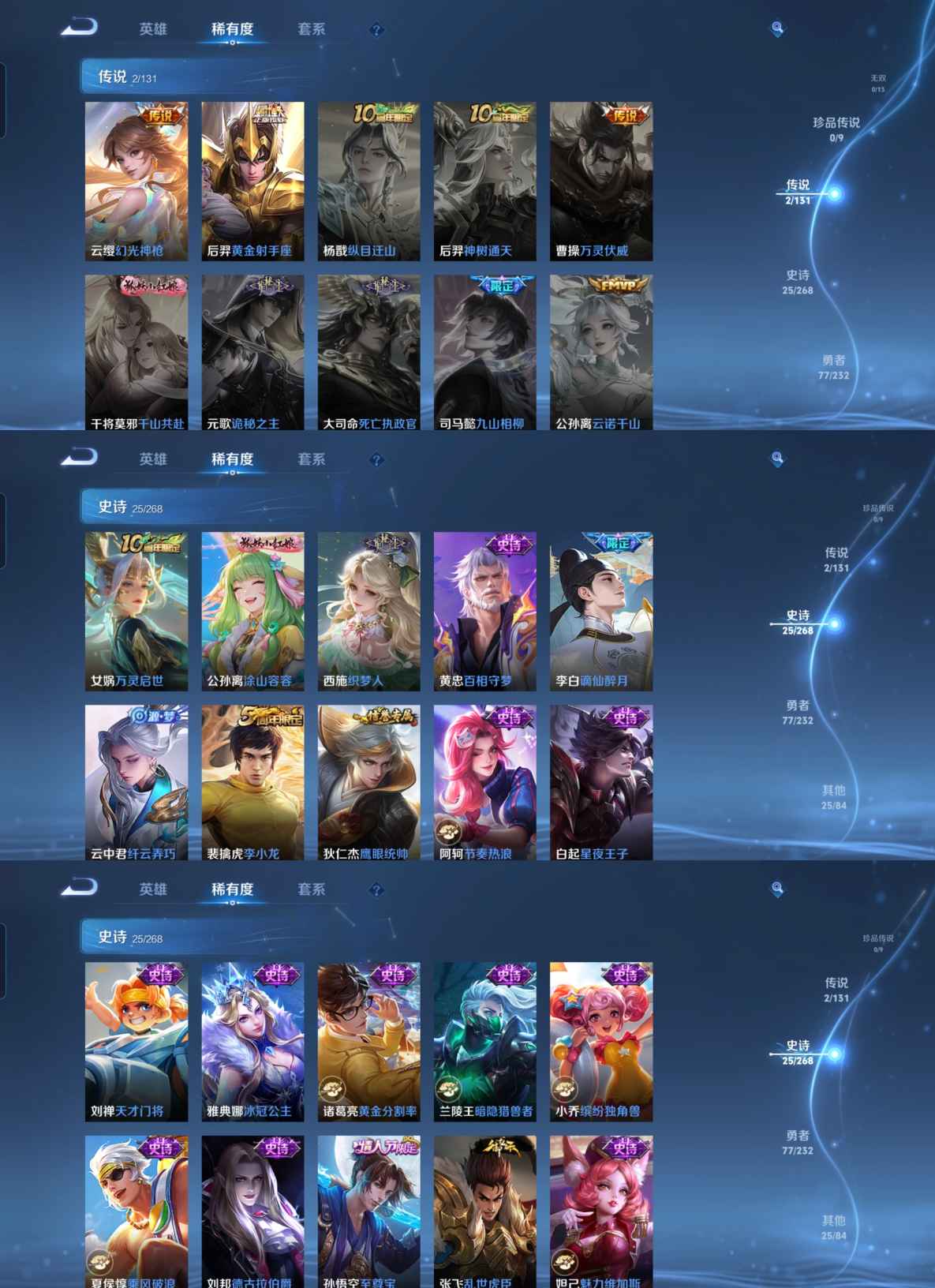 贵族等级:v4皮肤数:129传说品质2 情人节限定1 英雄数:125