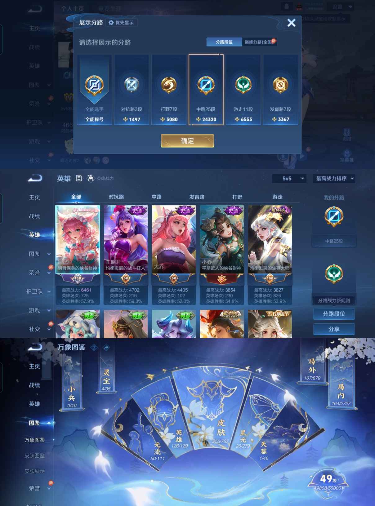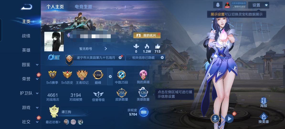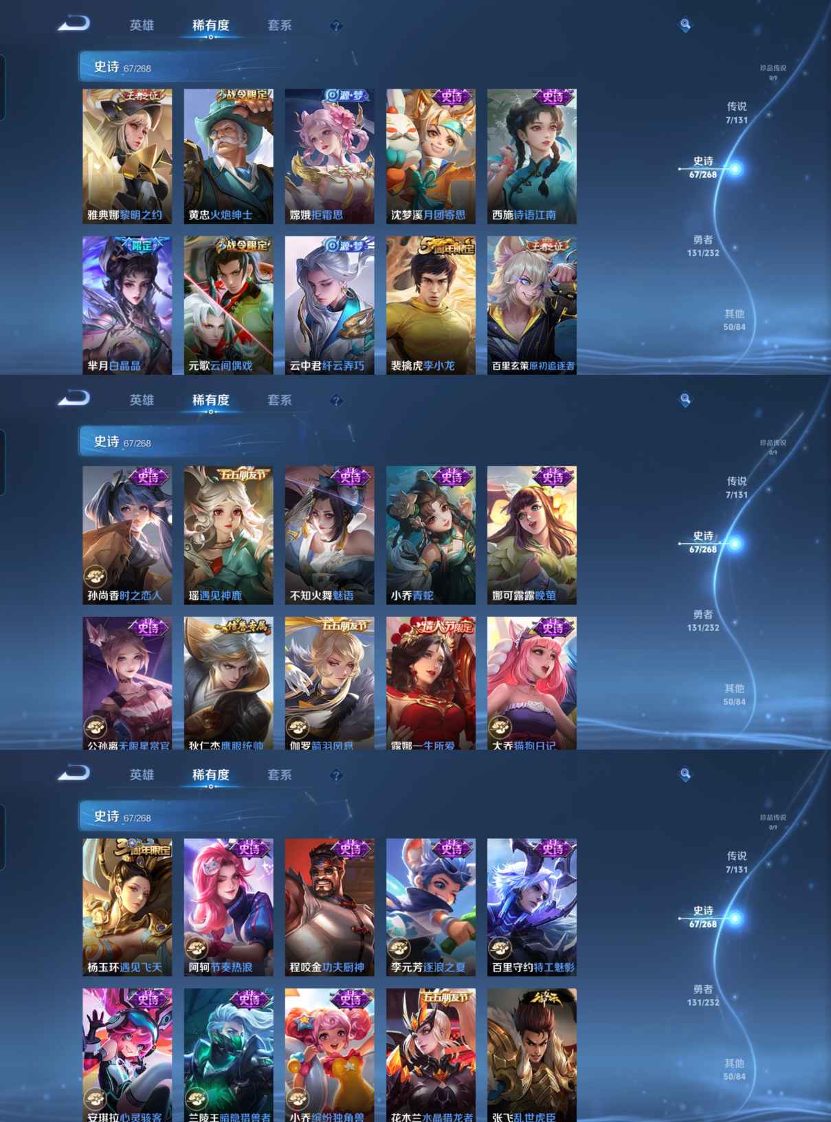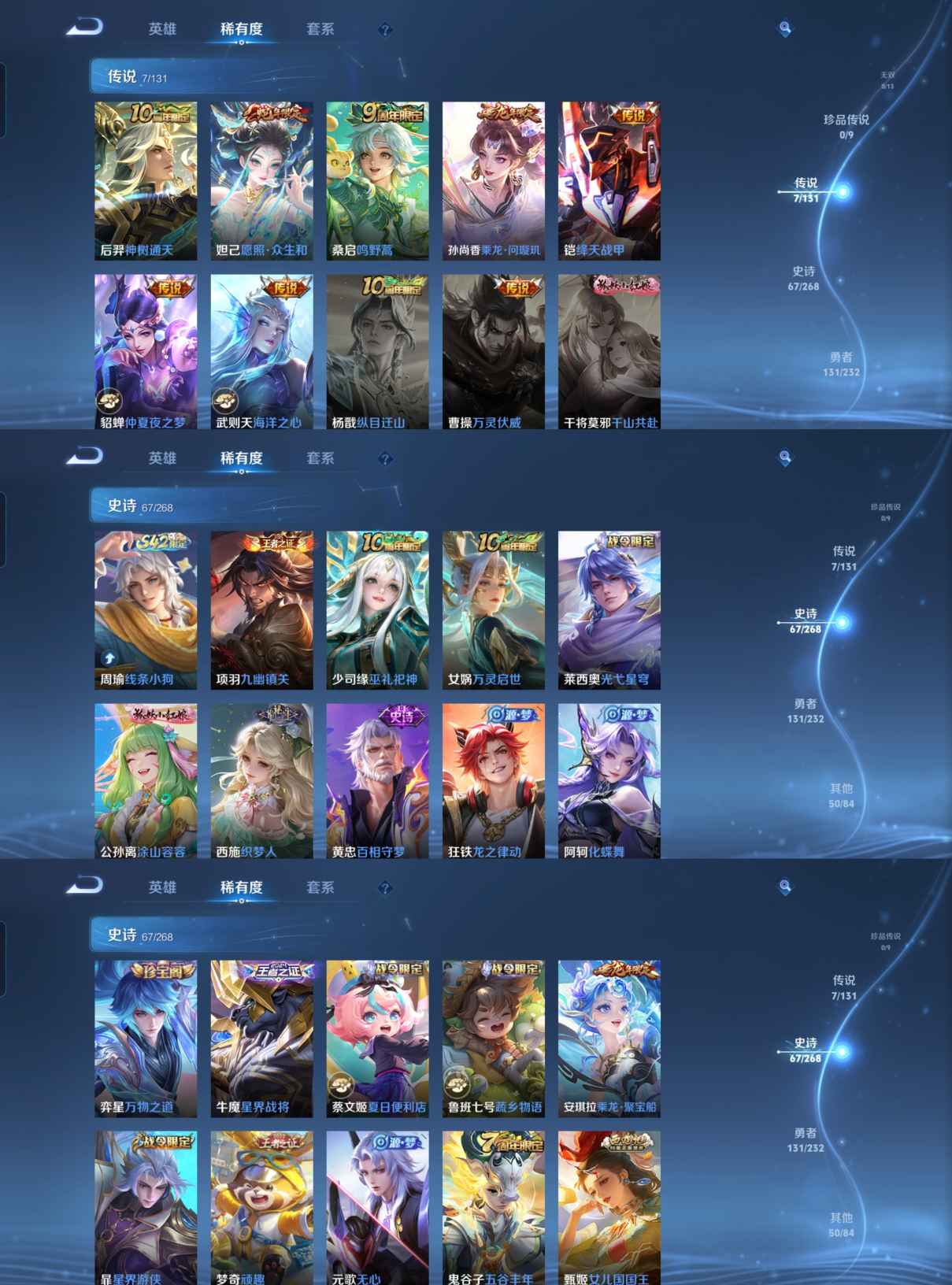 贵族等级:v6皮肤数:256传说品质7 生肖限定3 情人节限定1 英雄数:126