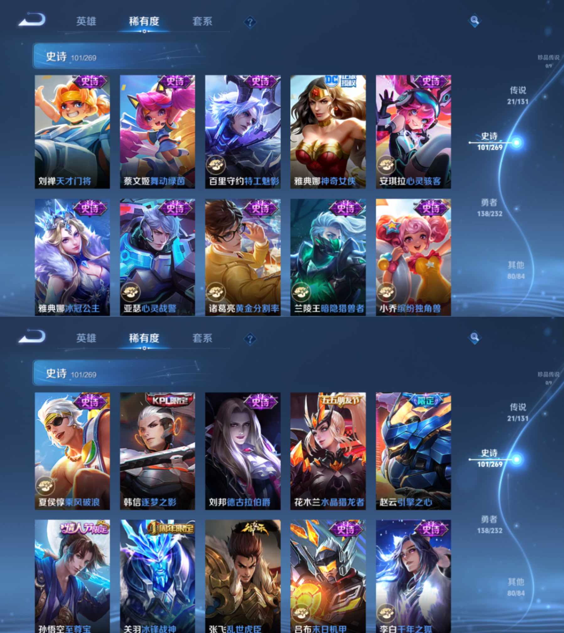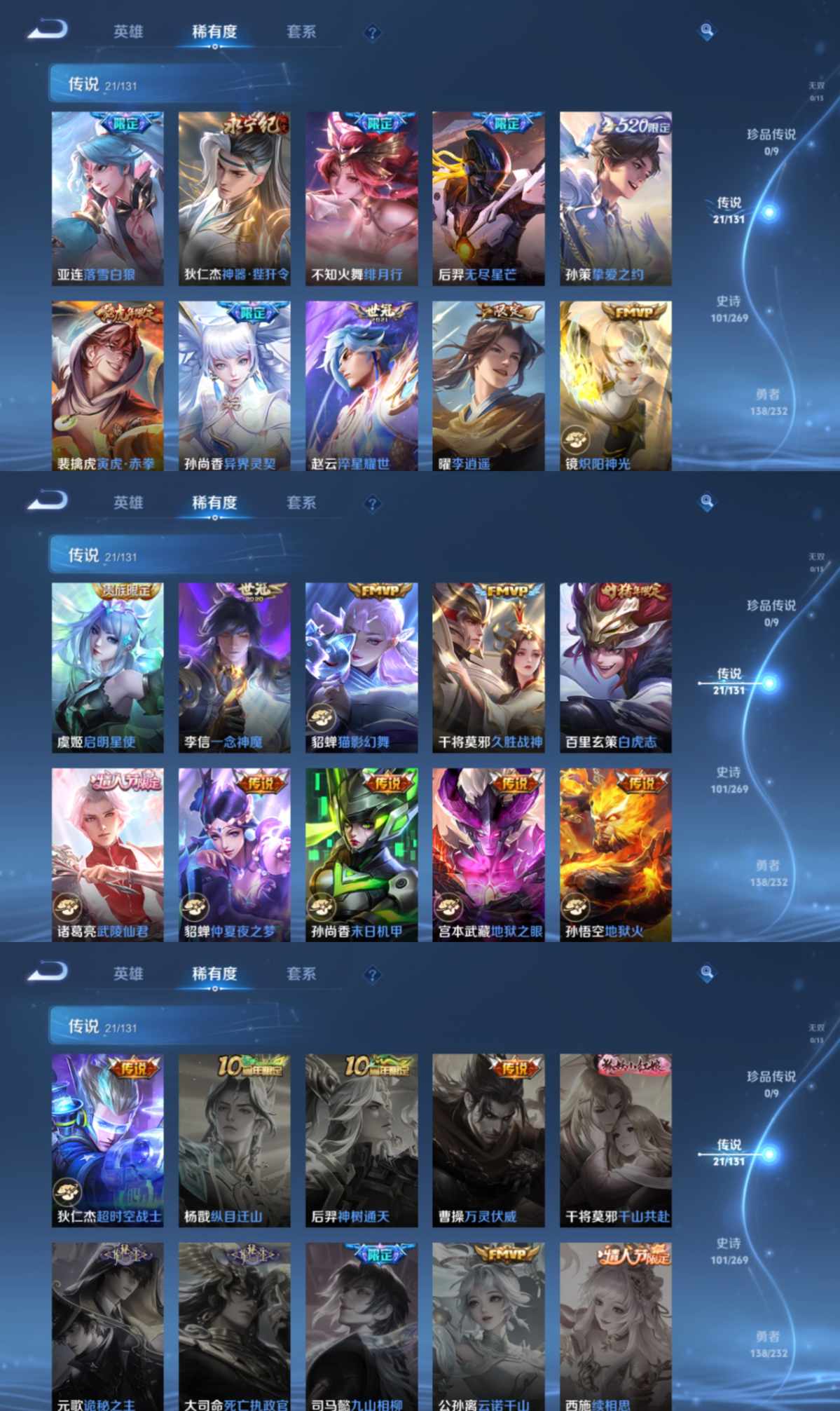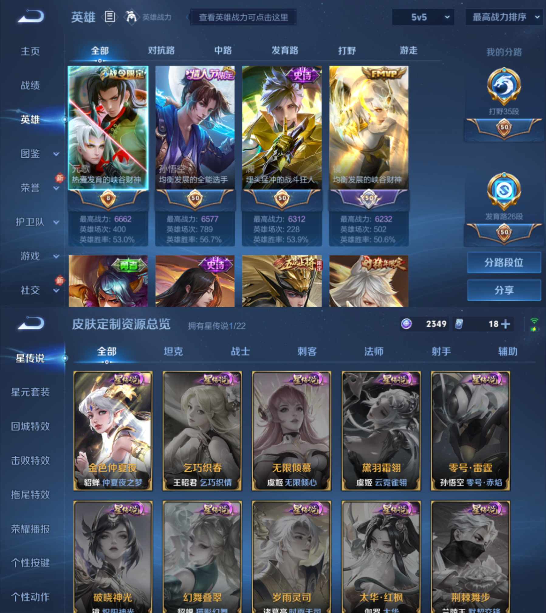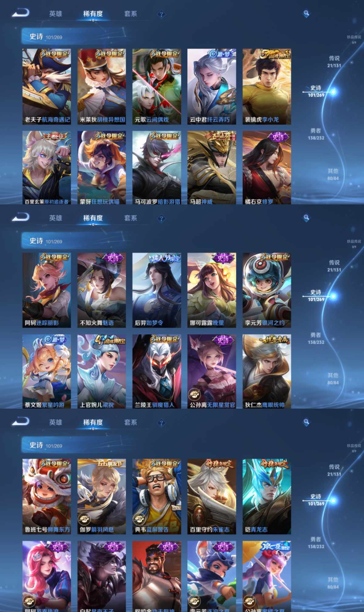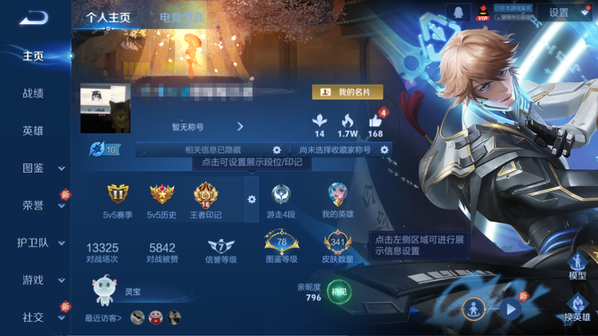 贵族等级:v8皮肤数:341情人节限定3 传说品质21 生肖限定5 荣耀典藏1 英雄数:122