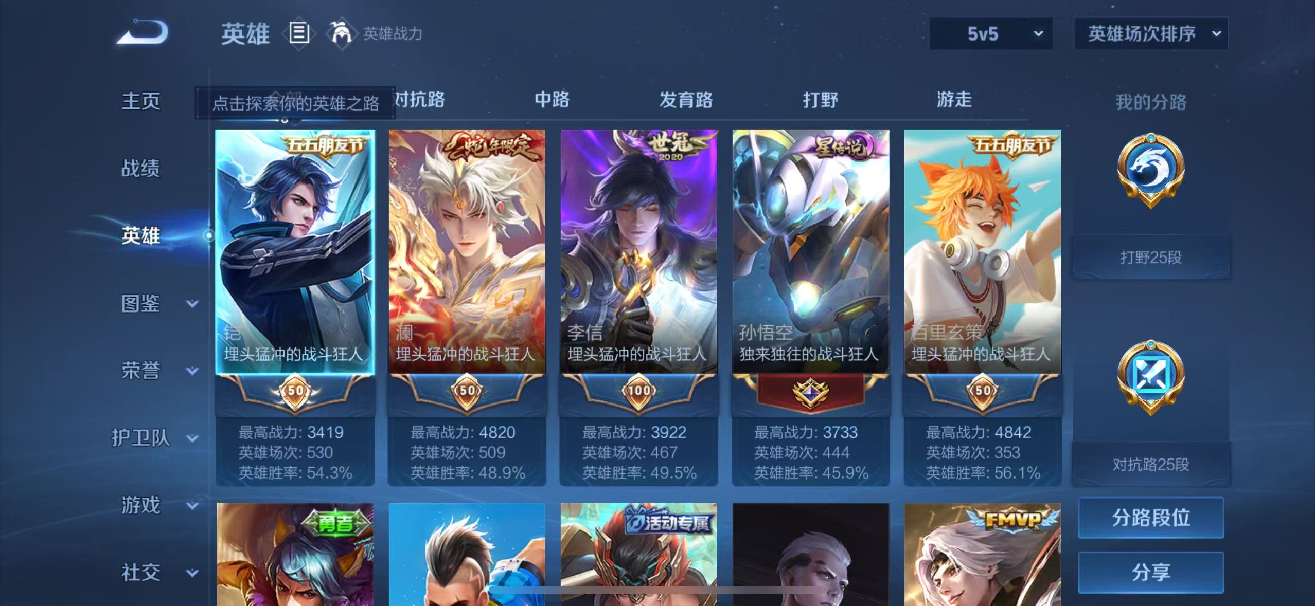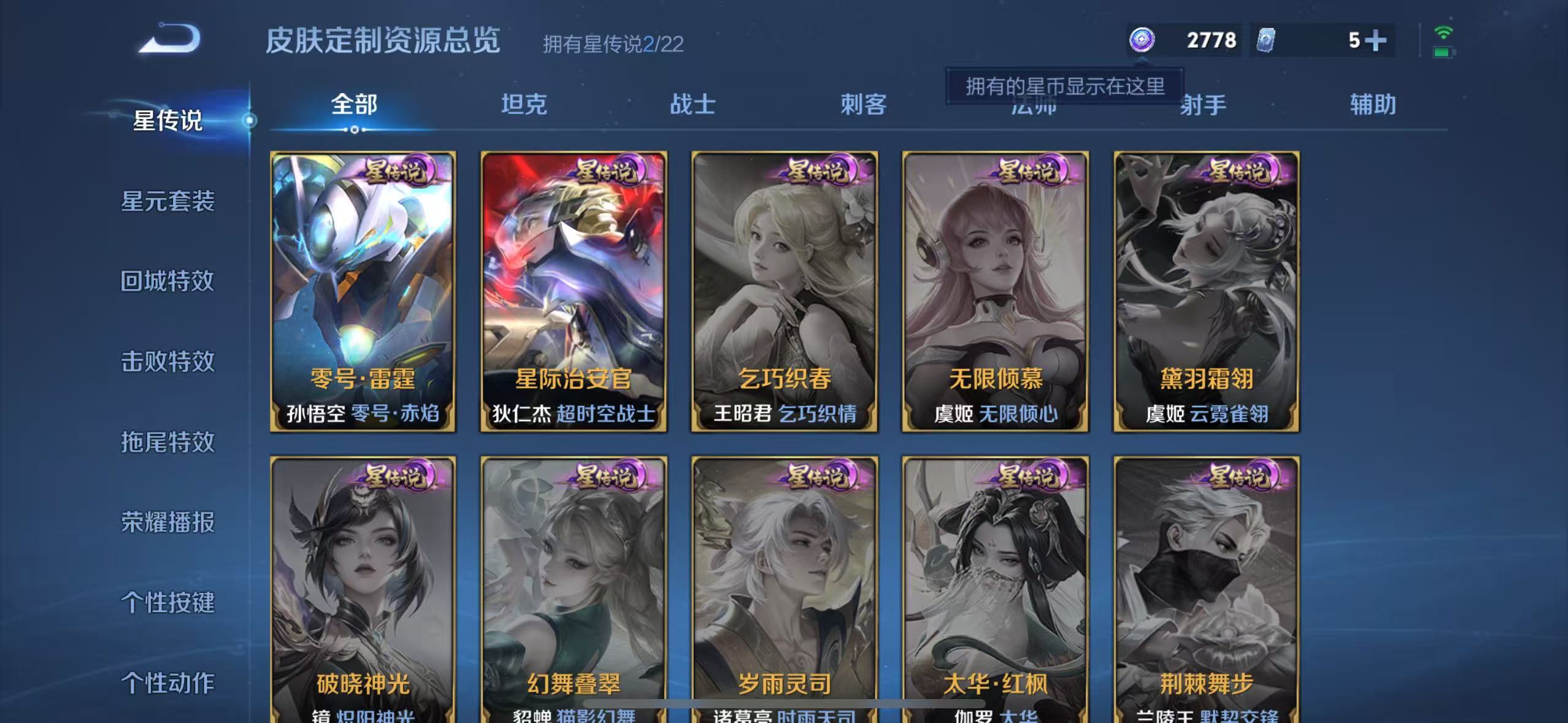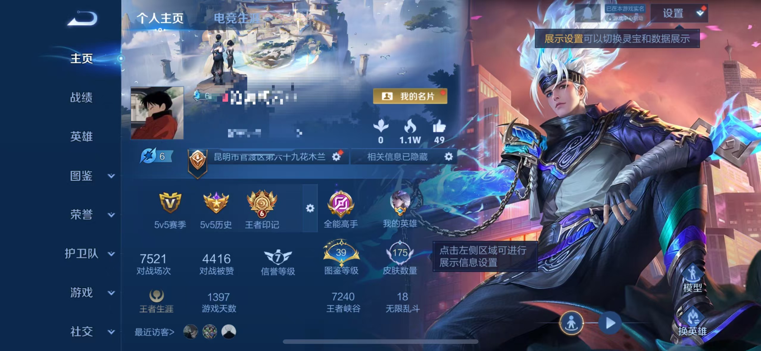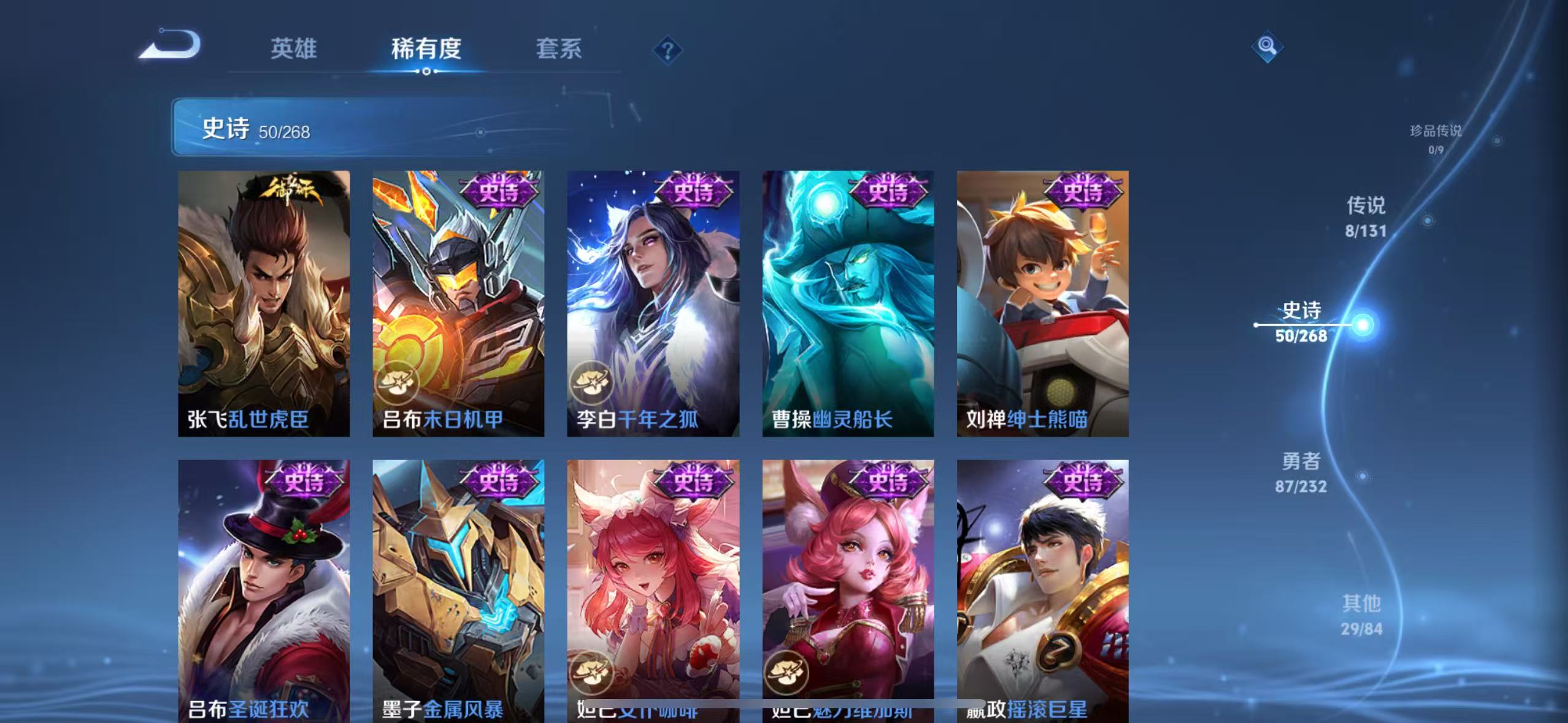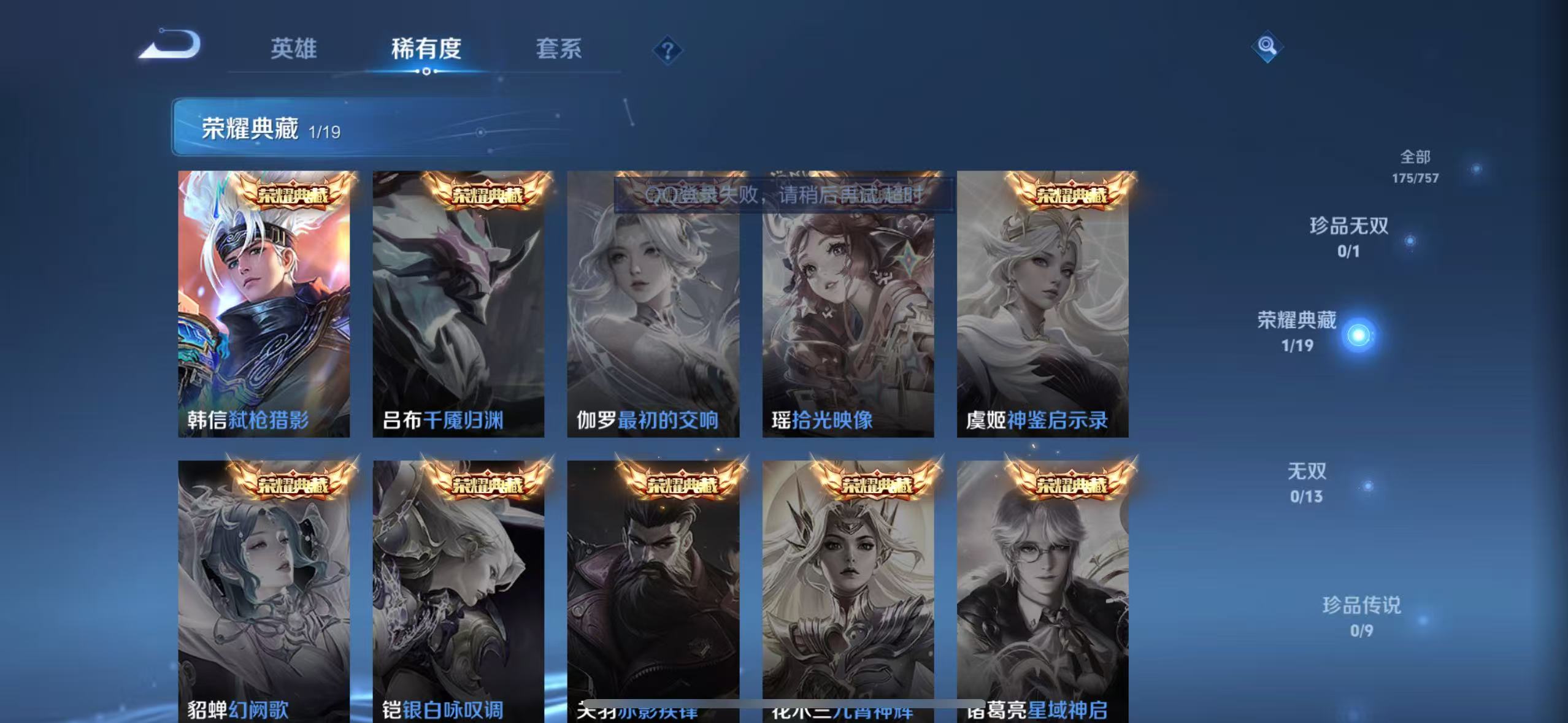 贵族等级:v5皮肤数:175传说品质8 生肖限定1 荣耀典藏1 英雄数:125