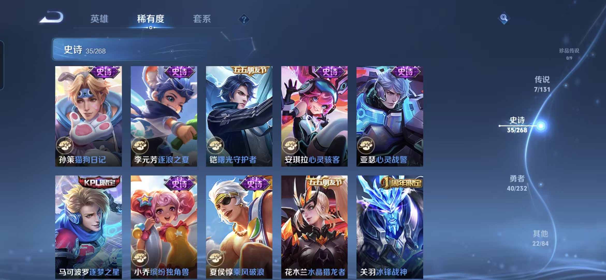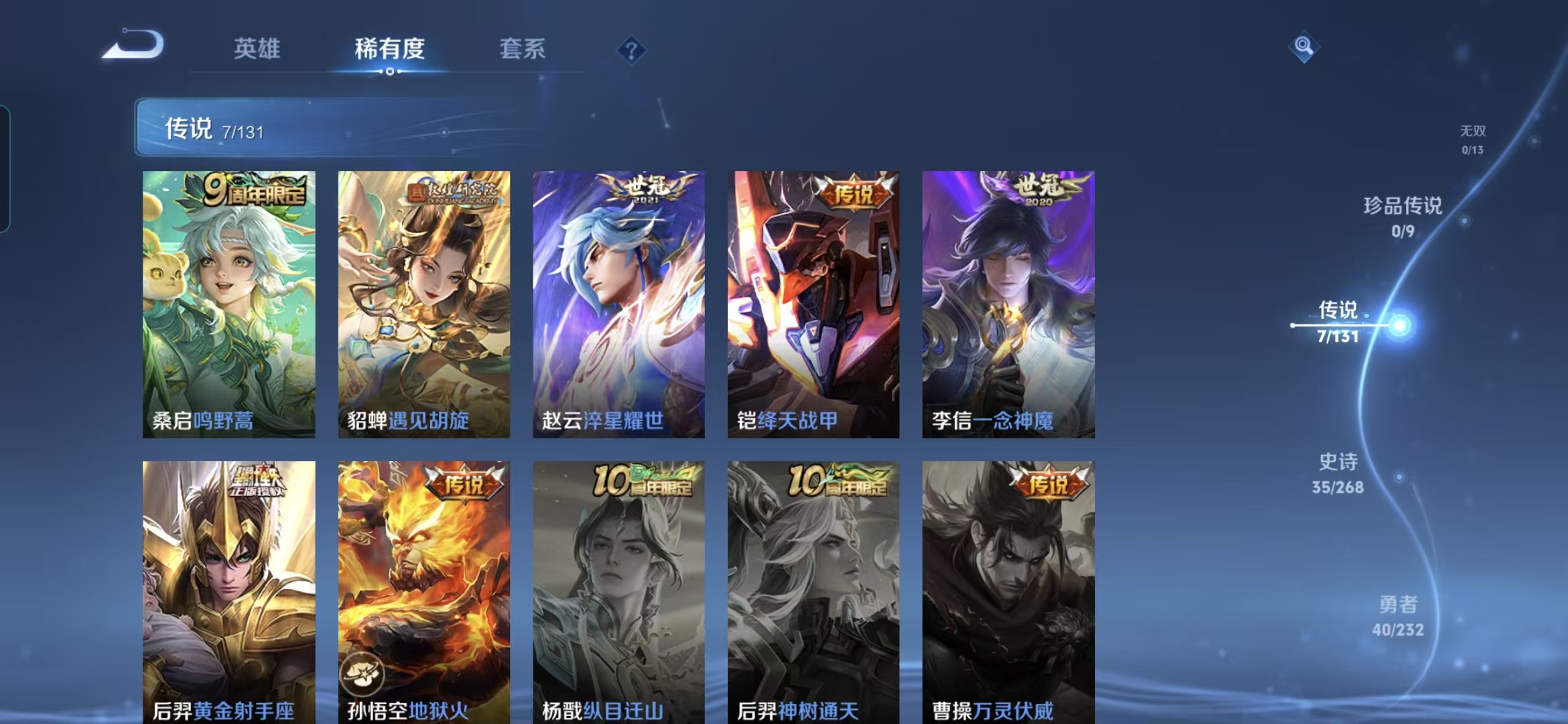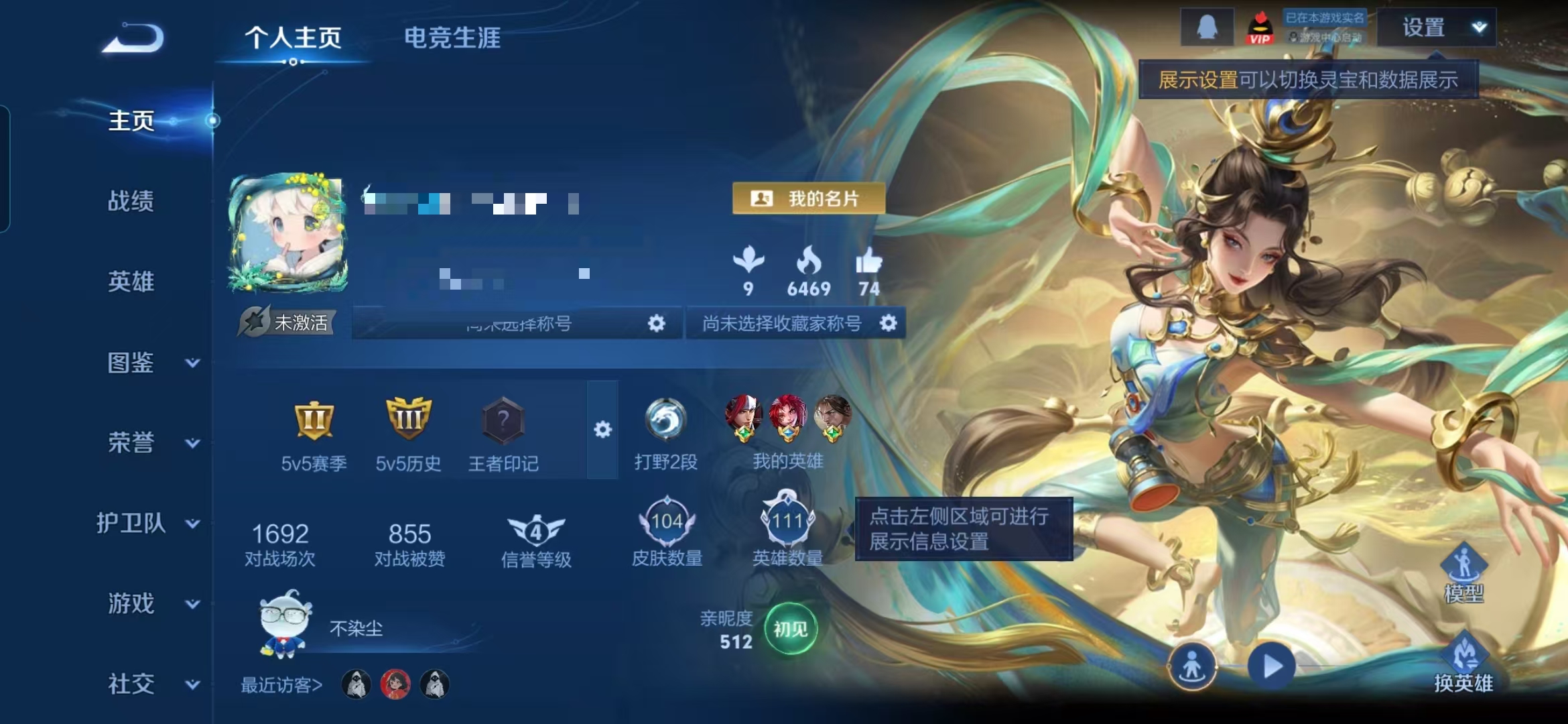 贵族等级:v7皮肤数:104传说品质7 英雄数:111