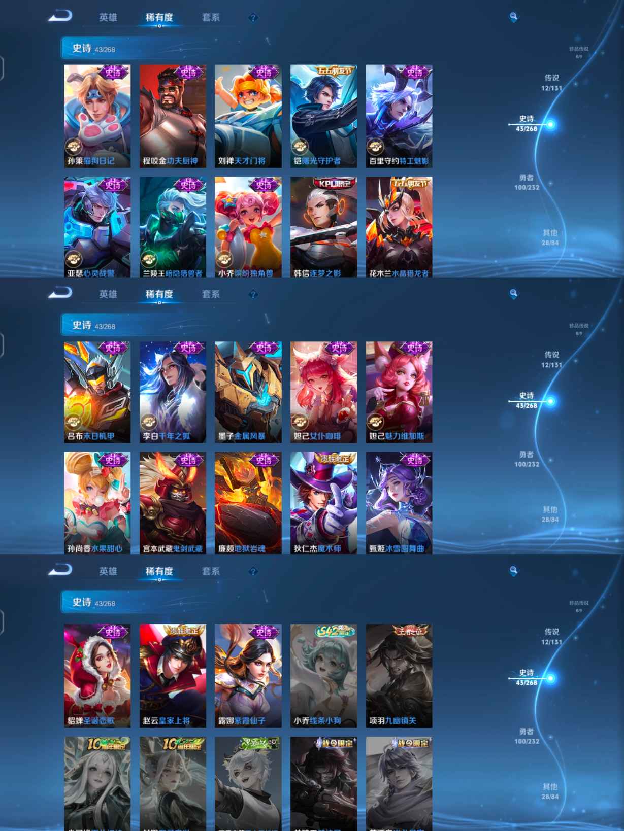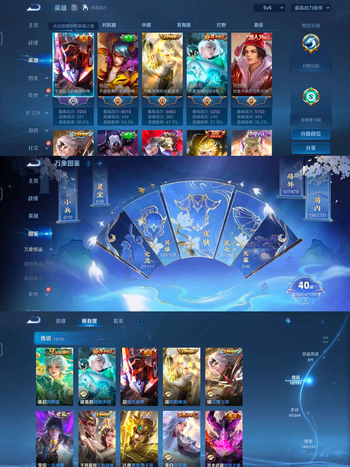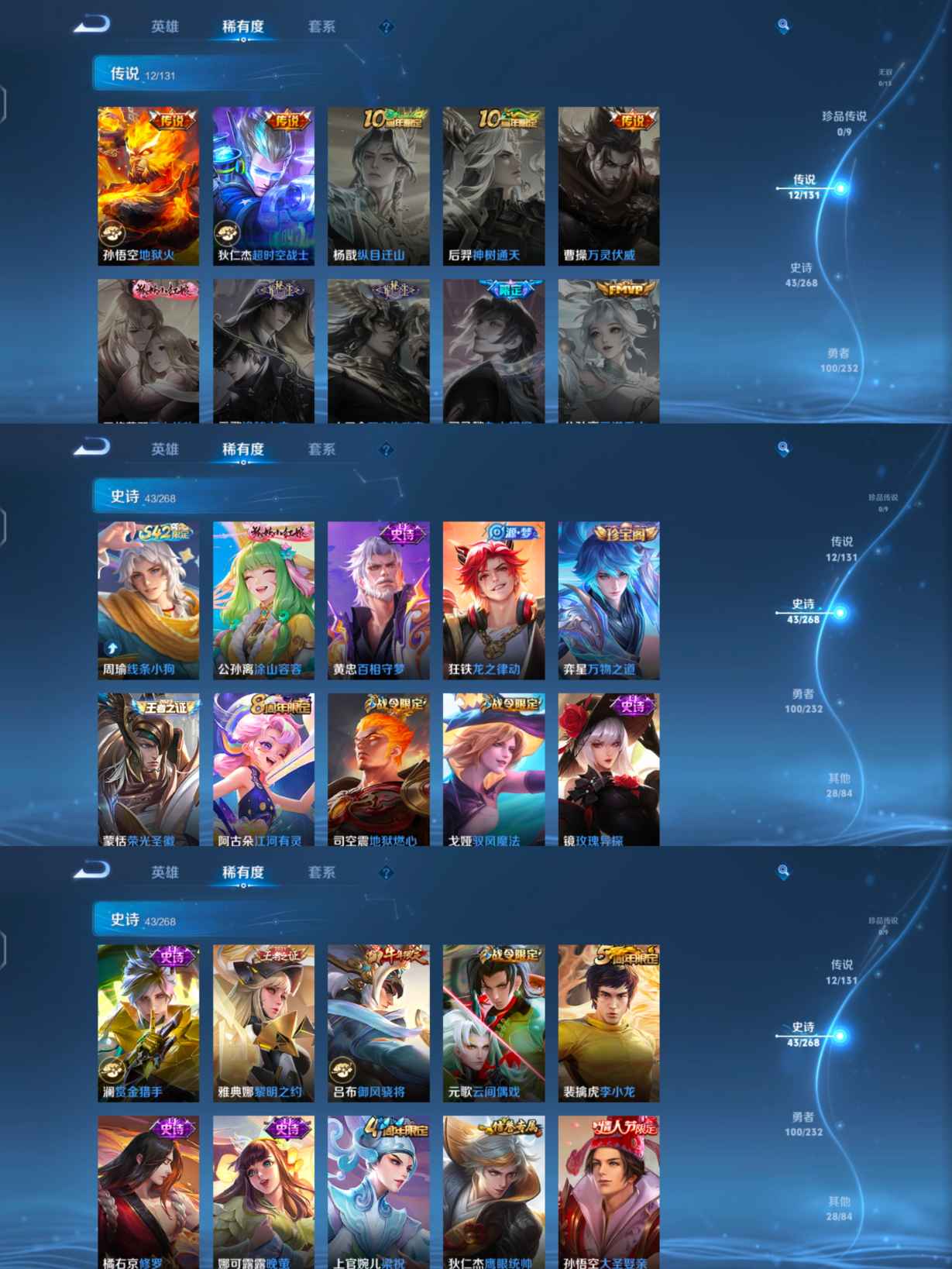 贵族等级:v7皮肤数:183传说品质12 生肖限定3 情人节限定1 英雄数:126