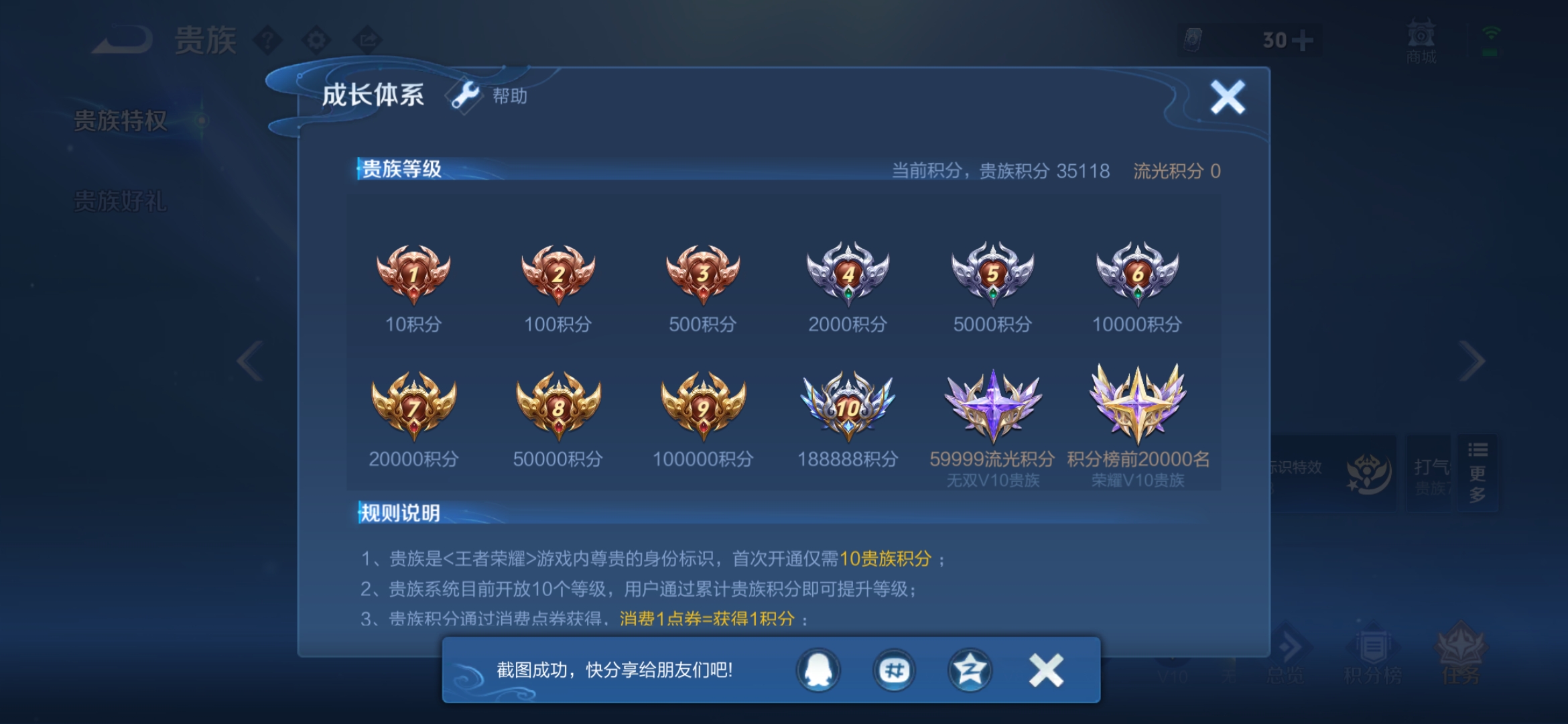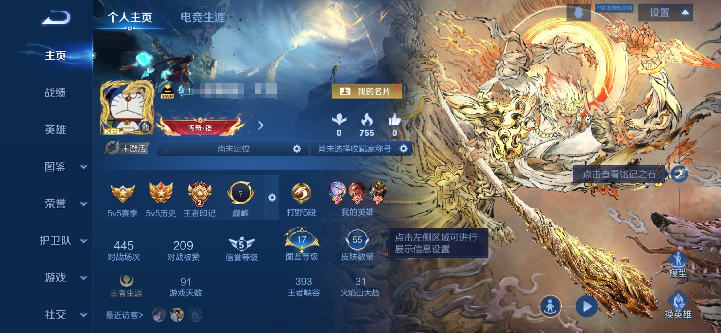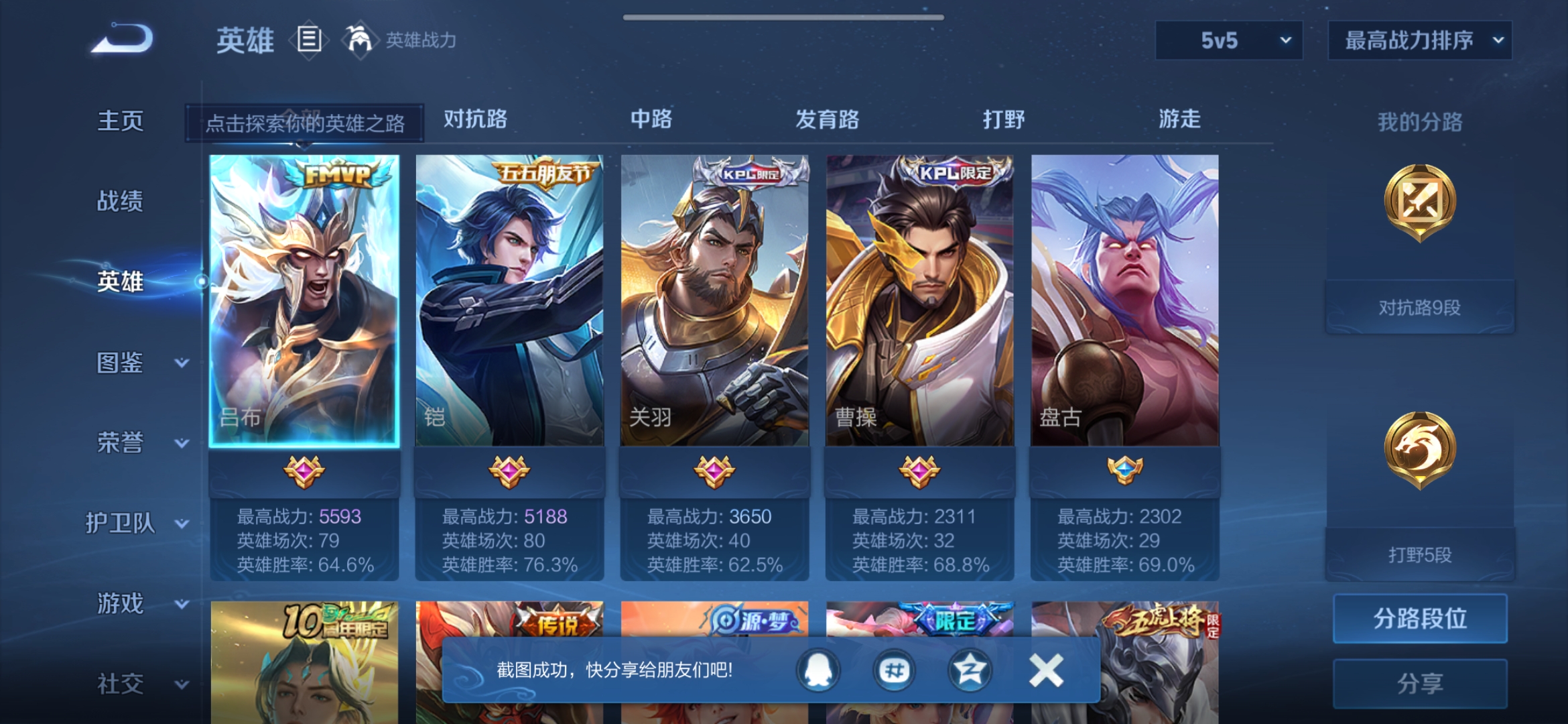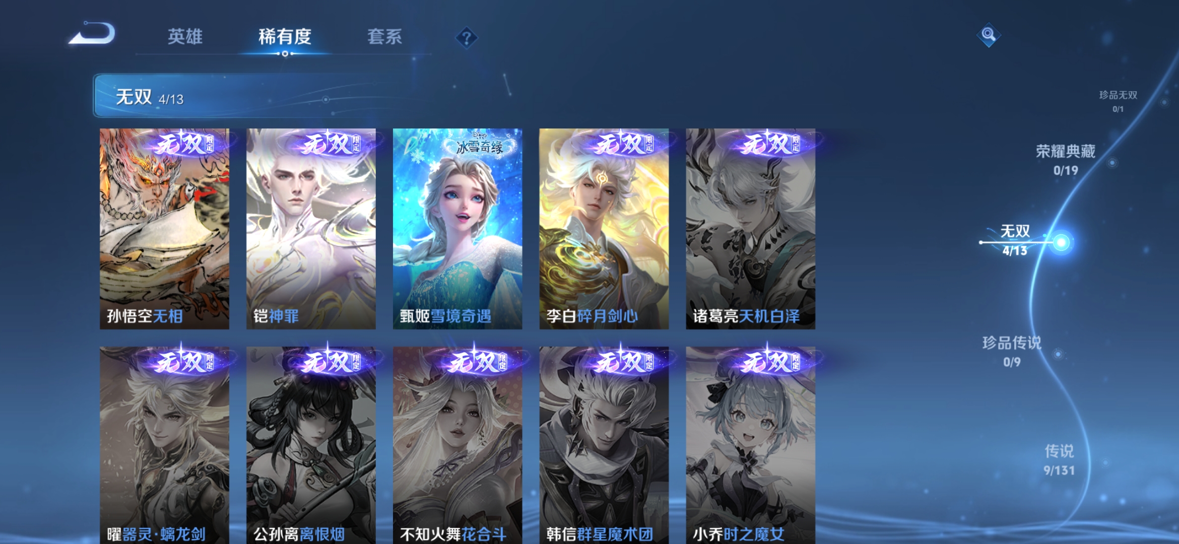 贵族等级:v7皮肤数:55传说品质9 无双4 英雄数:47