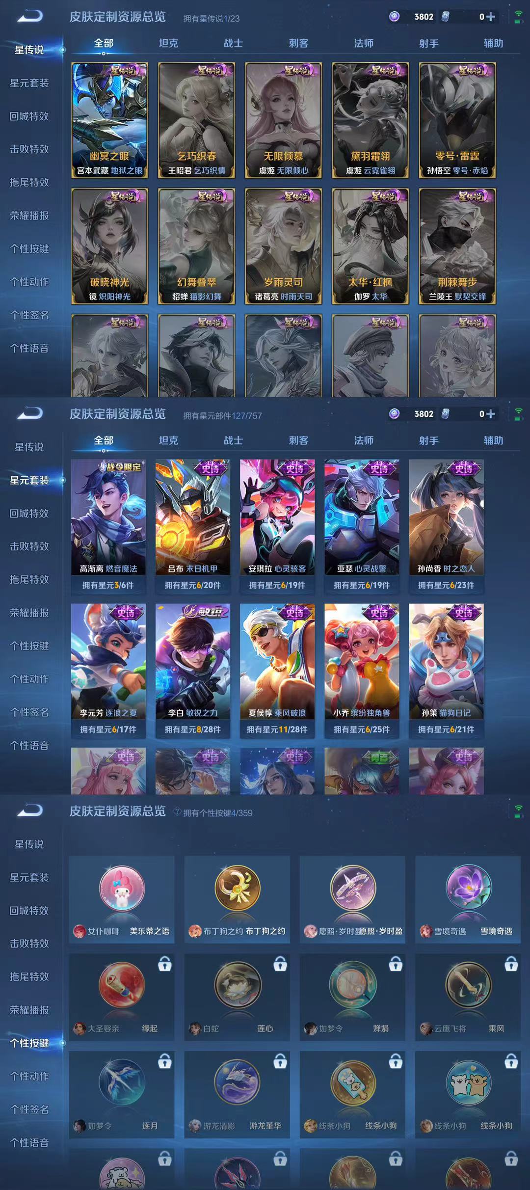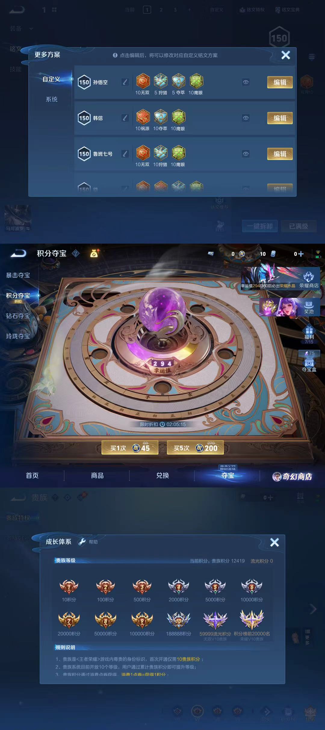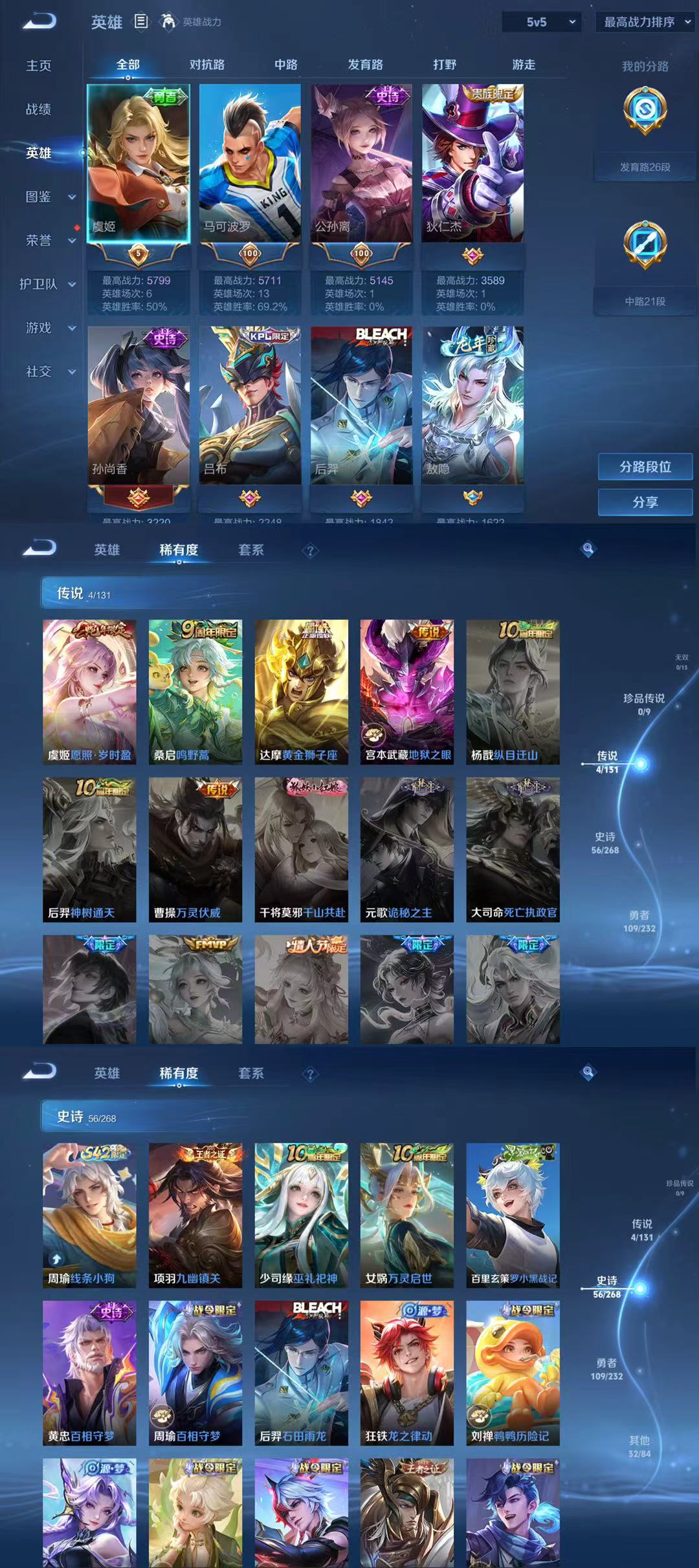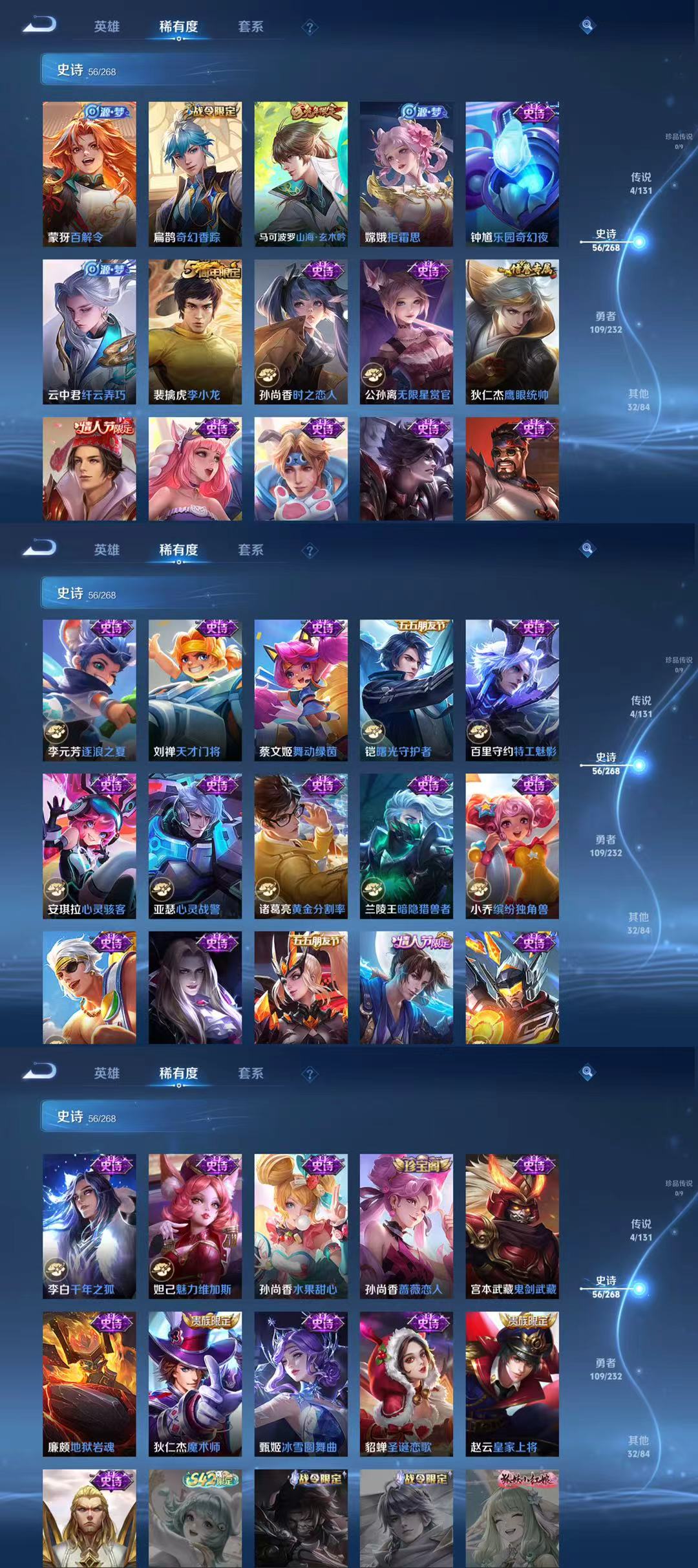 贵族等级:v6皮肤数:201情人节限定2 传说品质4 生肖限定2 英雄数:127