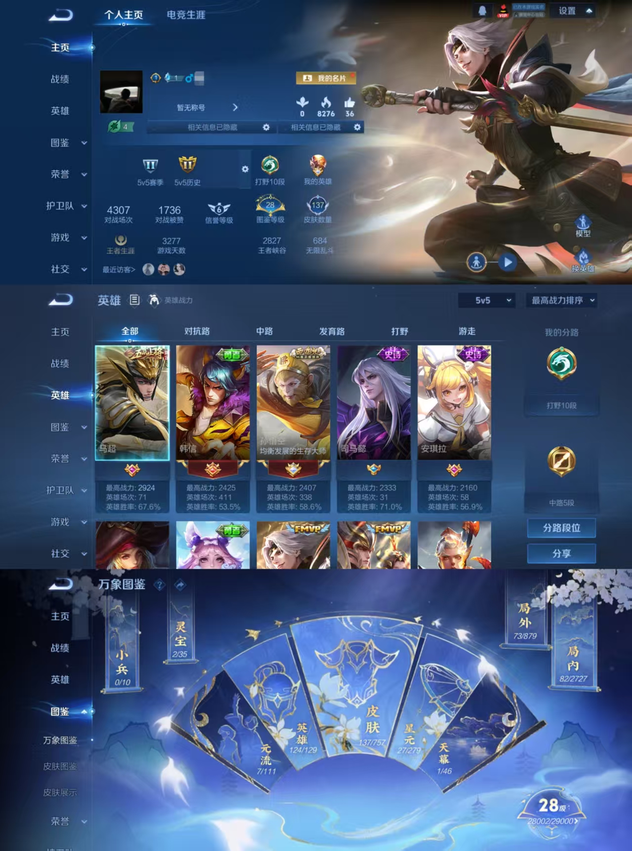 贵族等级:v6皮肤数:137传说品质3 英雄数:124