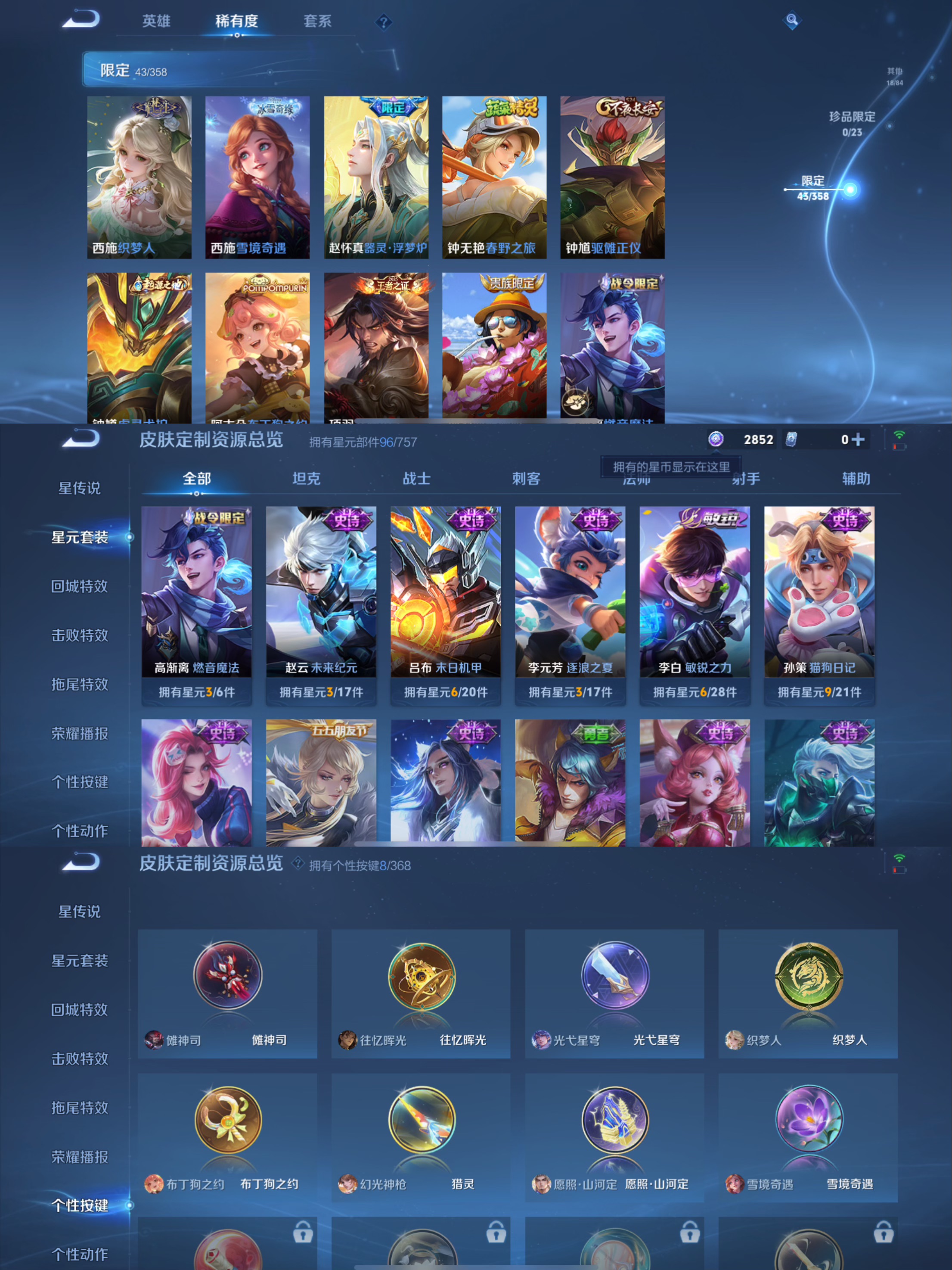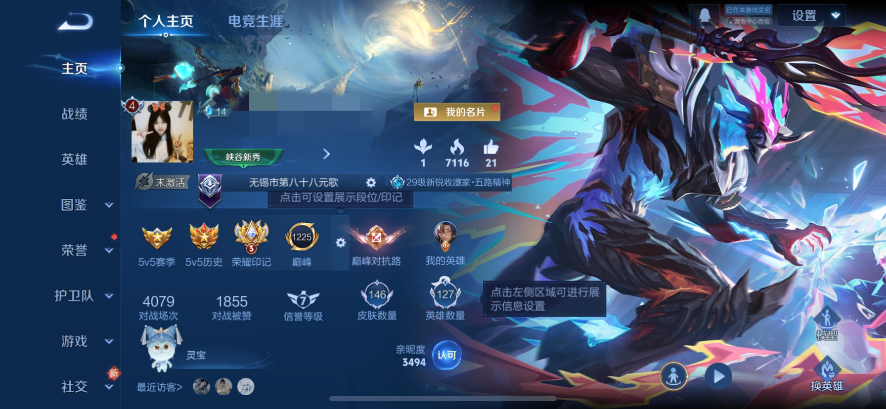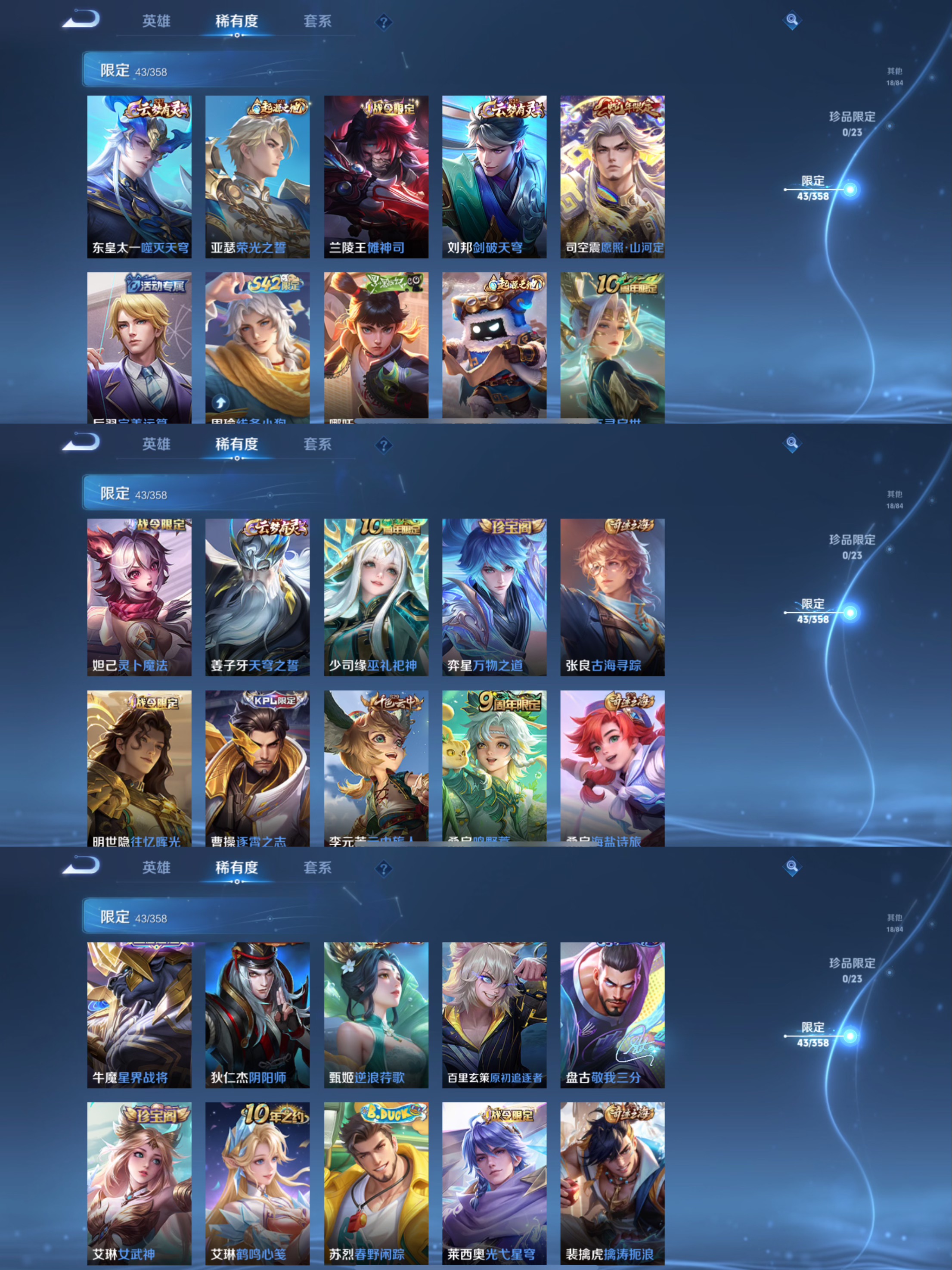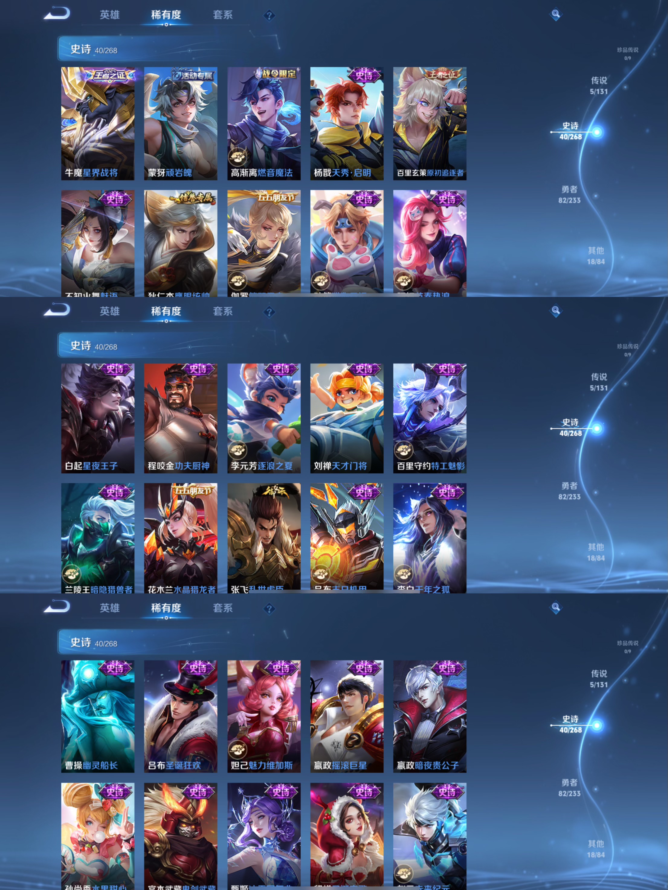 贵族等级:v4皮肤数:146传说品质5 生肖限定1 荣耀典藏1 英雄数:127