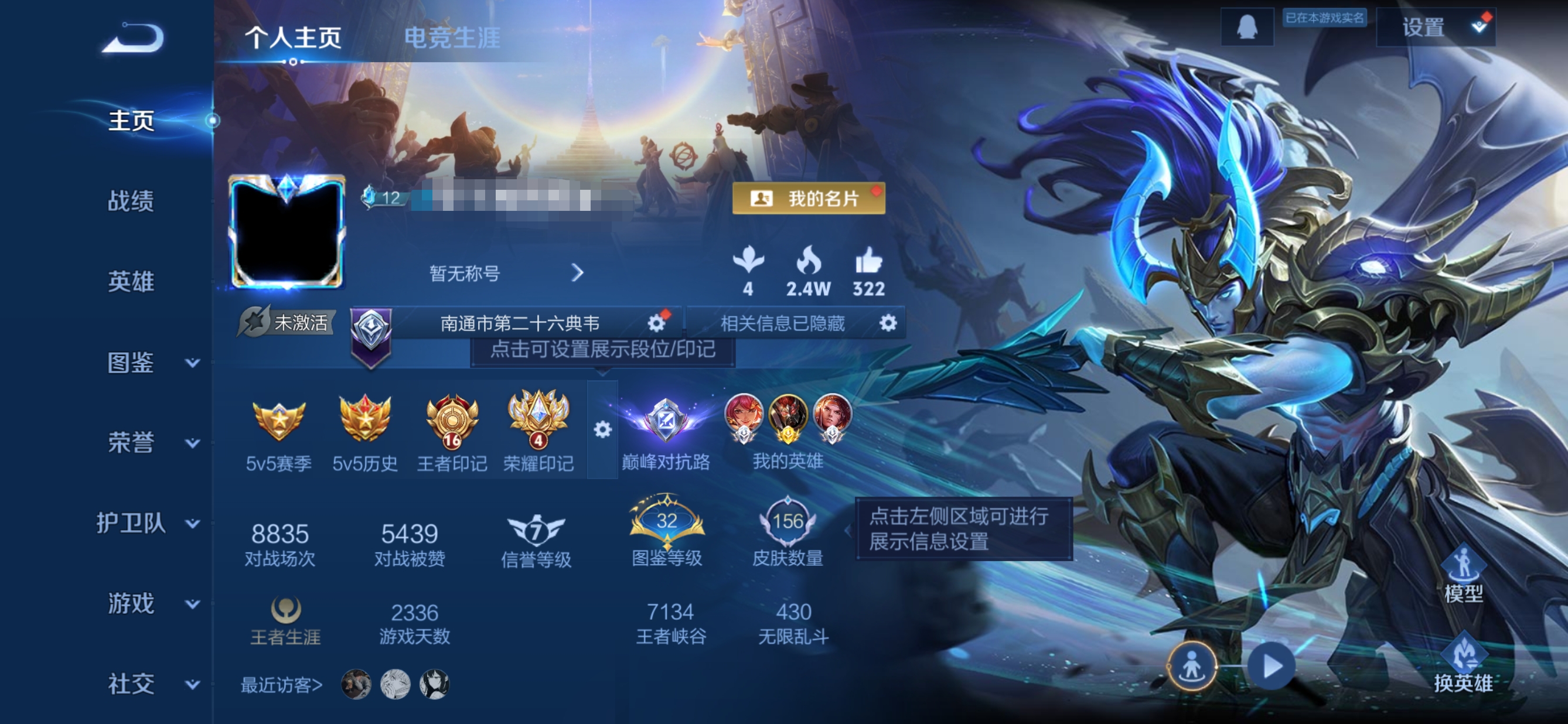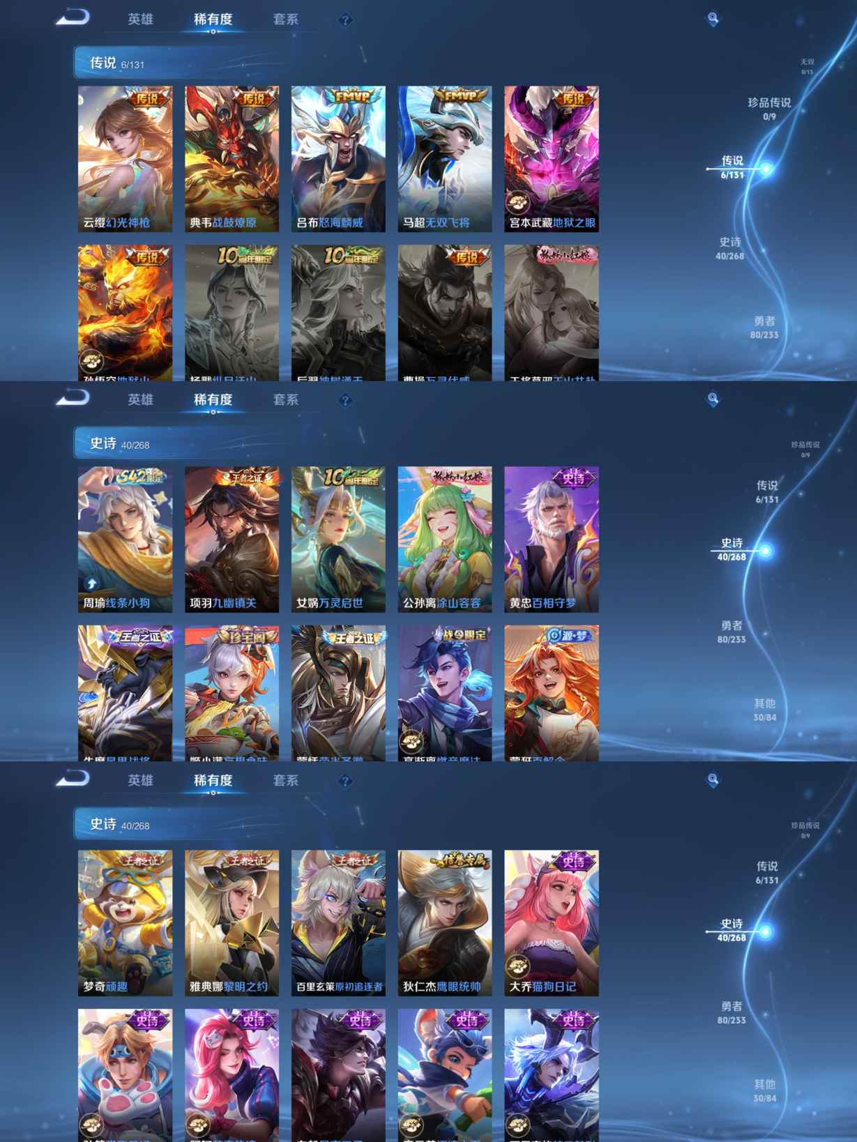 贵族等级:v5皮肤数:158传说品质6 英雄数:125