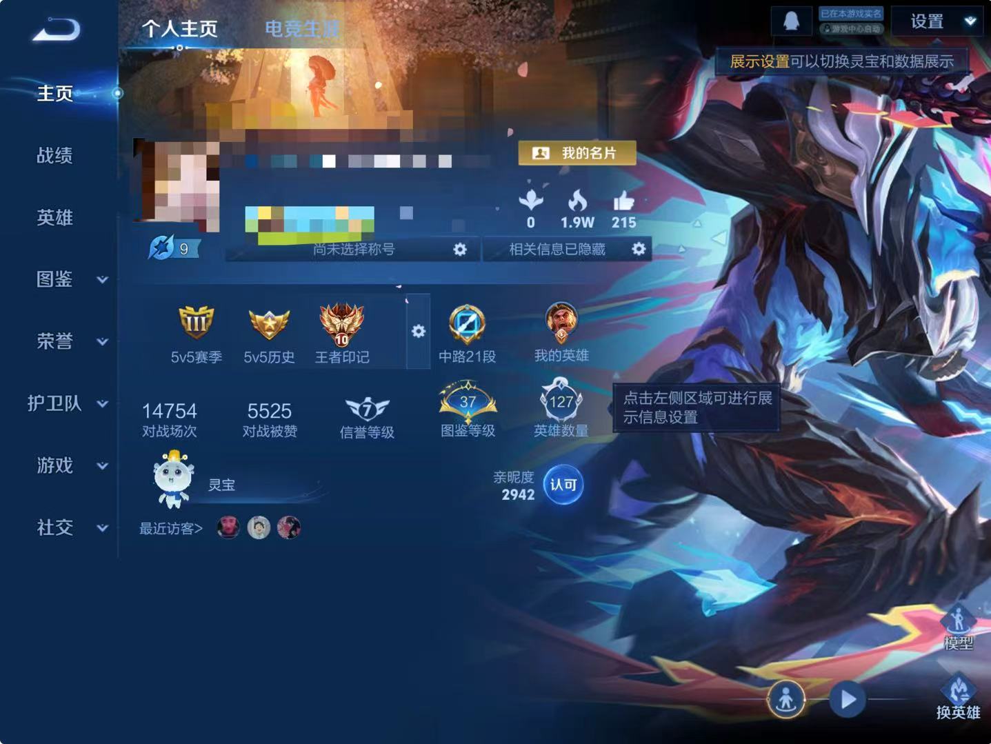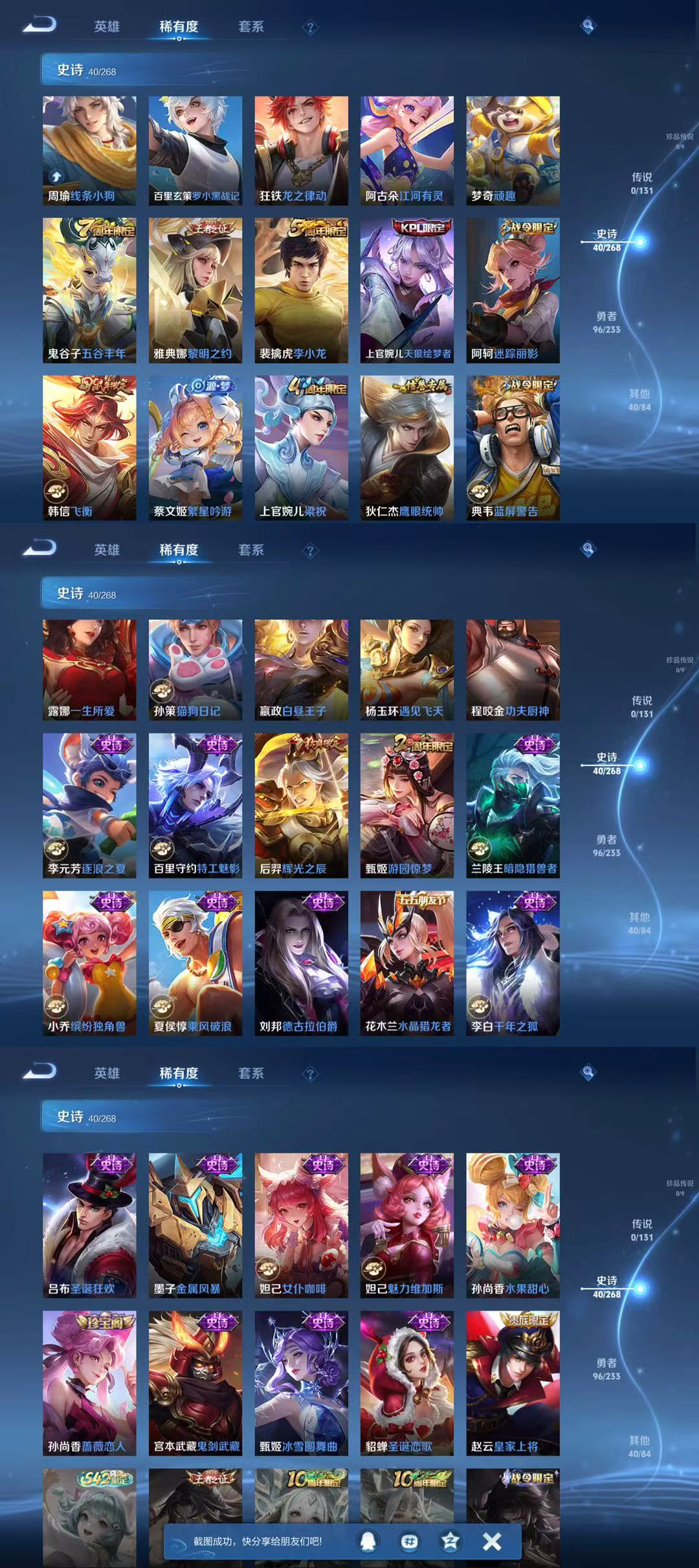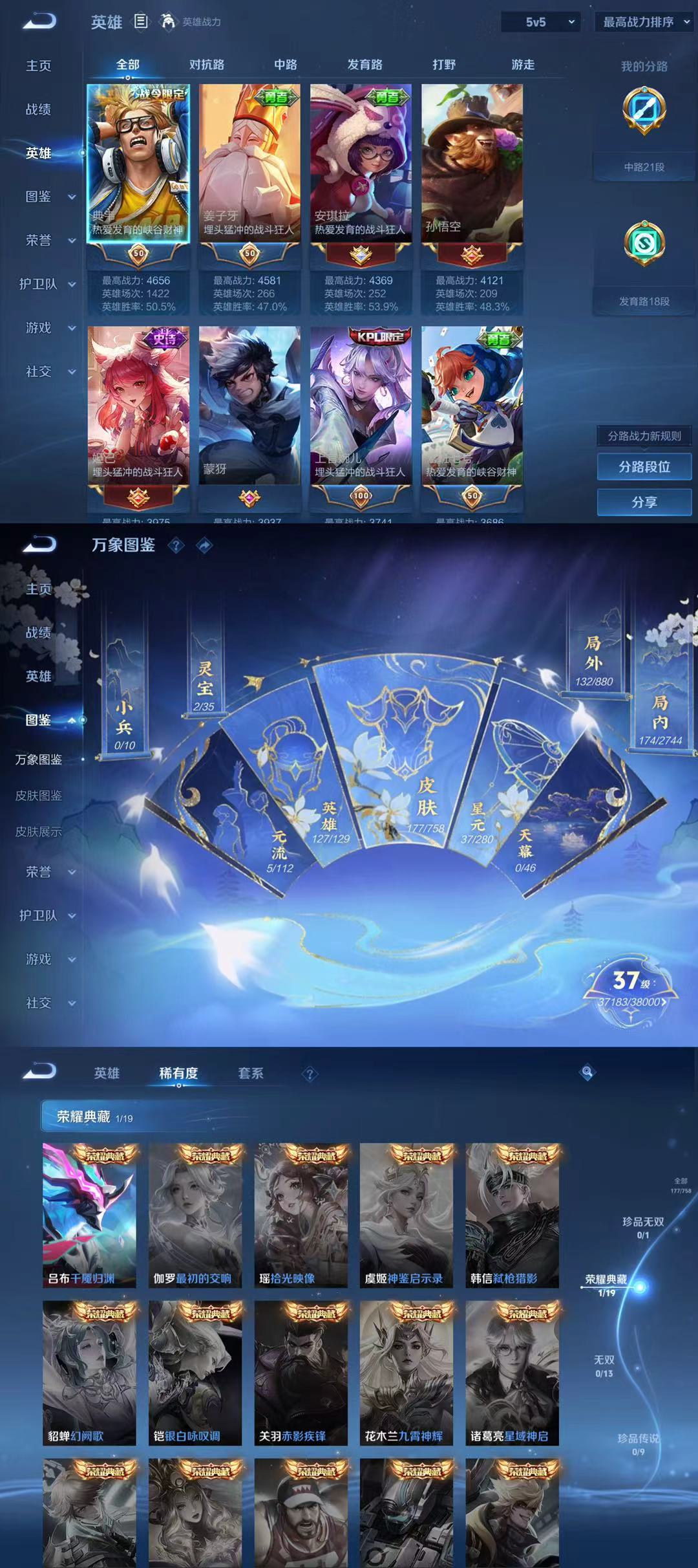 贵族等级:v5皮肤数:179生肖限定2 荣耀典藏1 情人节限定1 英雄数:127