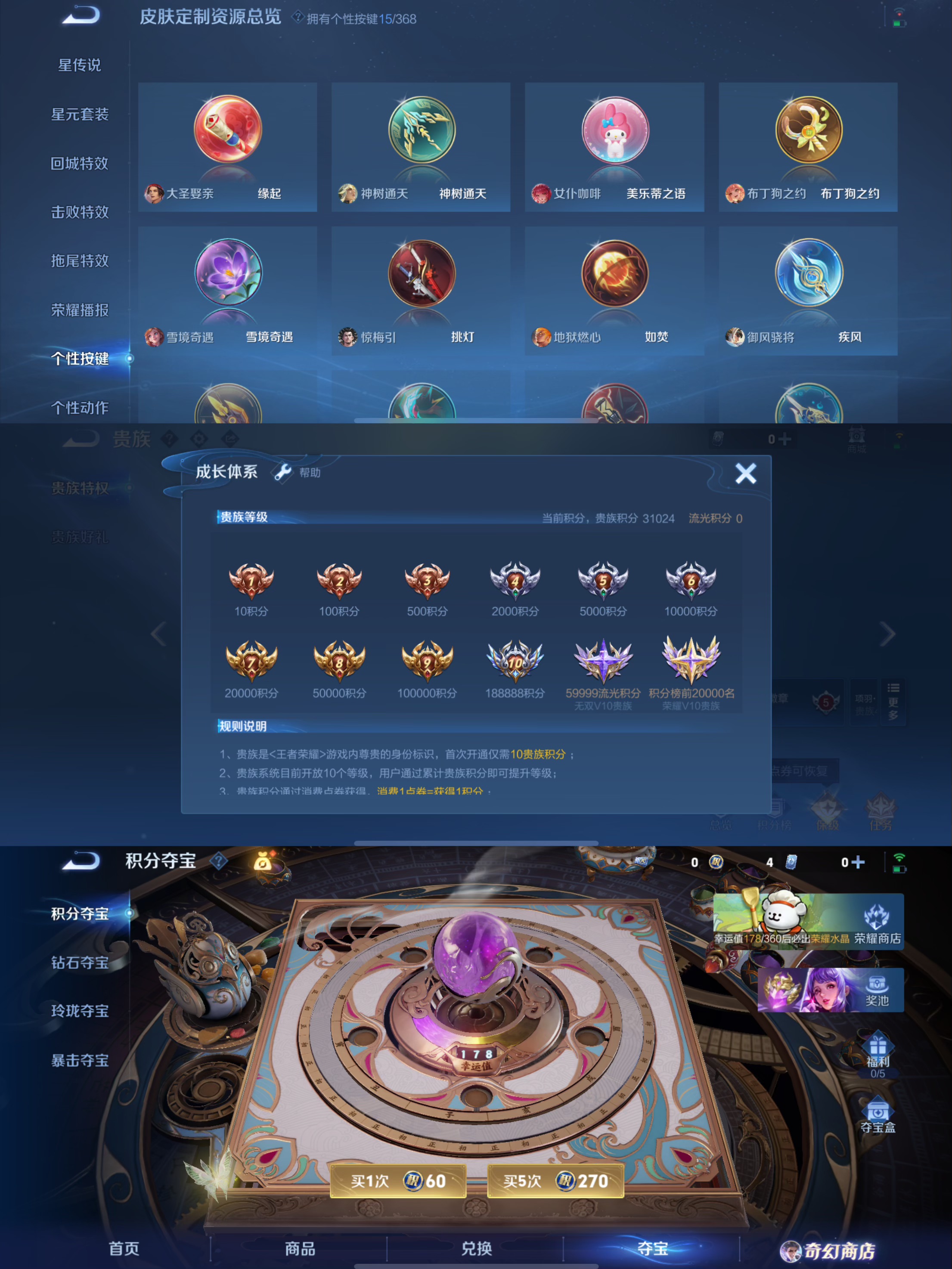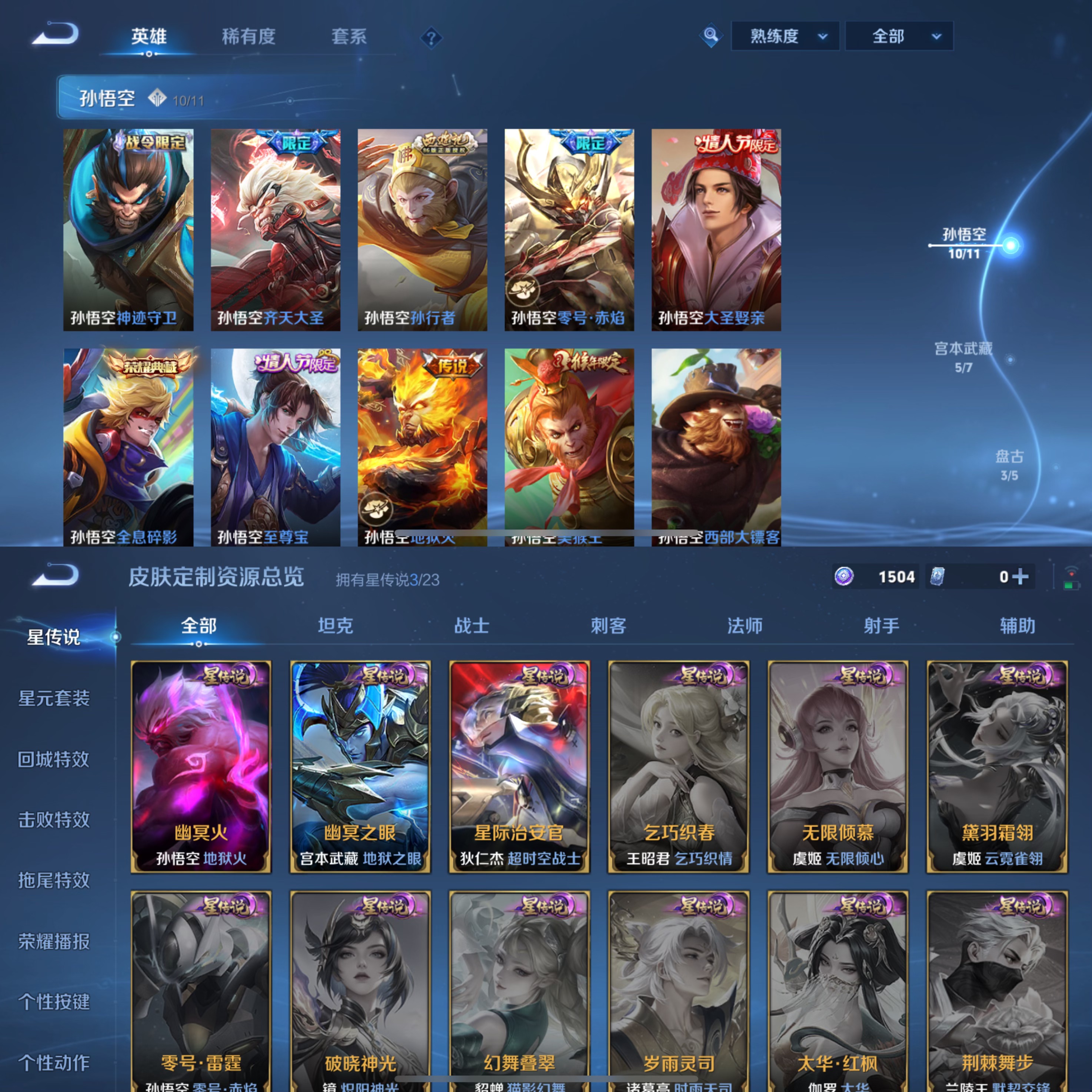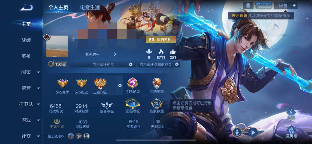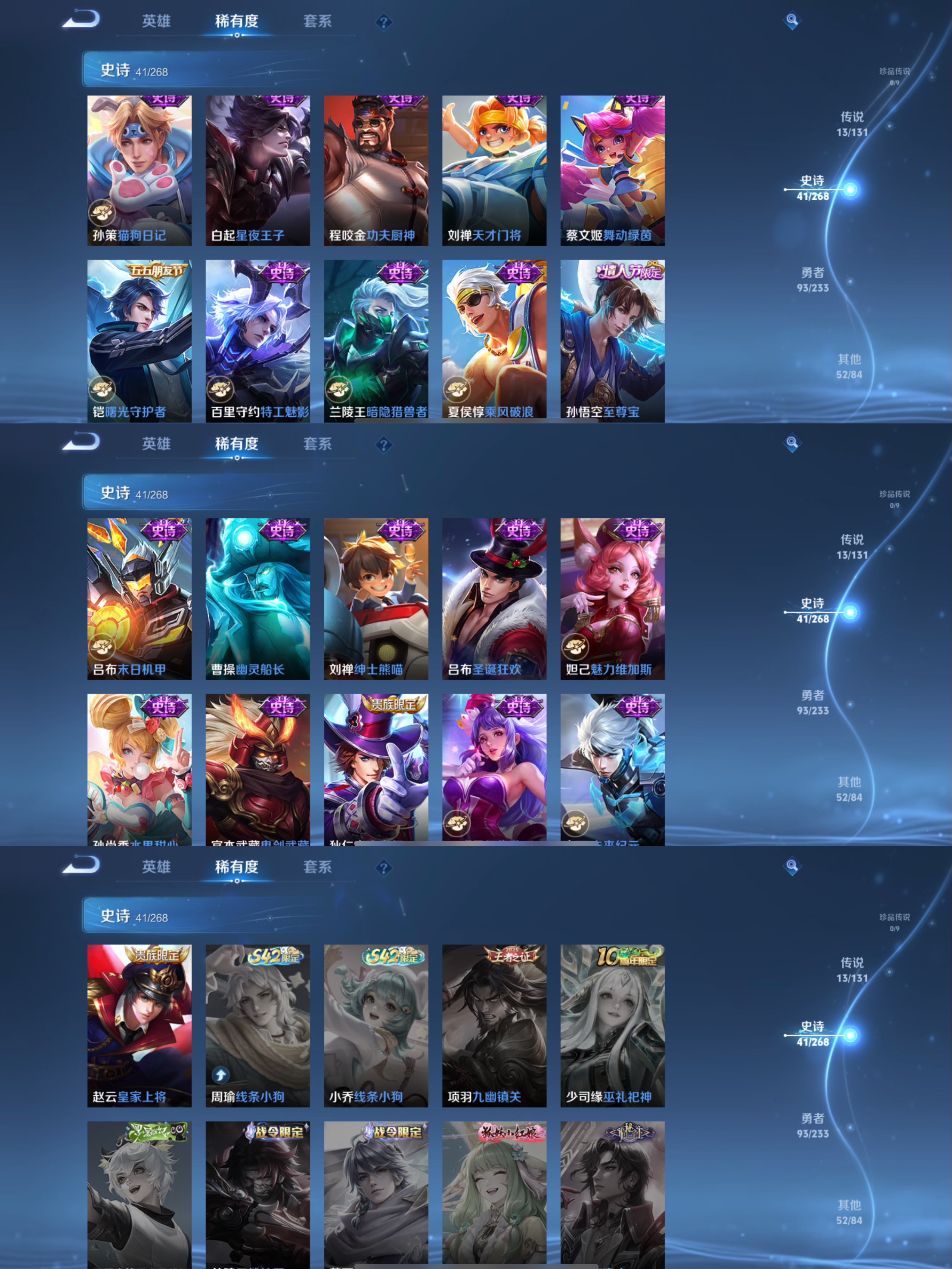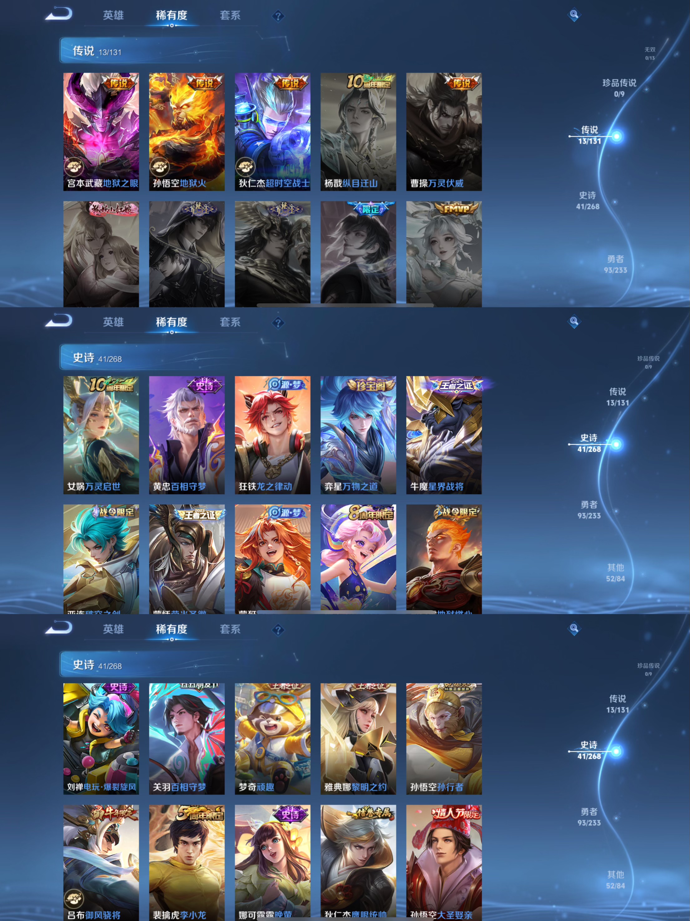 贵族等级:v7皮肤数:201传说品质13 荣耀典藏2 情人节限定2 生肖限定2 英雄数:127