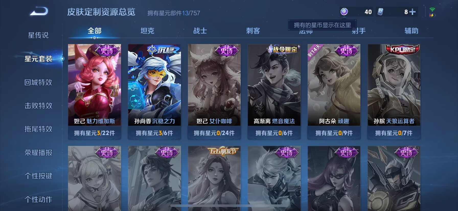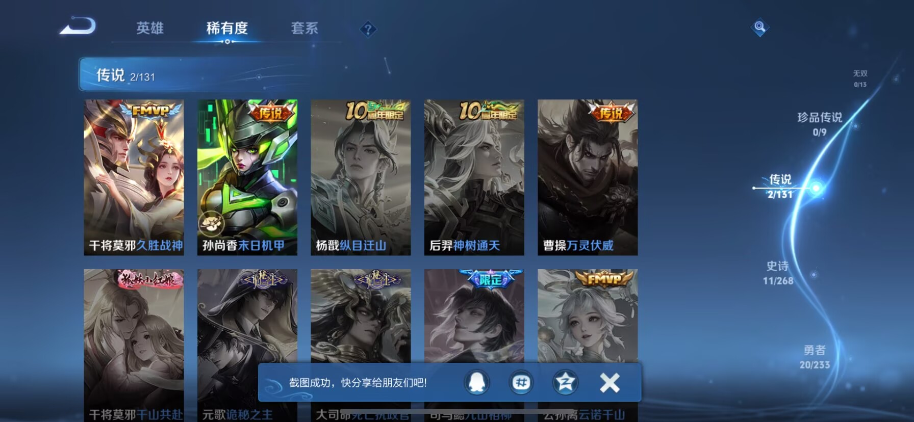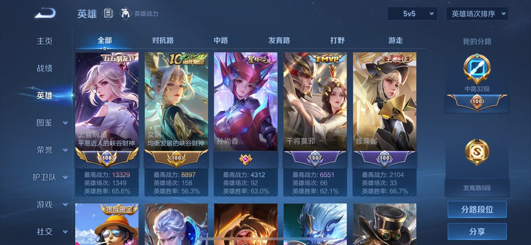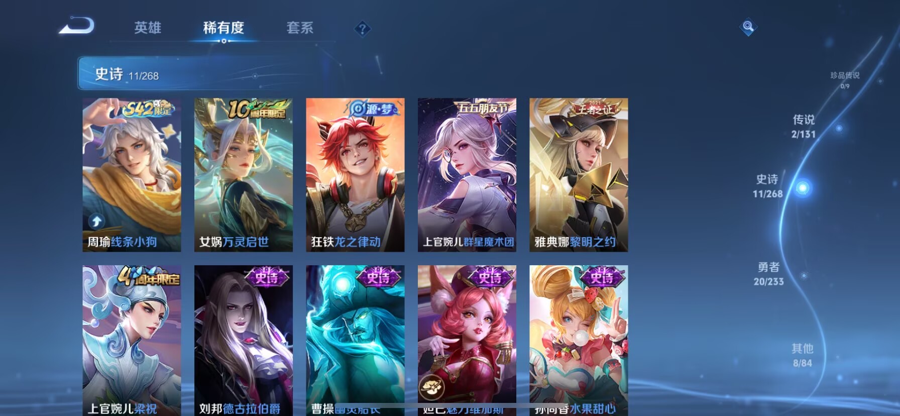贵族等级:v4皮肤数:42传说品质2 英雄数:76