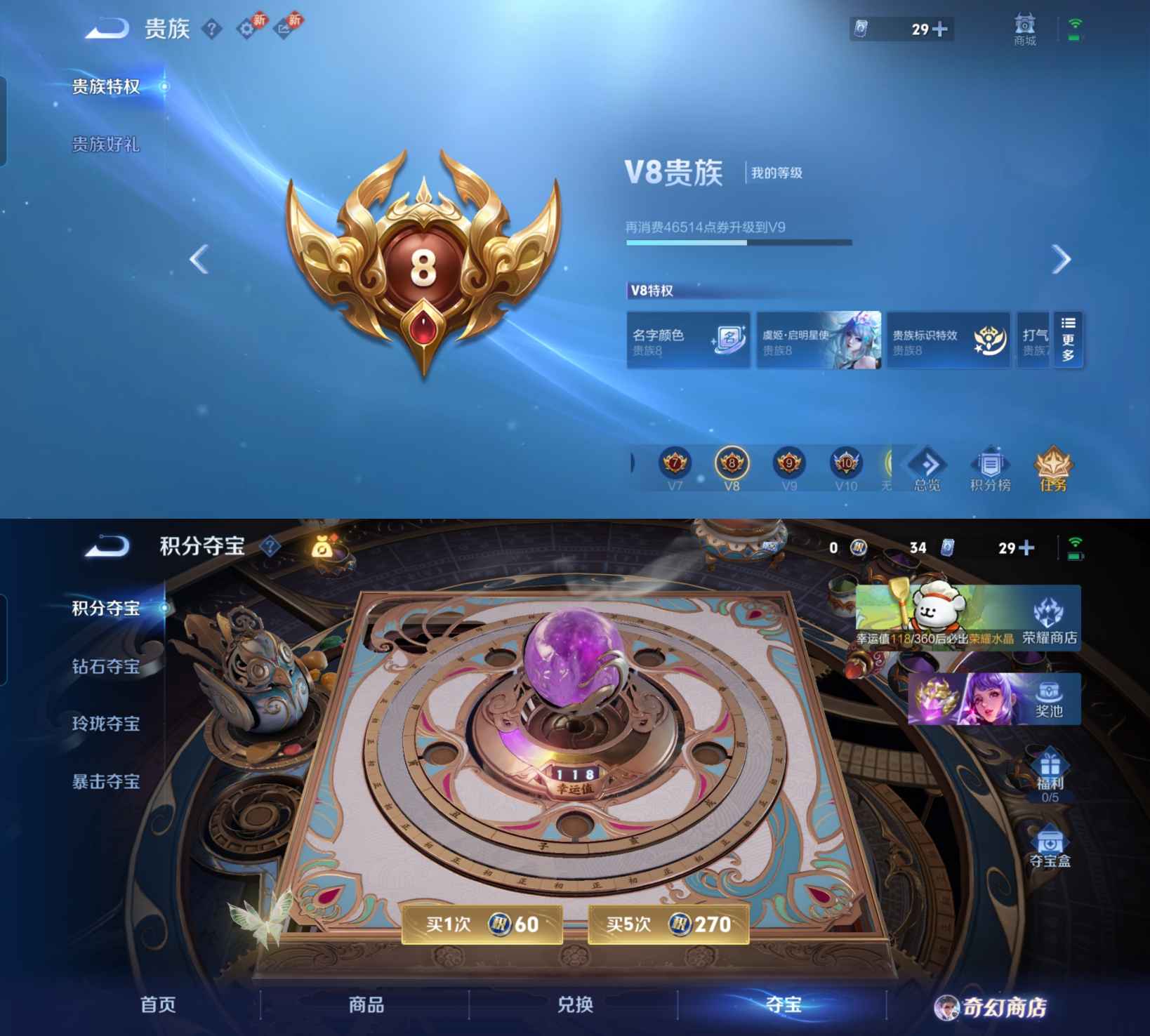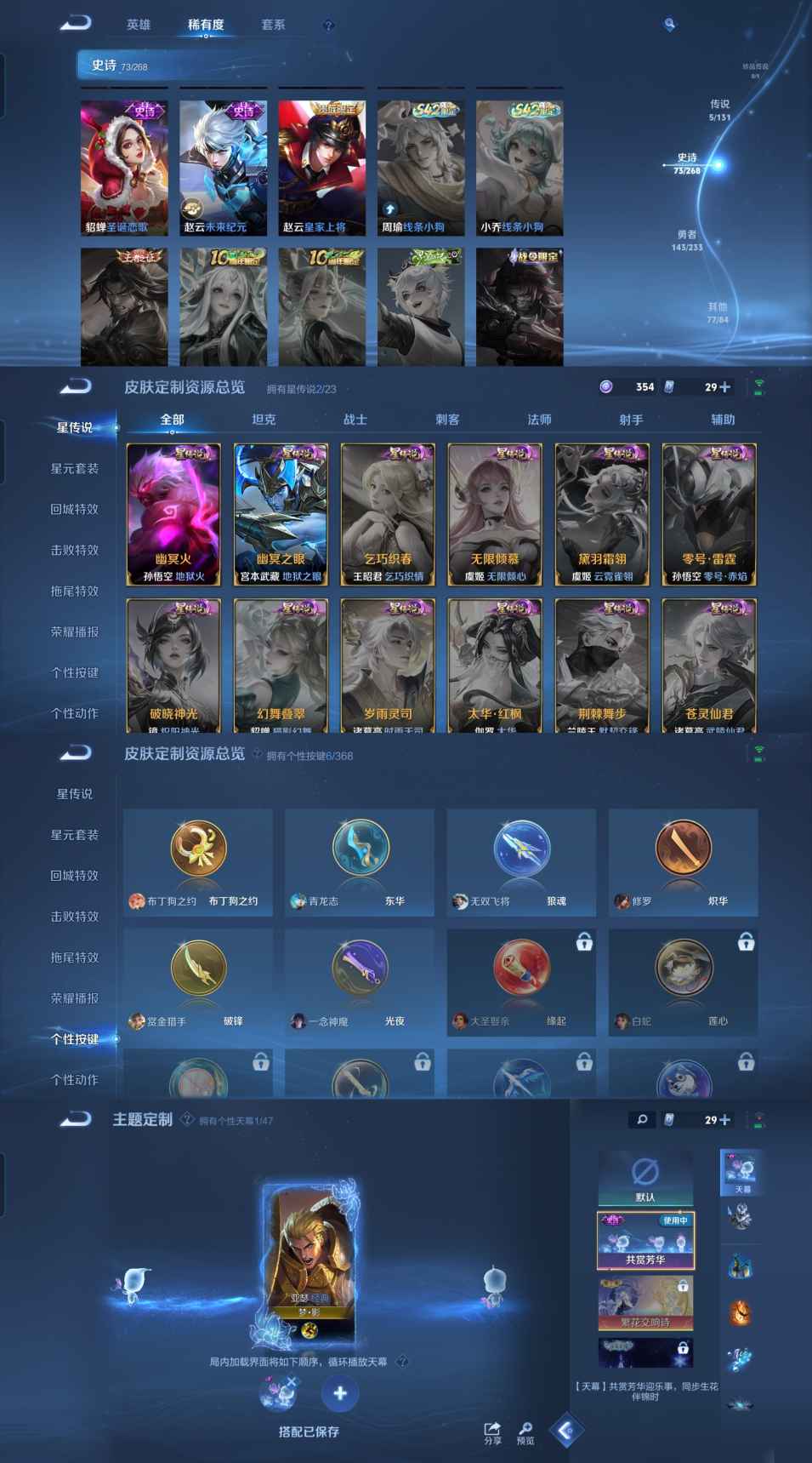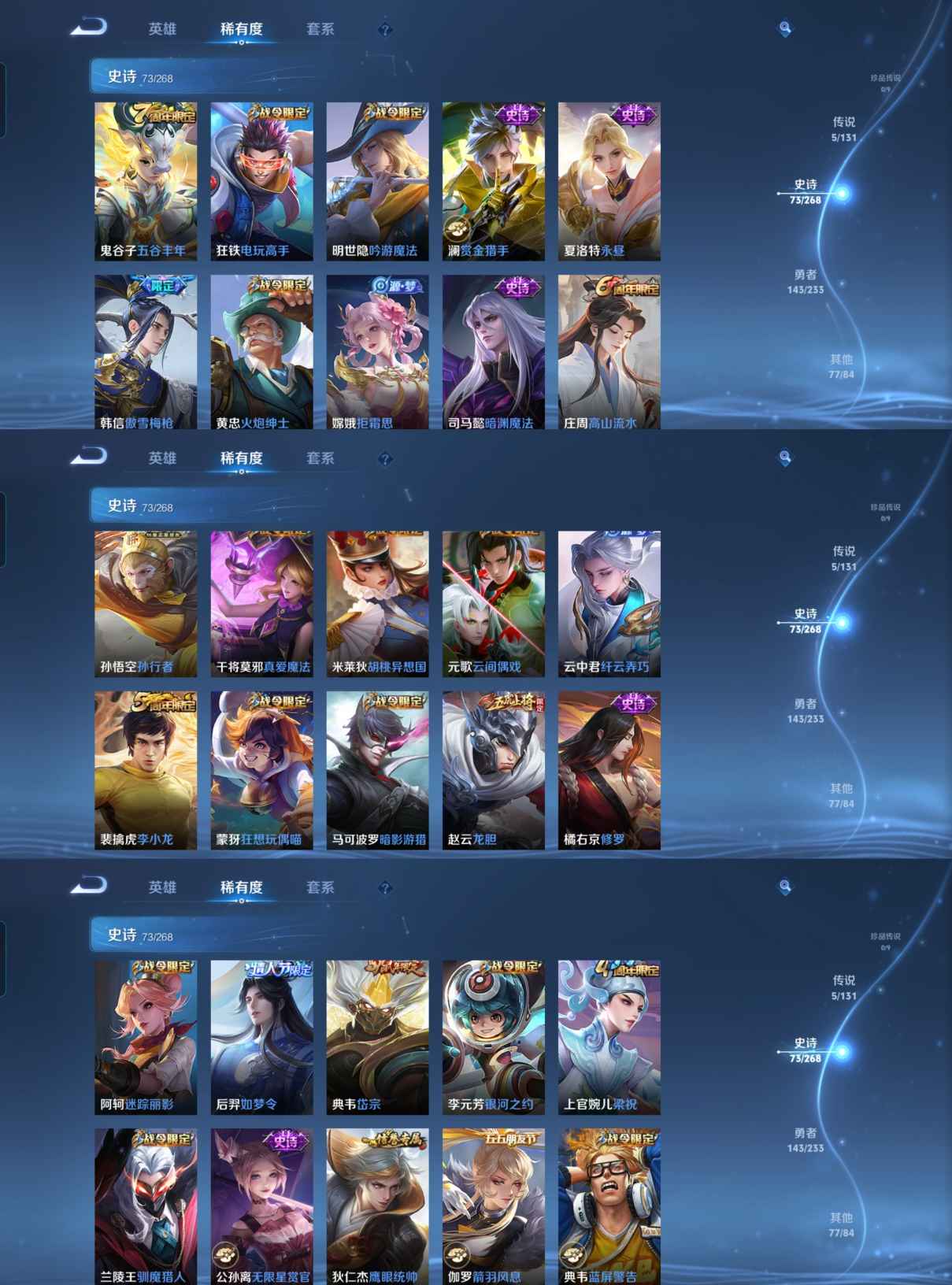 贵族等级:v8皮肤数:299情人节限定1 生肖限定2 传说品质5 荣耀典藏1 英雄数:125