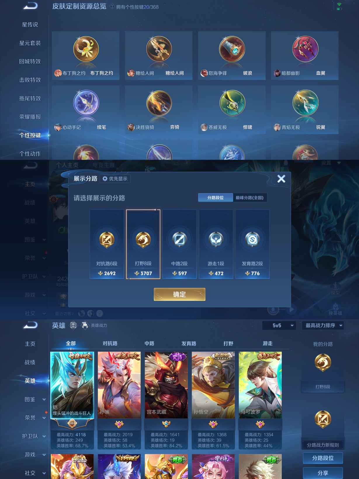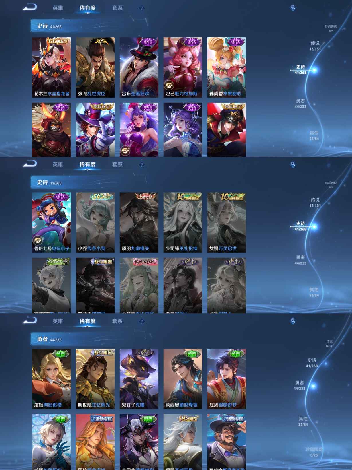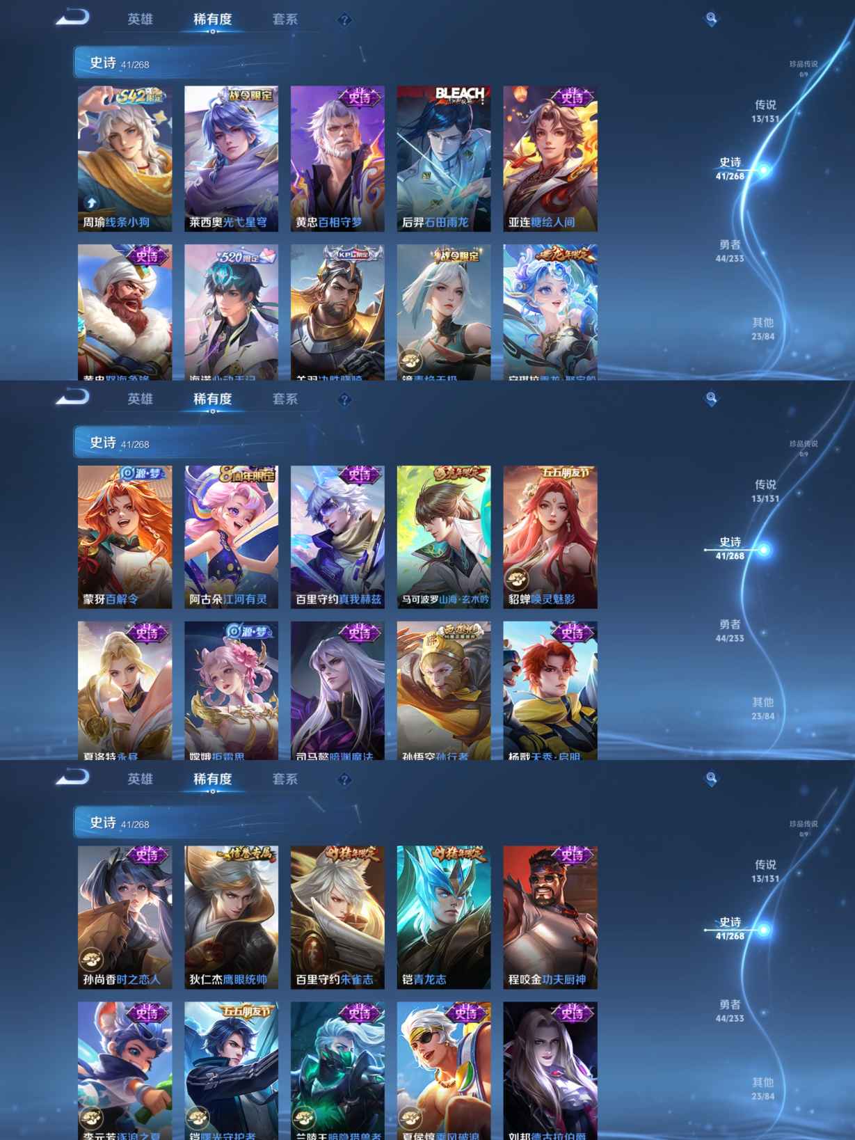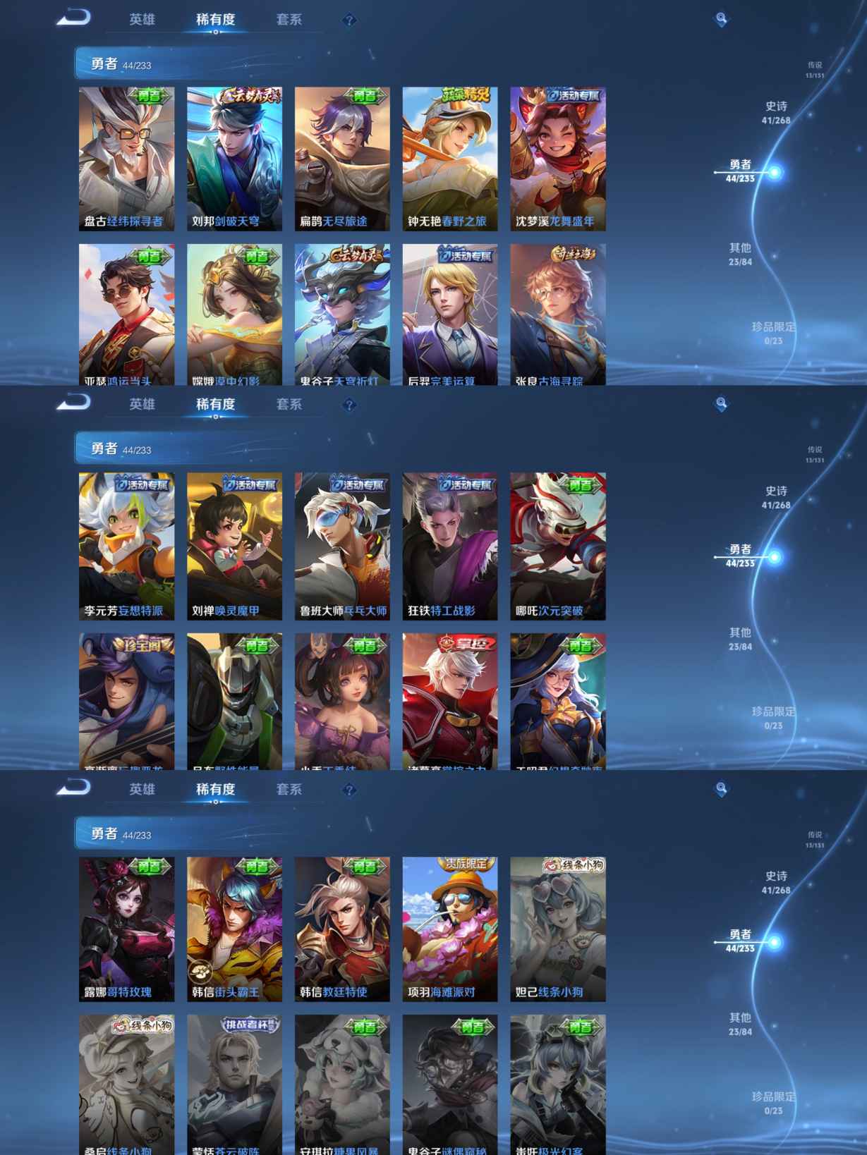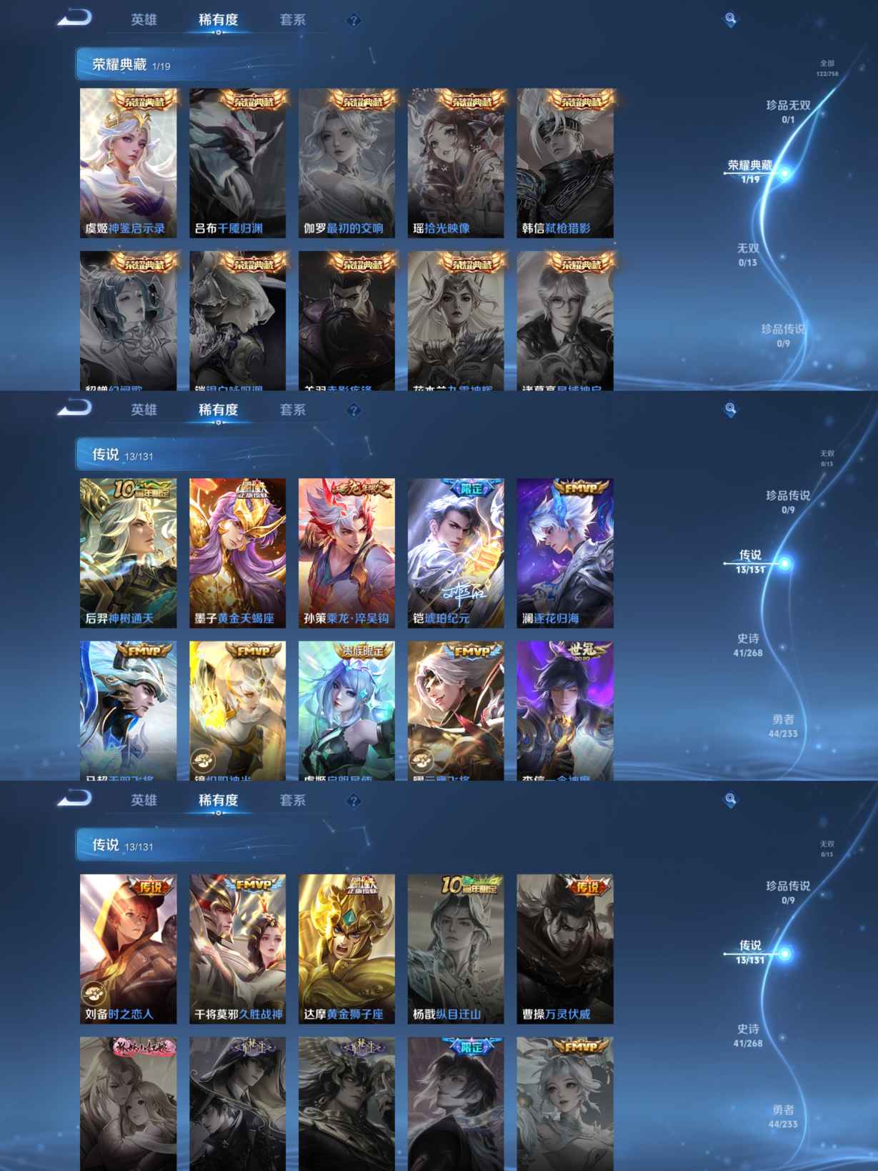 贵族等级:v8皮肤数:123传说品质13 生肖限定5 荣耀典藏1 英雄数:120