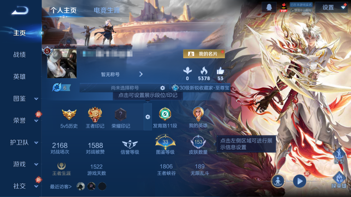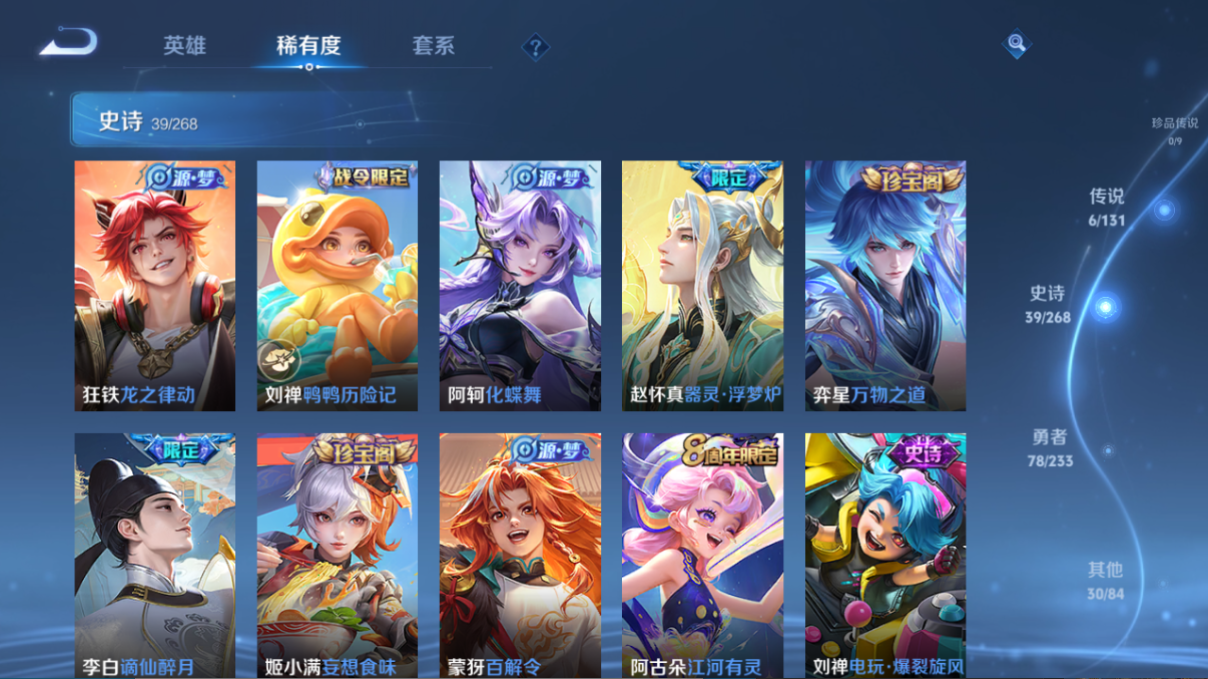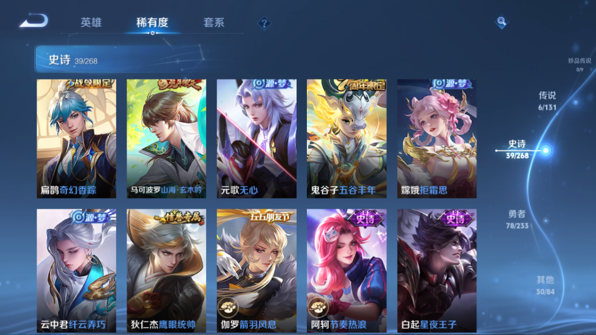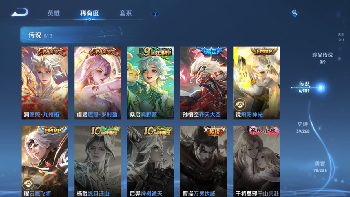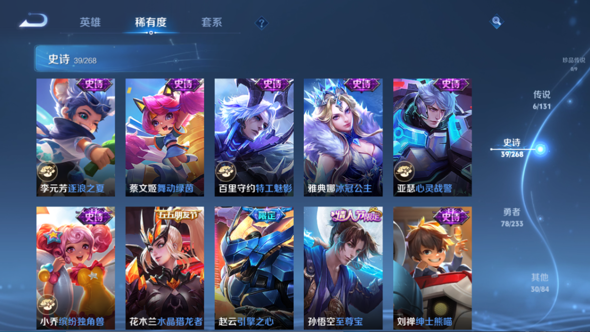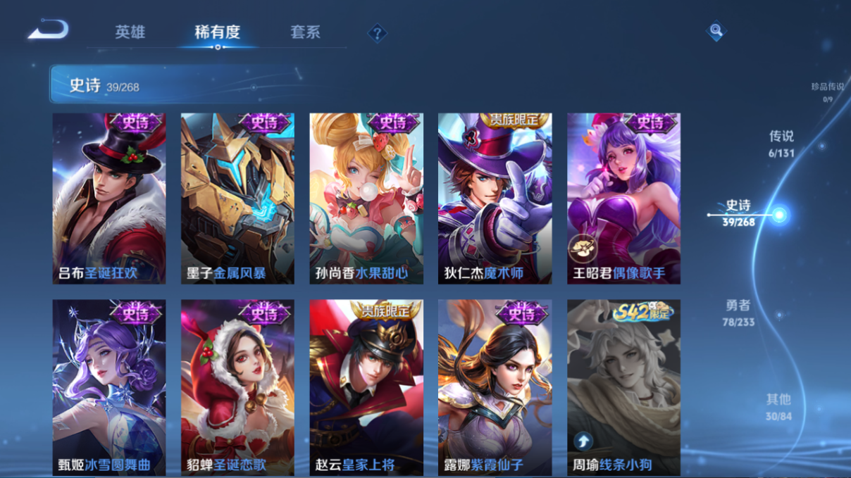 贵族等级:v7皮肤数:153传说品质6 生肖限定3 情人节限定1 英雄数:126