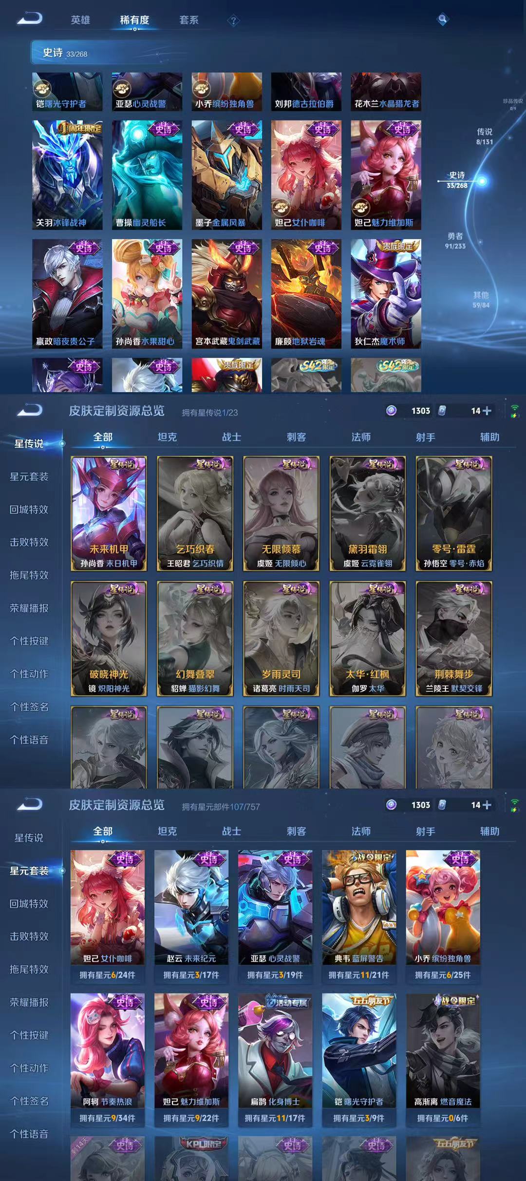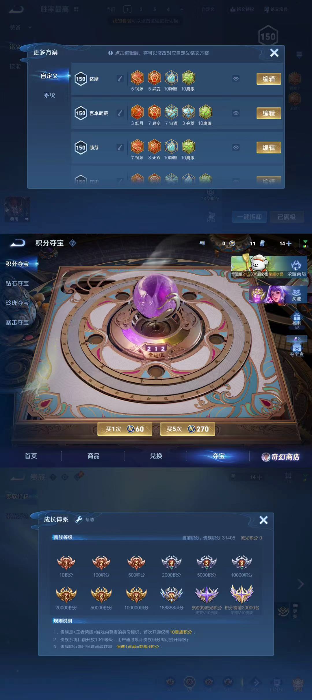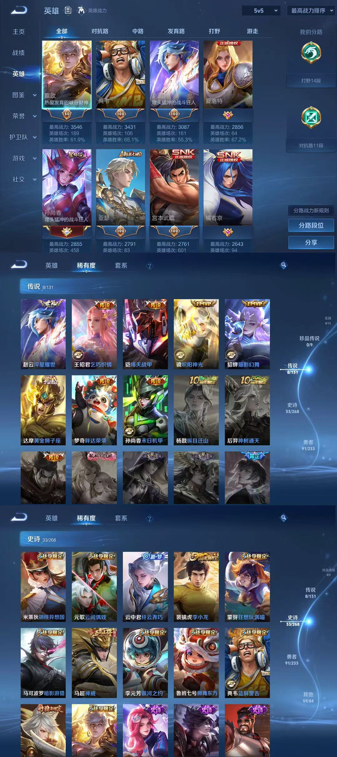 贵族等级:v7皮肤数:192传说品质8 生肖限定1 英雄数:127