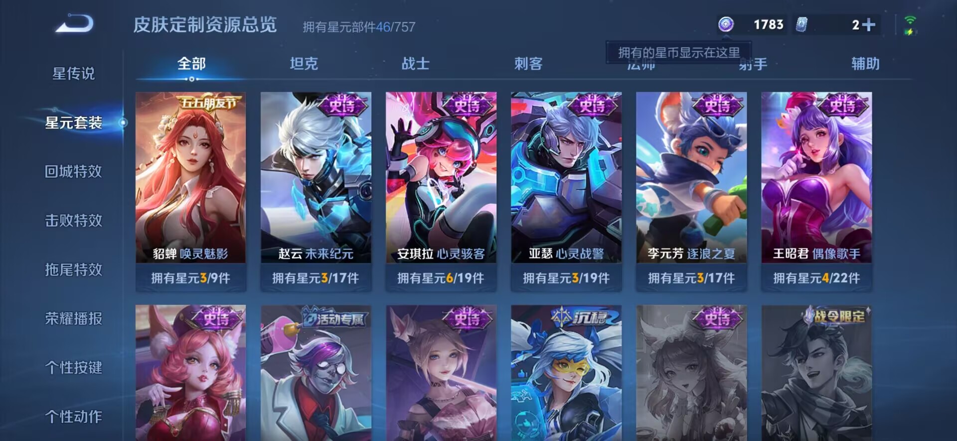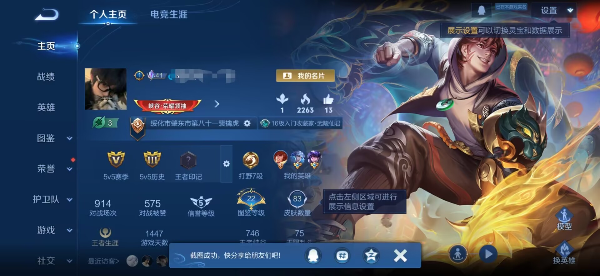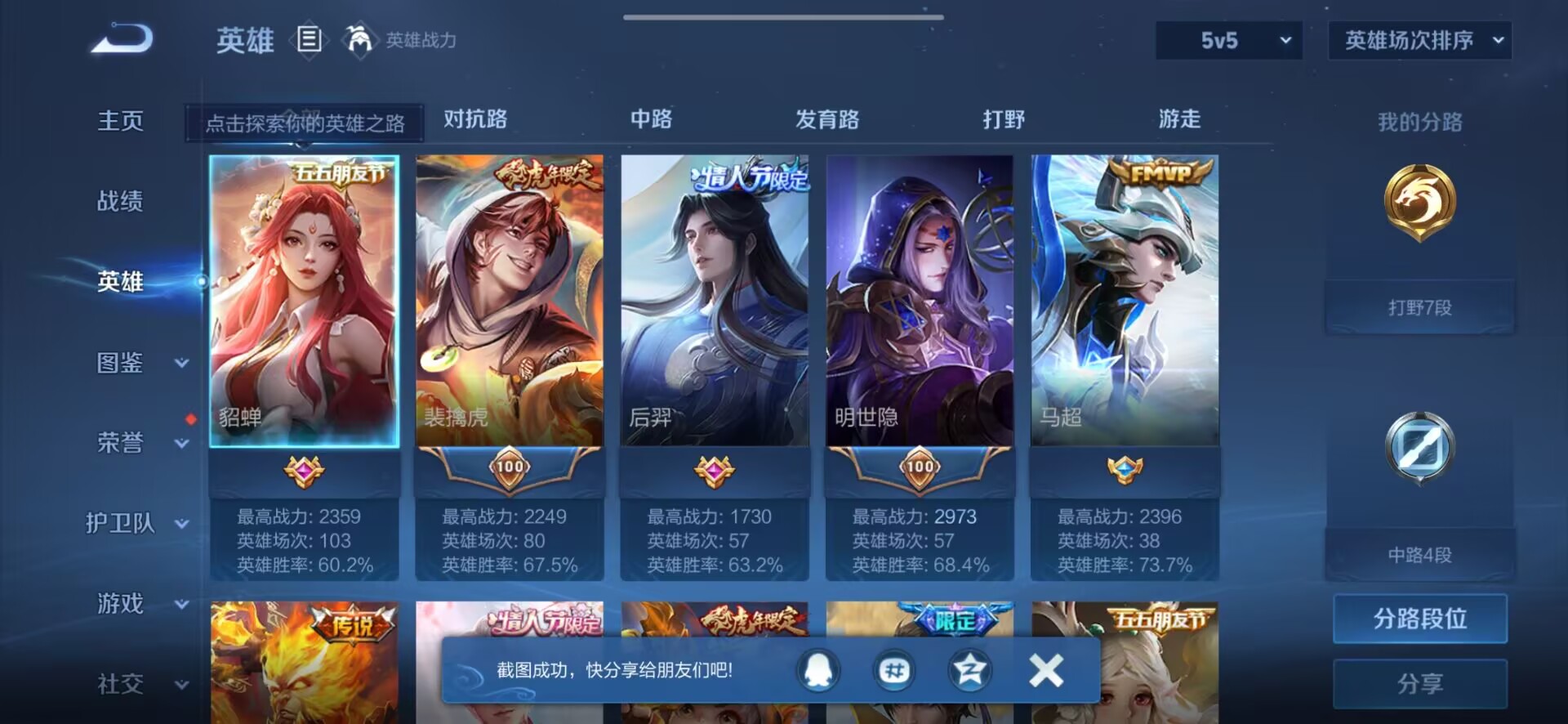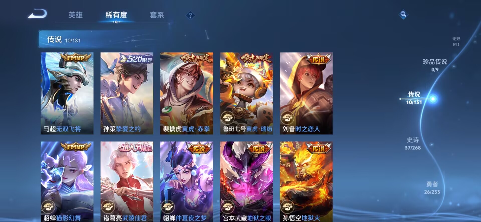 贵族等级:v7皮肤数:83情人节限定4 传说品质10 生肖限定4 英雄数:94